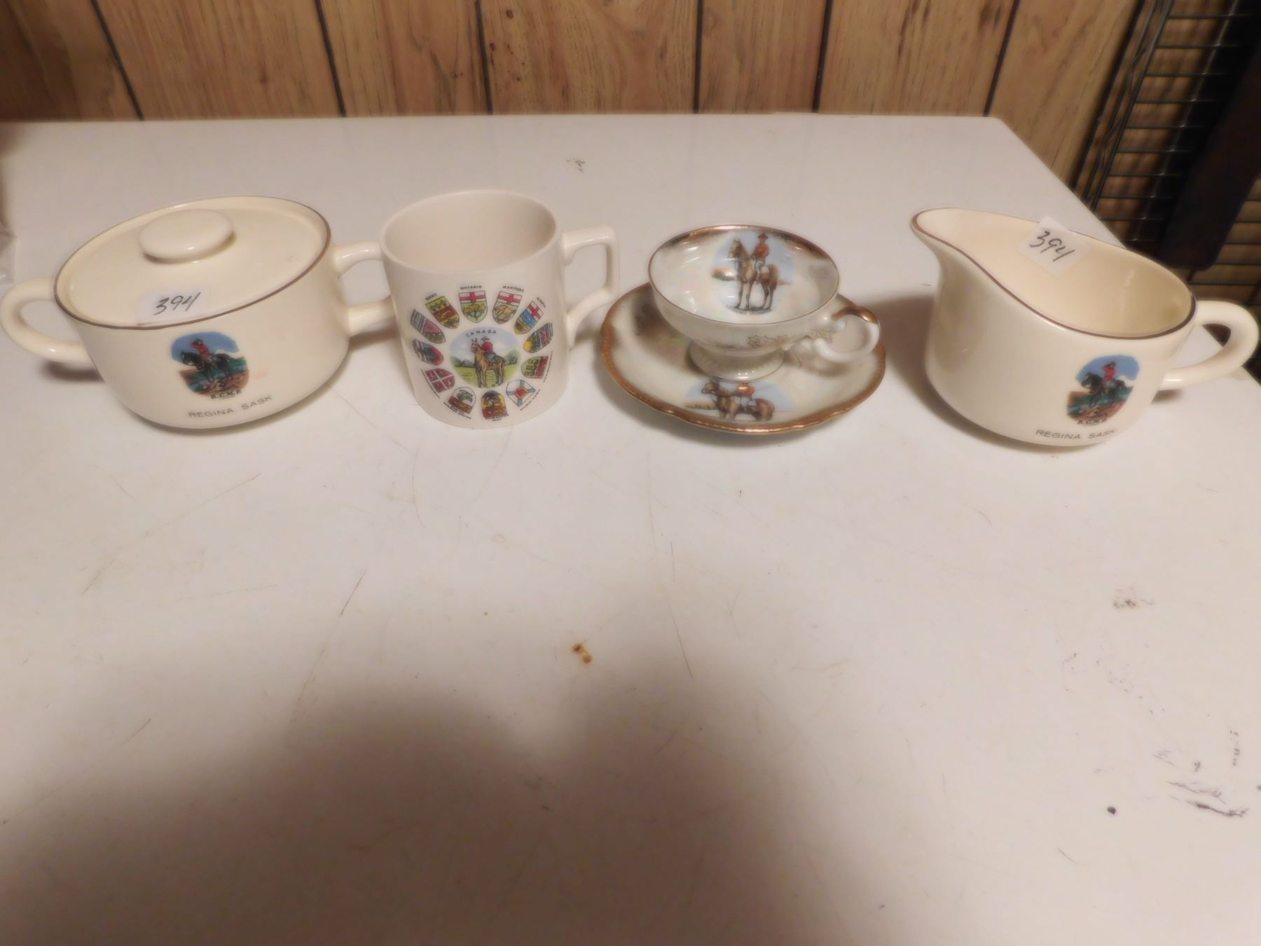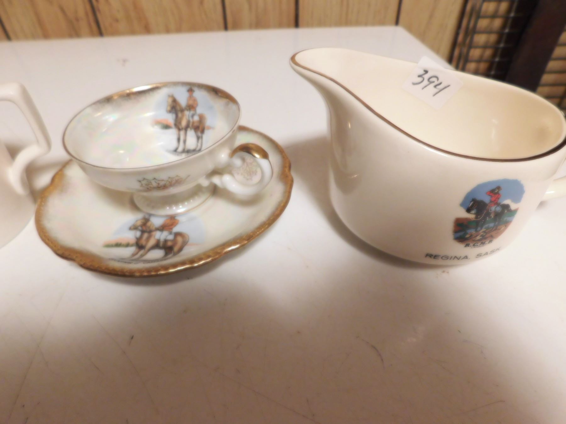 VINTAGE RCMP LOGO ITEMS: CUP, CREAM & SUGAR, CUP & SAUCER