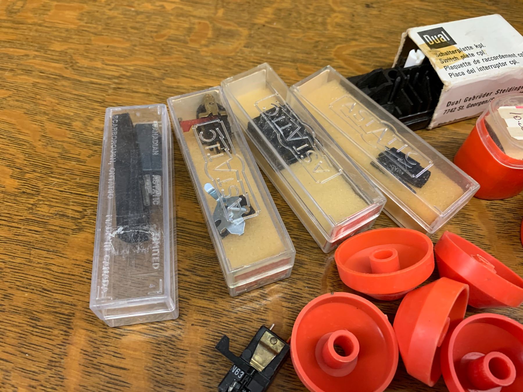 VINTAGE RECORD PLAYER, ELECTRONIC PARTS AND 45 RPM ADAPTERS