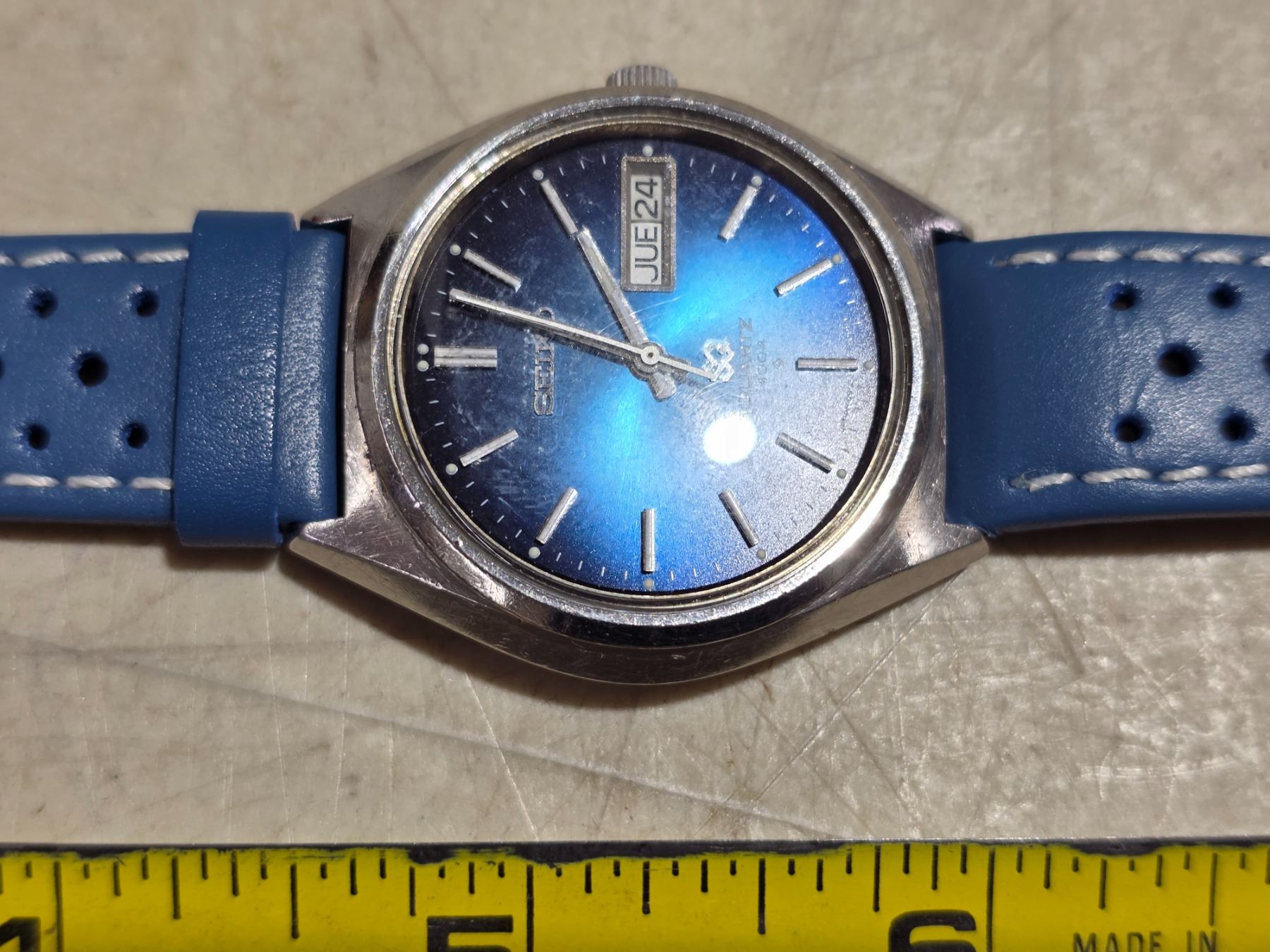 VINTAGE SEIKO 0903-7009 DAY/DATE @3 QTZ WATCH, NEW BATT, RUNS