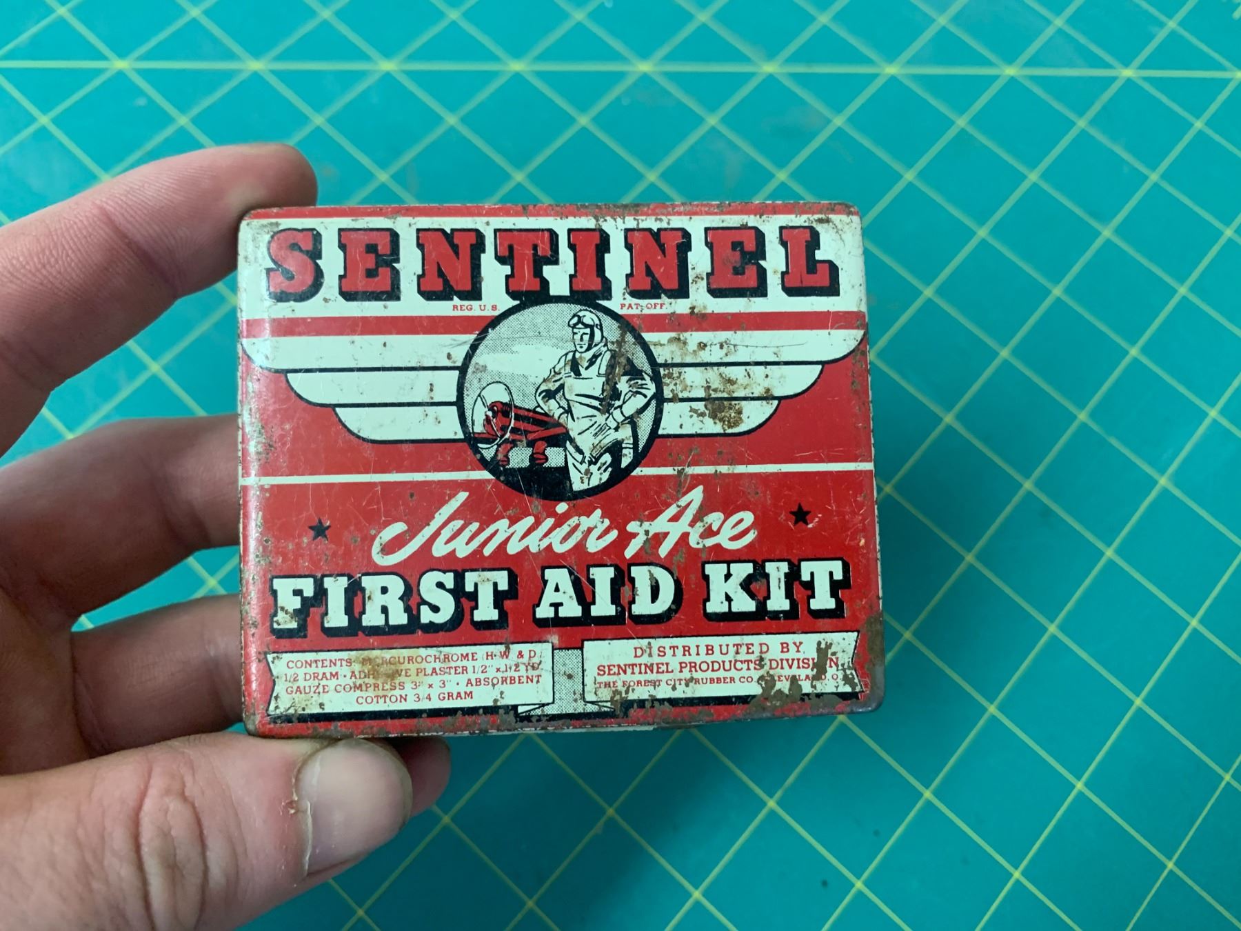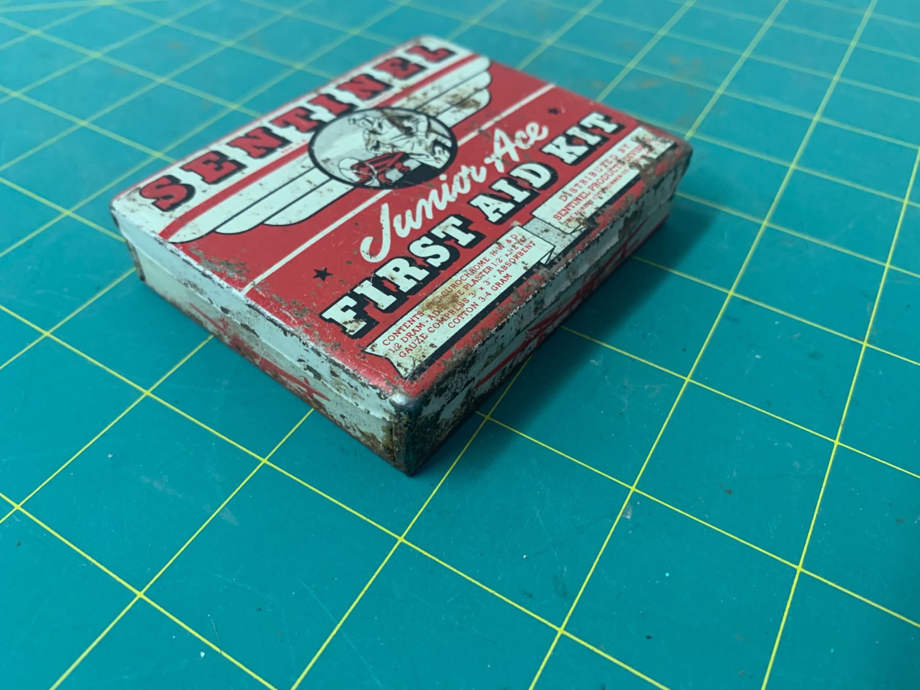 VINTAGE SENTINEL JUNIOR ACE TIN FIRST AID KIT