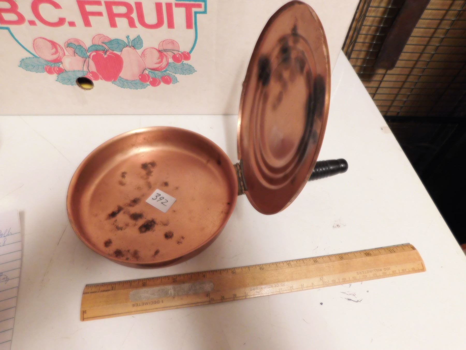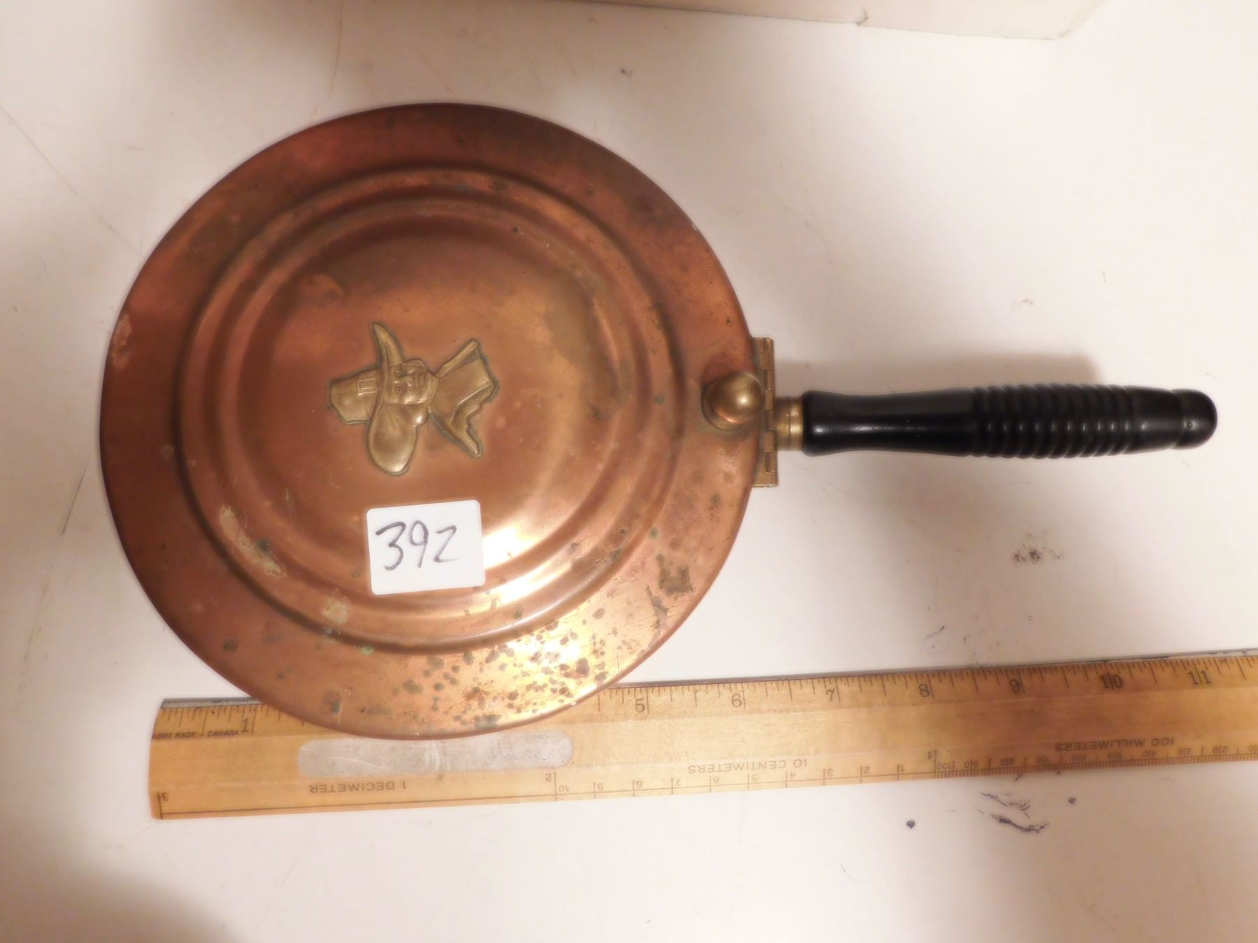 VINTAGE SMALL QUAKER HEADED COPPER BED WARMER