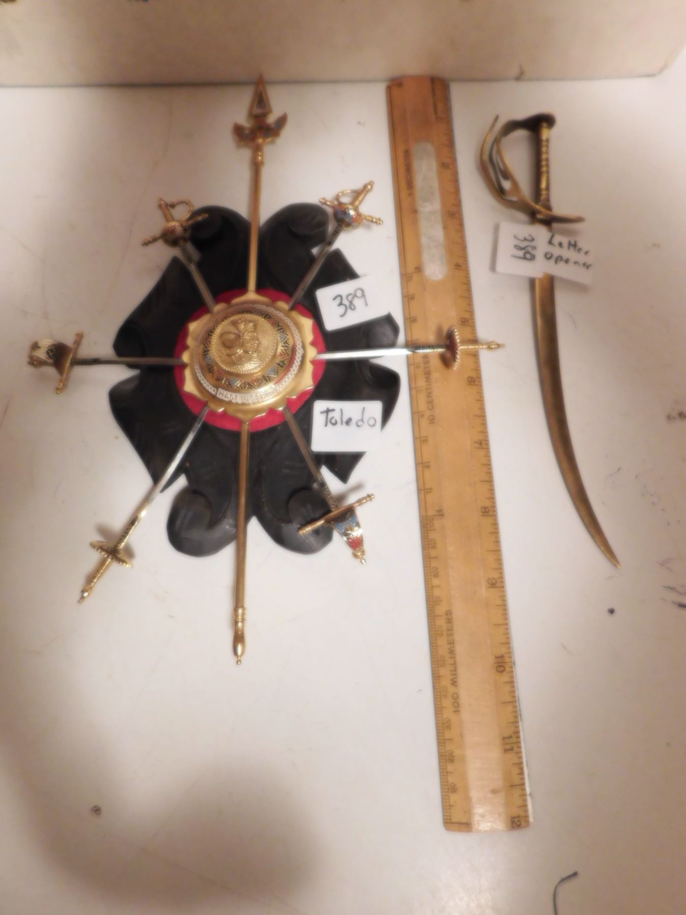 VINTAGE SPAIN MINIATURE SWORDS WALL PLAQUE & LETTER OPENER