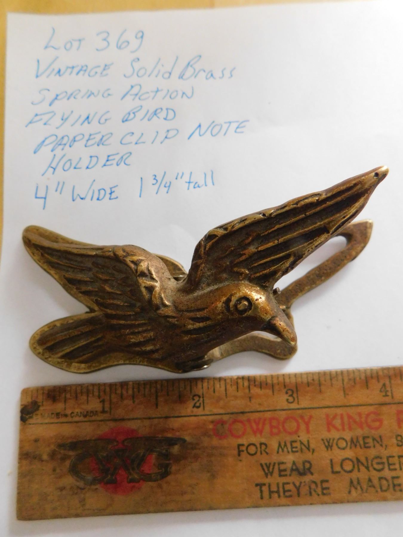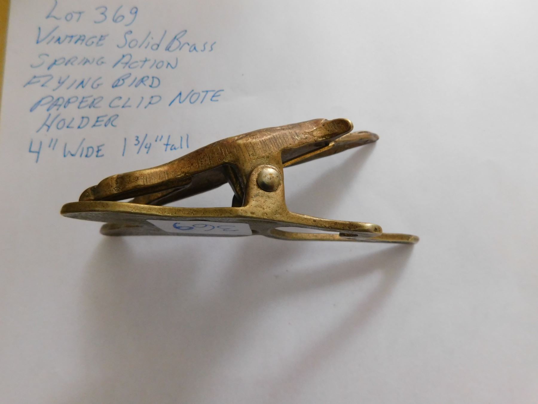 VINTAGE SPRING ACTION SOLID BRASS BIRD PAPER CLIP NOTE HOLDER