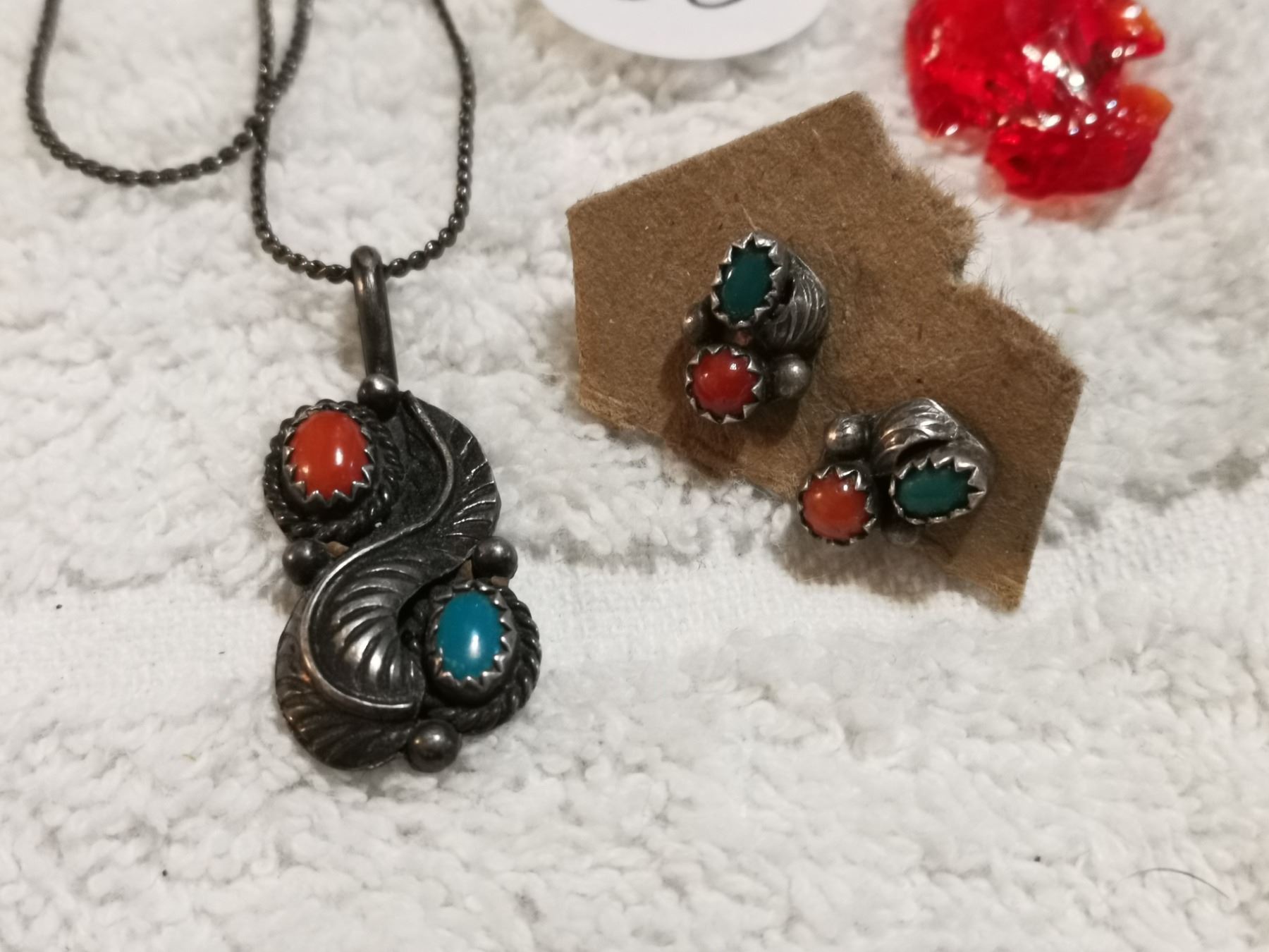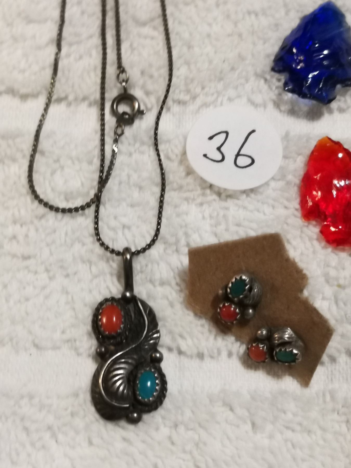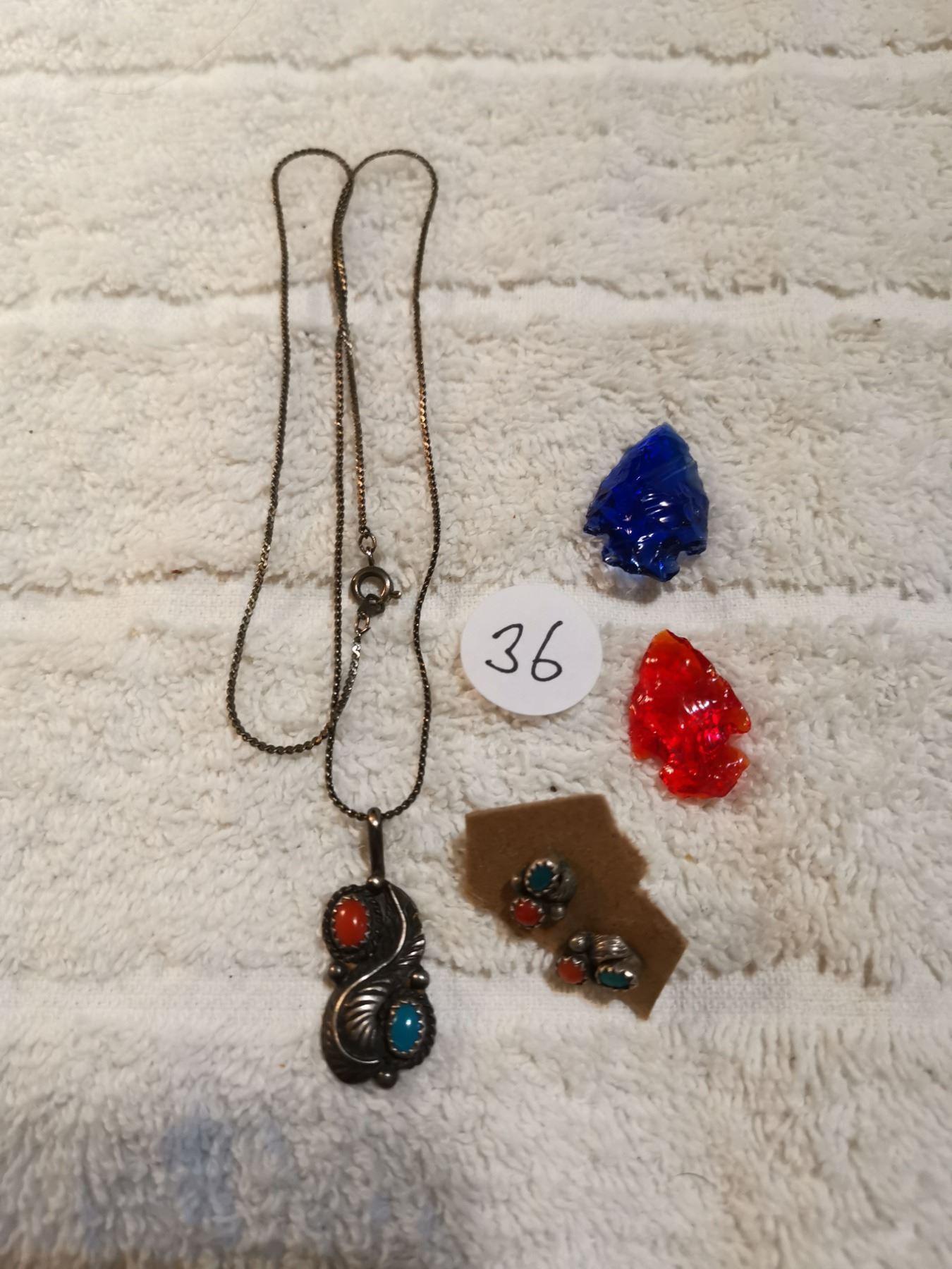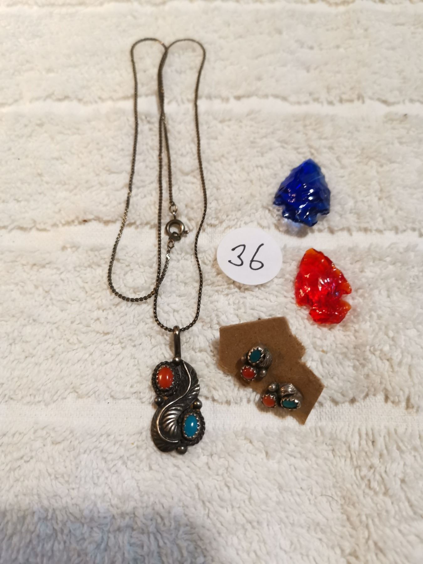 VINTAGE STERLING SET & 2 GLASS ARROWHEADS