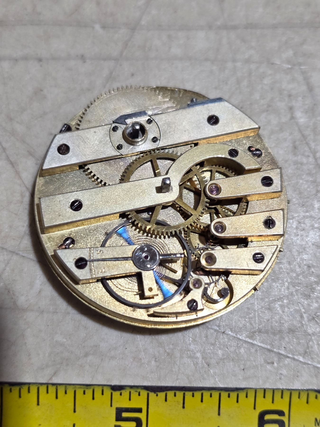 VINTAGE SWISS KEY WIND MOVEMENT, PARTS/REPAIR 49MM,RUNS, NO KEY