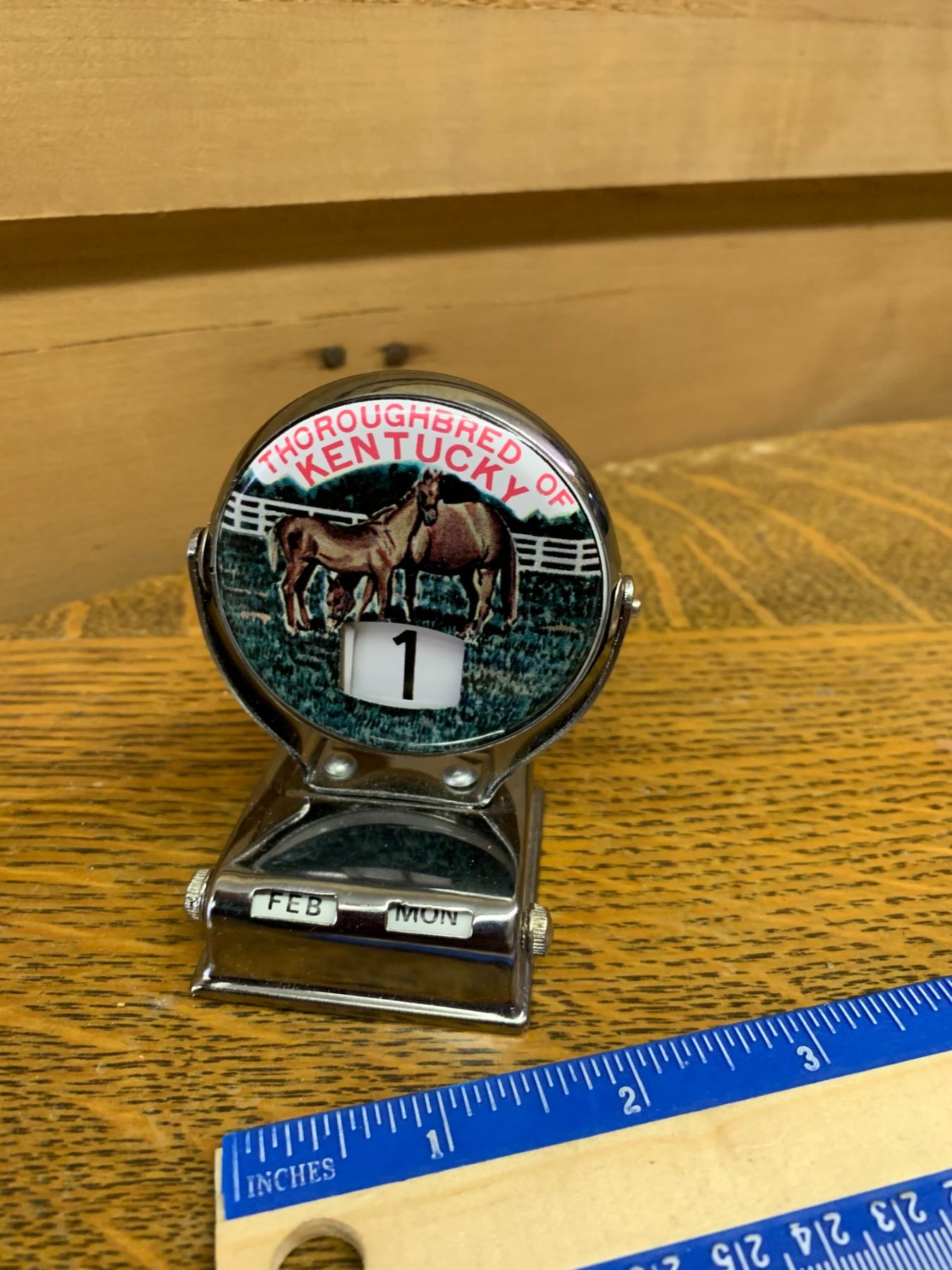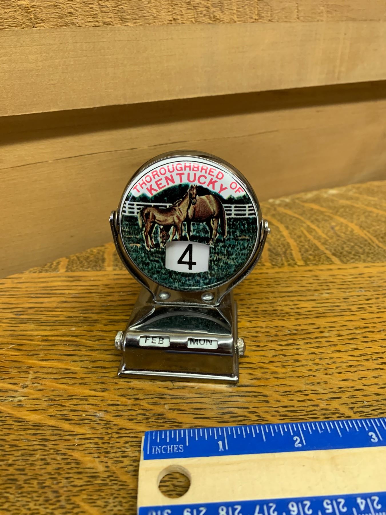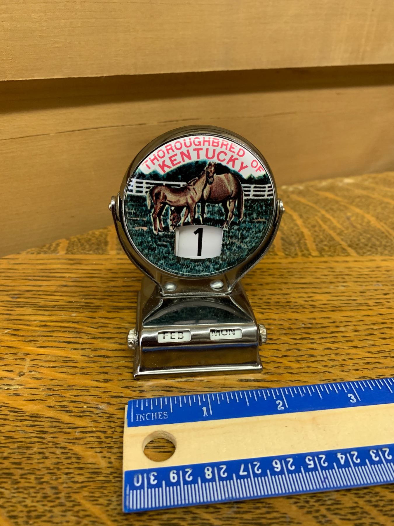 VINTAGE TIN THOROUGHBRED OF KENTUCKY PERPETUAL DESK CALENDAR