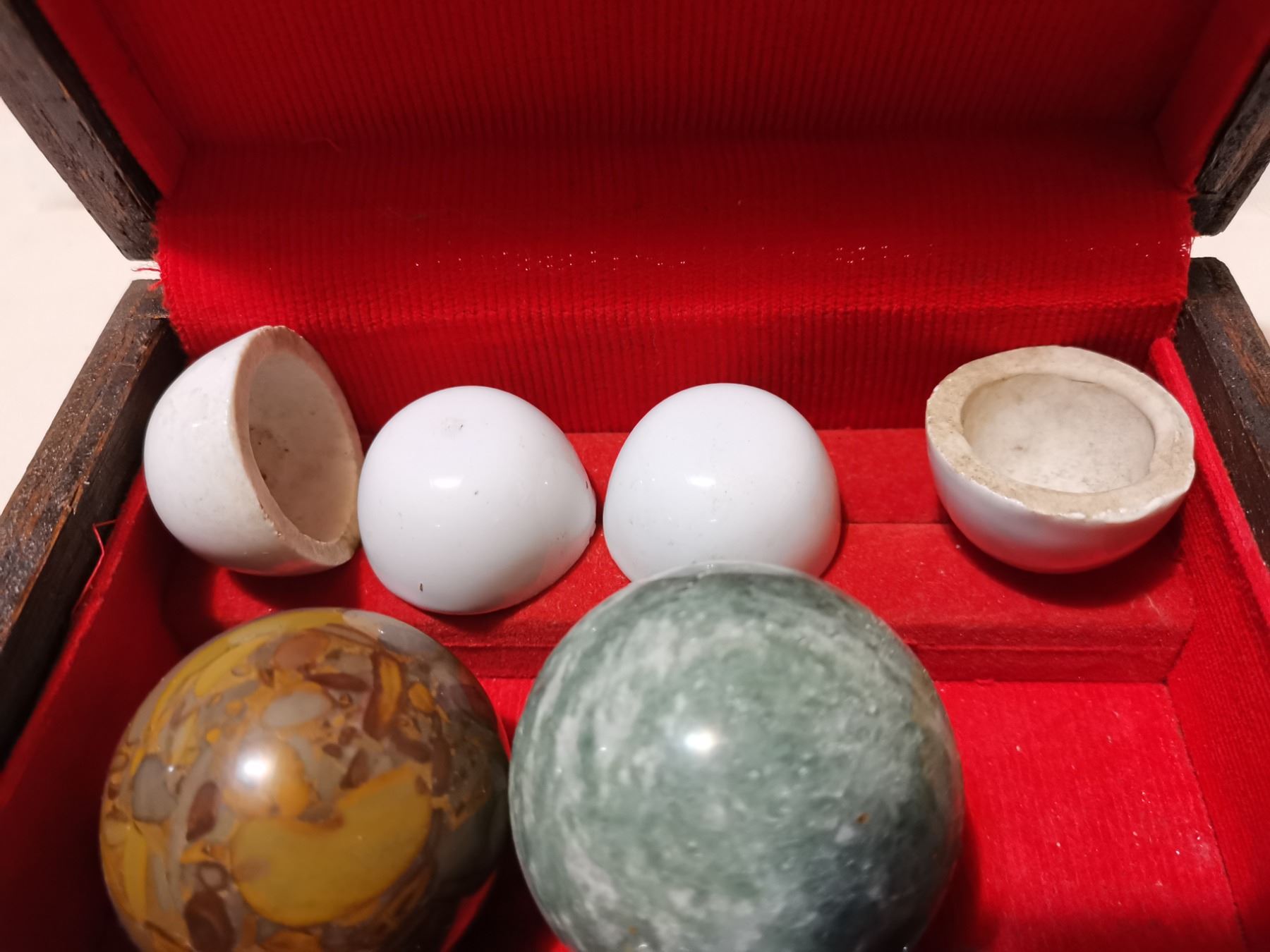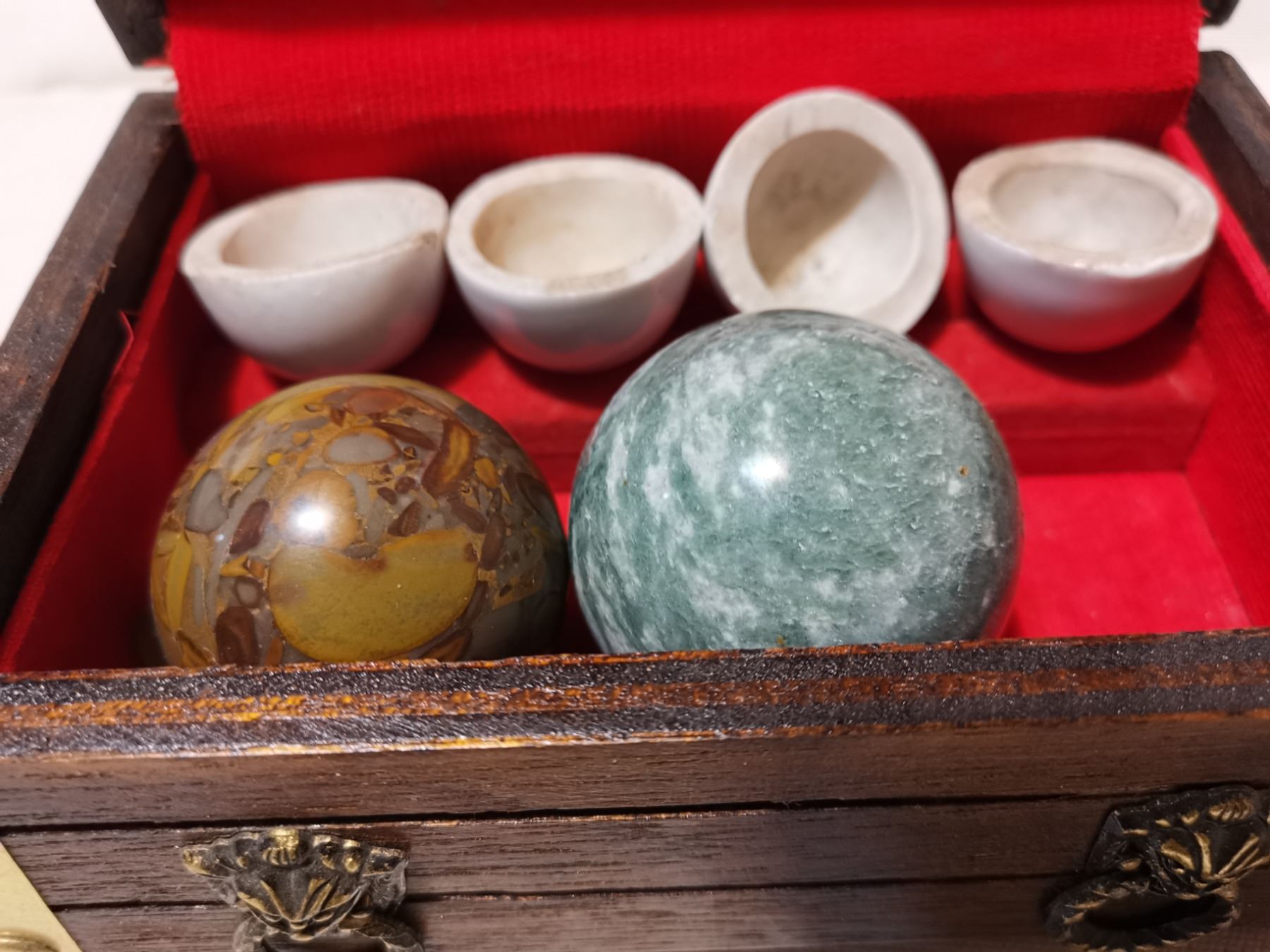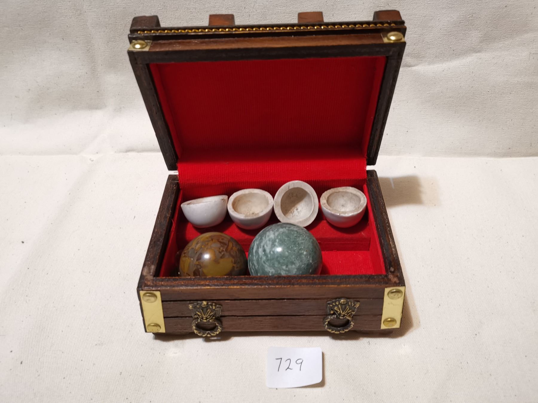 VINTAGE TREASURE BOX WITH CONTENT, 2 GIANT MARBLES