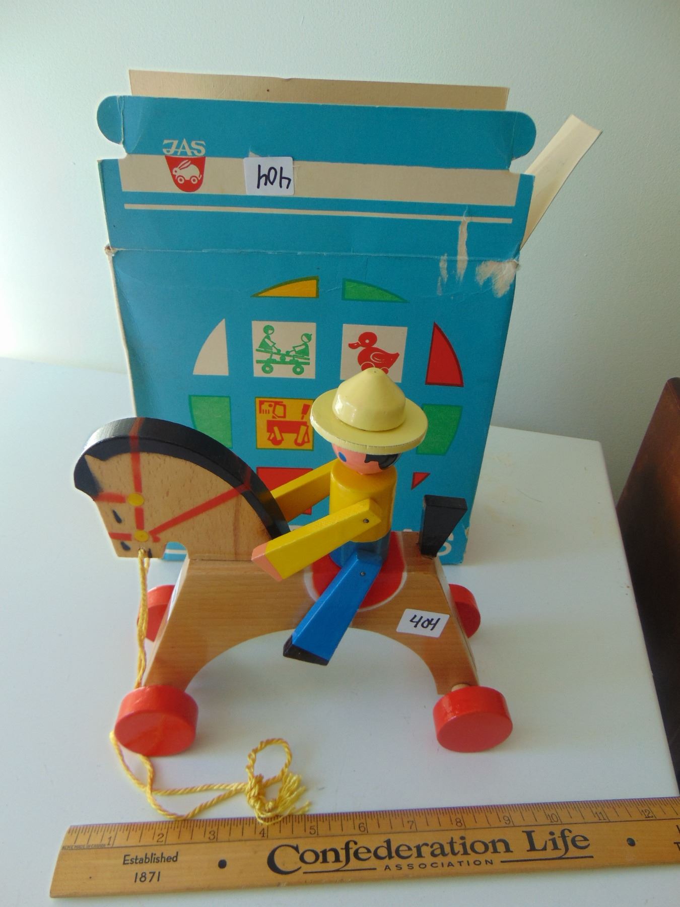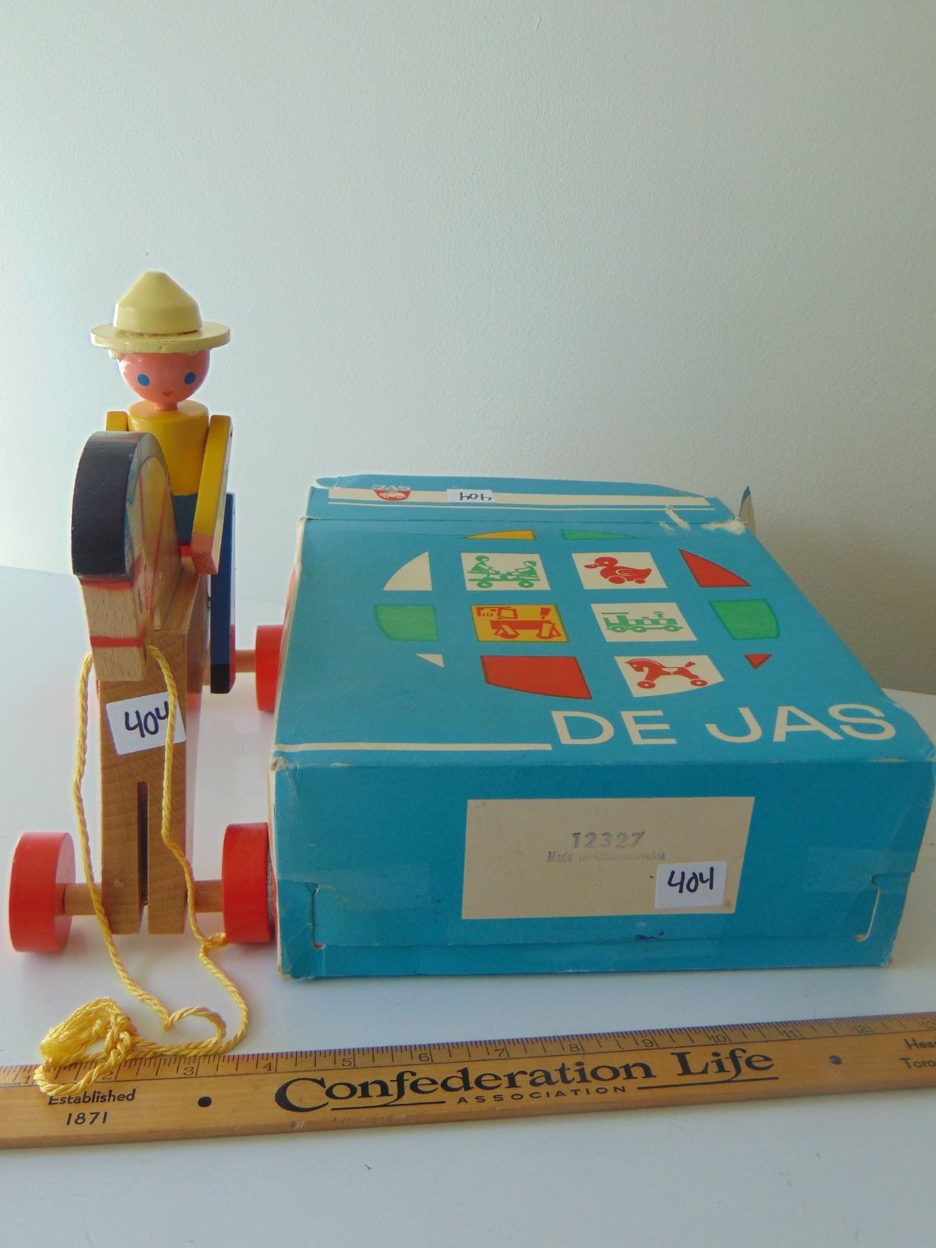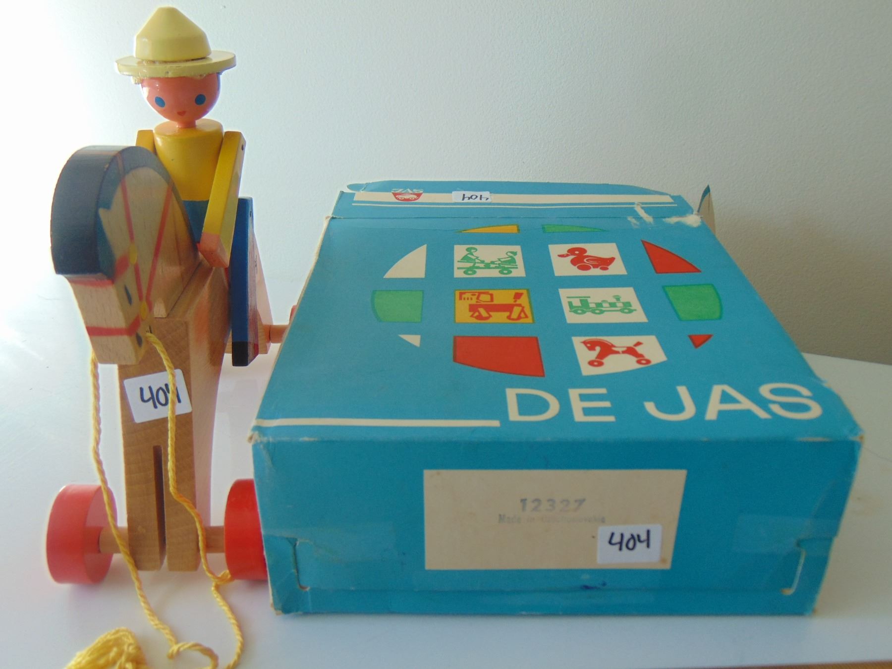 VINTAGE WOODEN JAS CZECHOSLOVAKIA PULL TOY AND BOX
