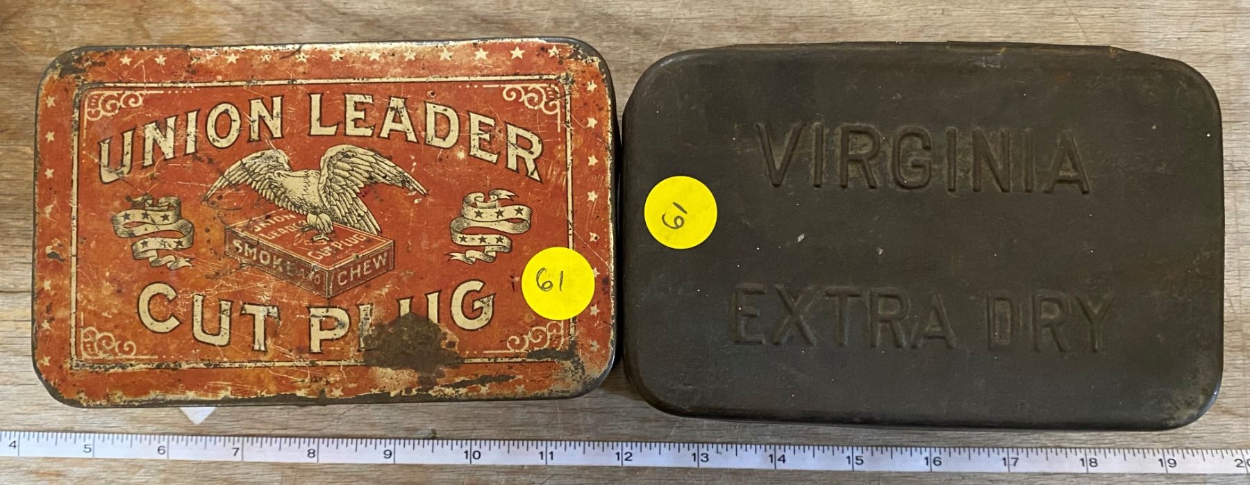 VIRGINIA AND UNION LEADER TOBACCO TINS