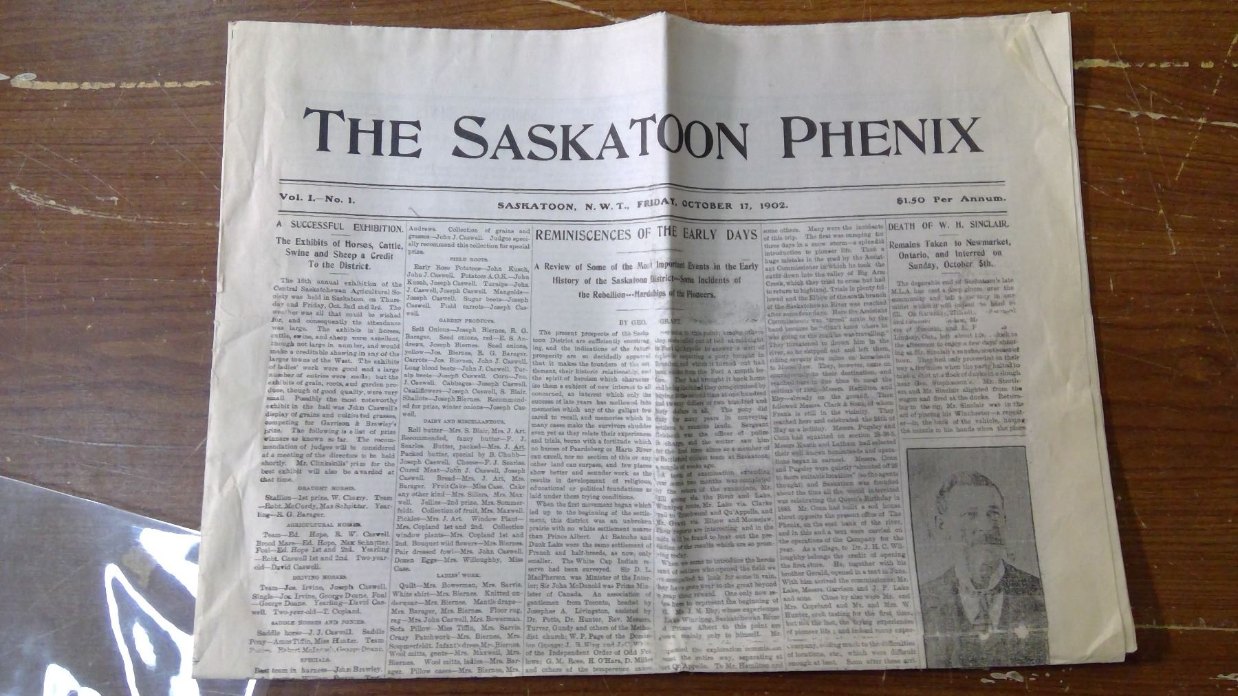 VOL.1 NO.1 THE SASKATOON PHEONIX "REPRODUCTION"