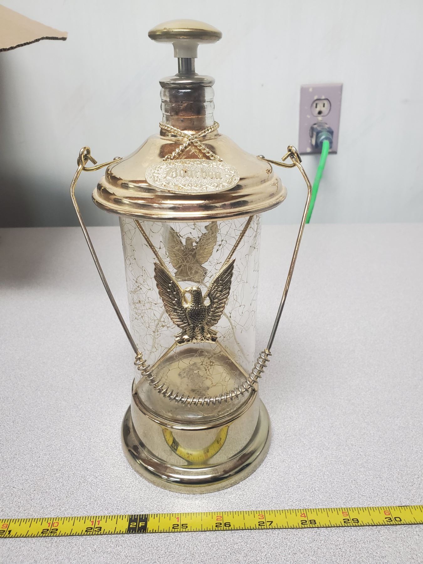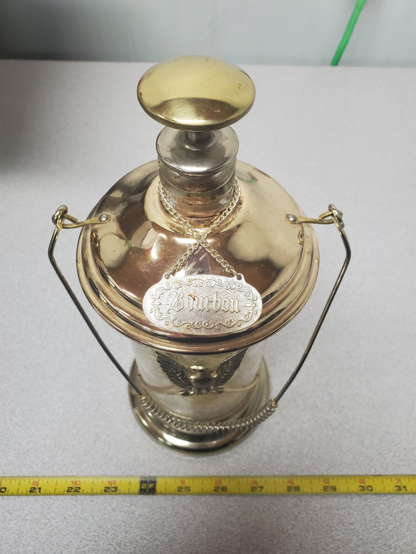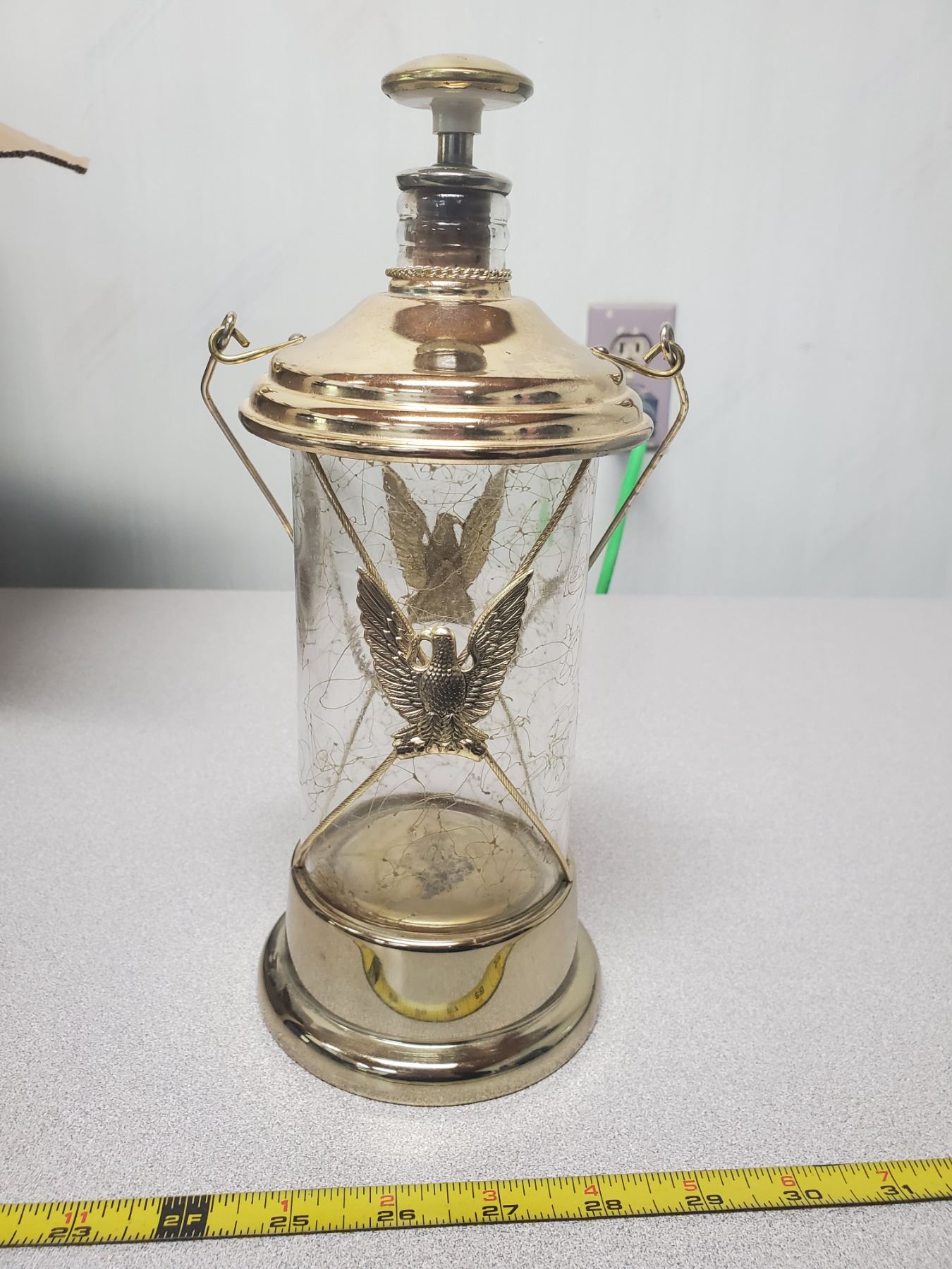 VTG GLASS/BRASS MUSICAL LIQUOR DECANTER "HOW DRY I AM