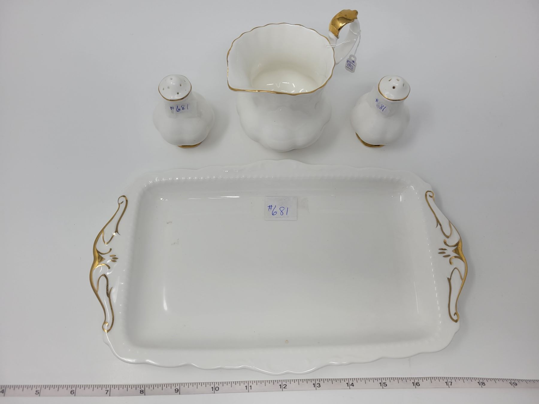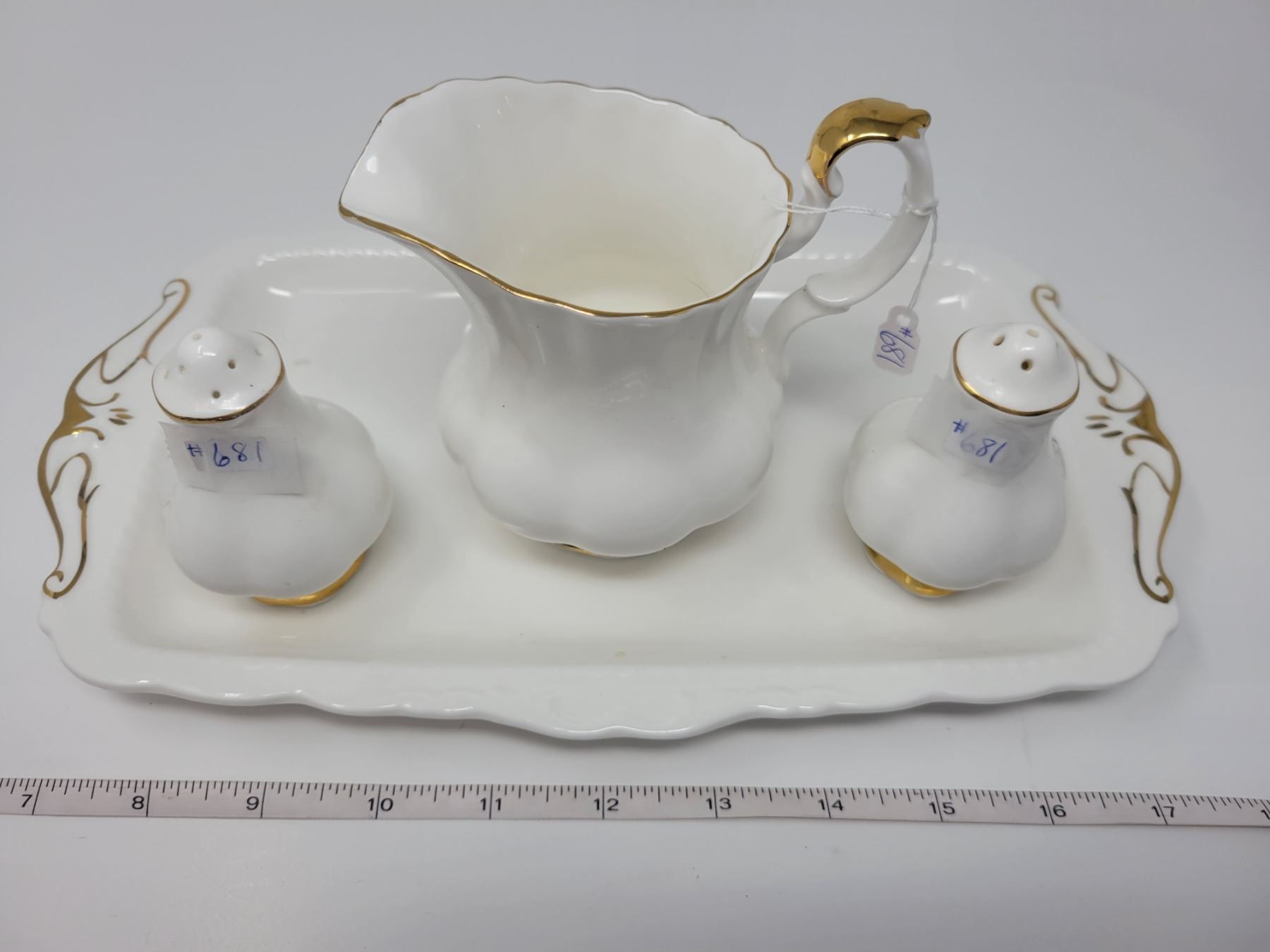 Val D’or, Royal Albert, creamer, salt and pepper and sandwich tray