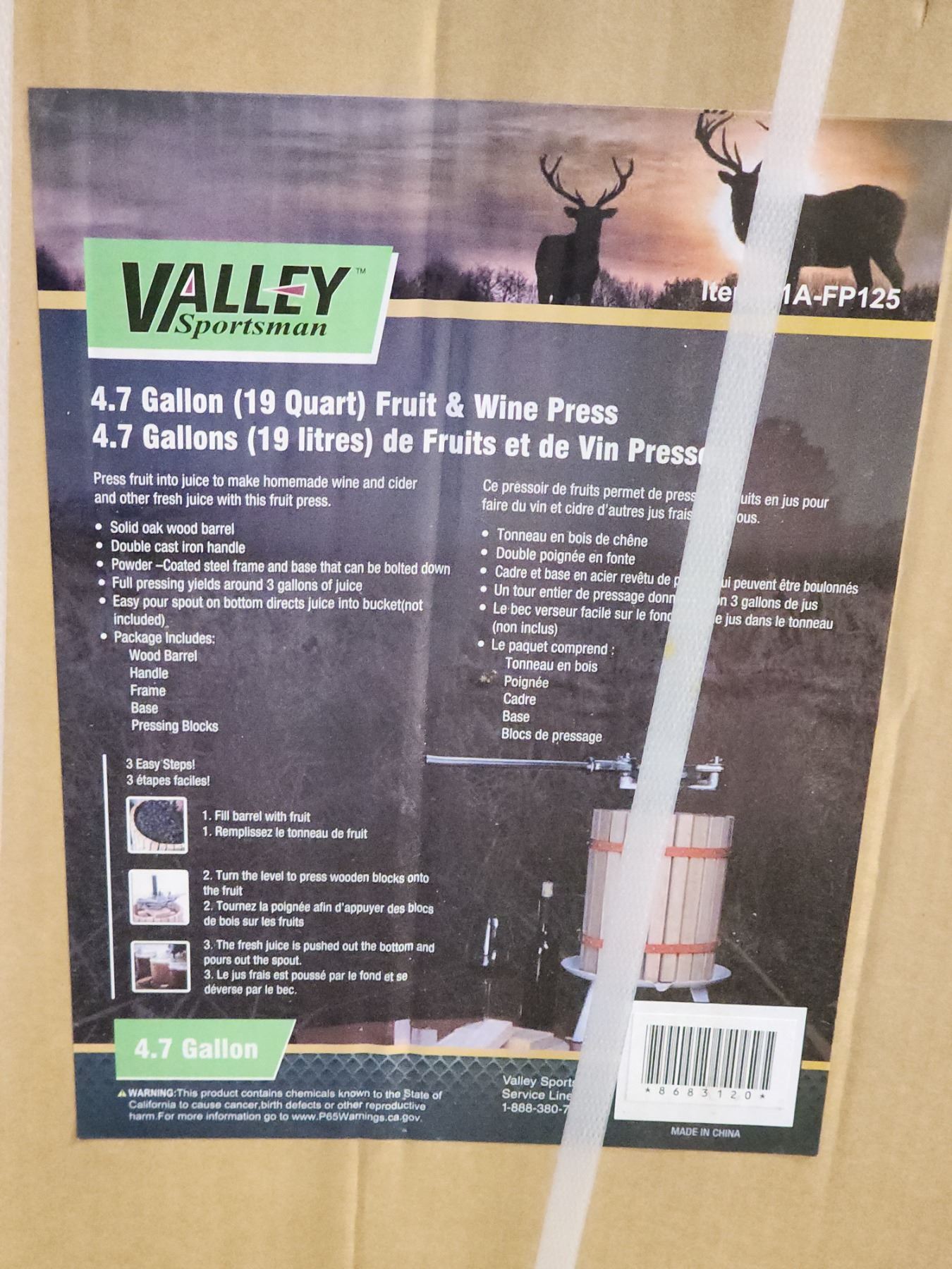 "Valley Sportsman" 4.7gal (19quart) fruit and wine press - new in box, sealed