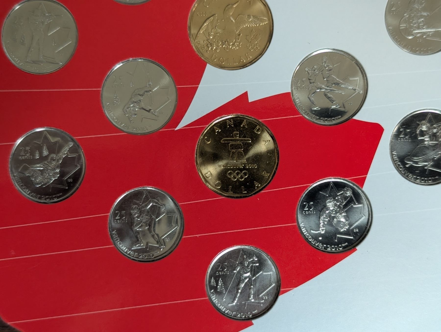 Vancouver 2010 Olympic Winter Games Coin Collection 25 Cent Coins and (2) Loonies