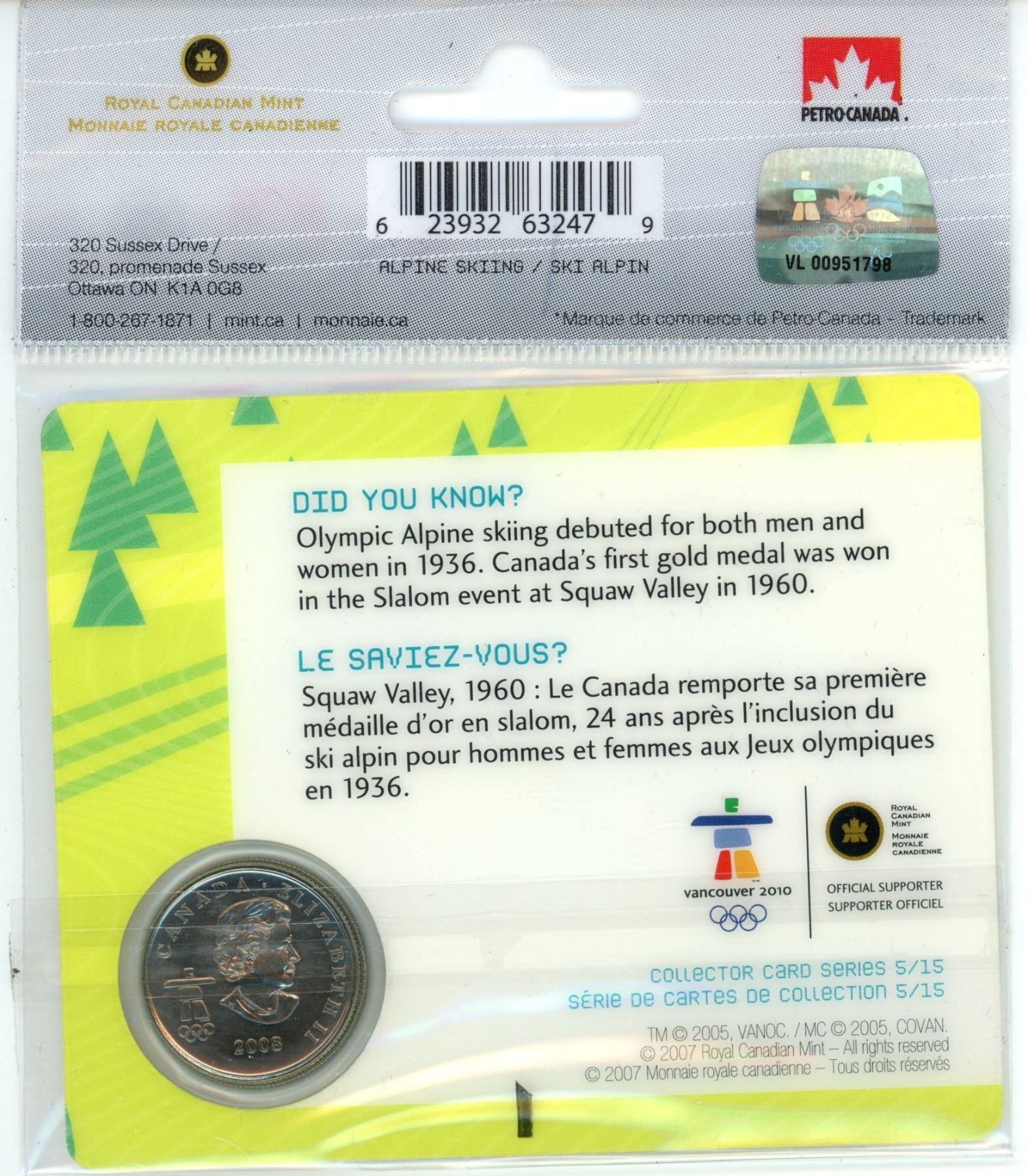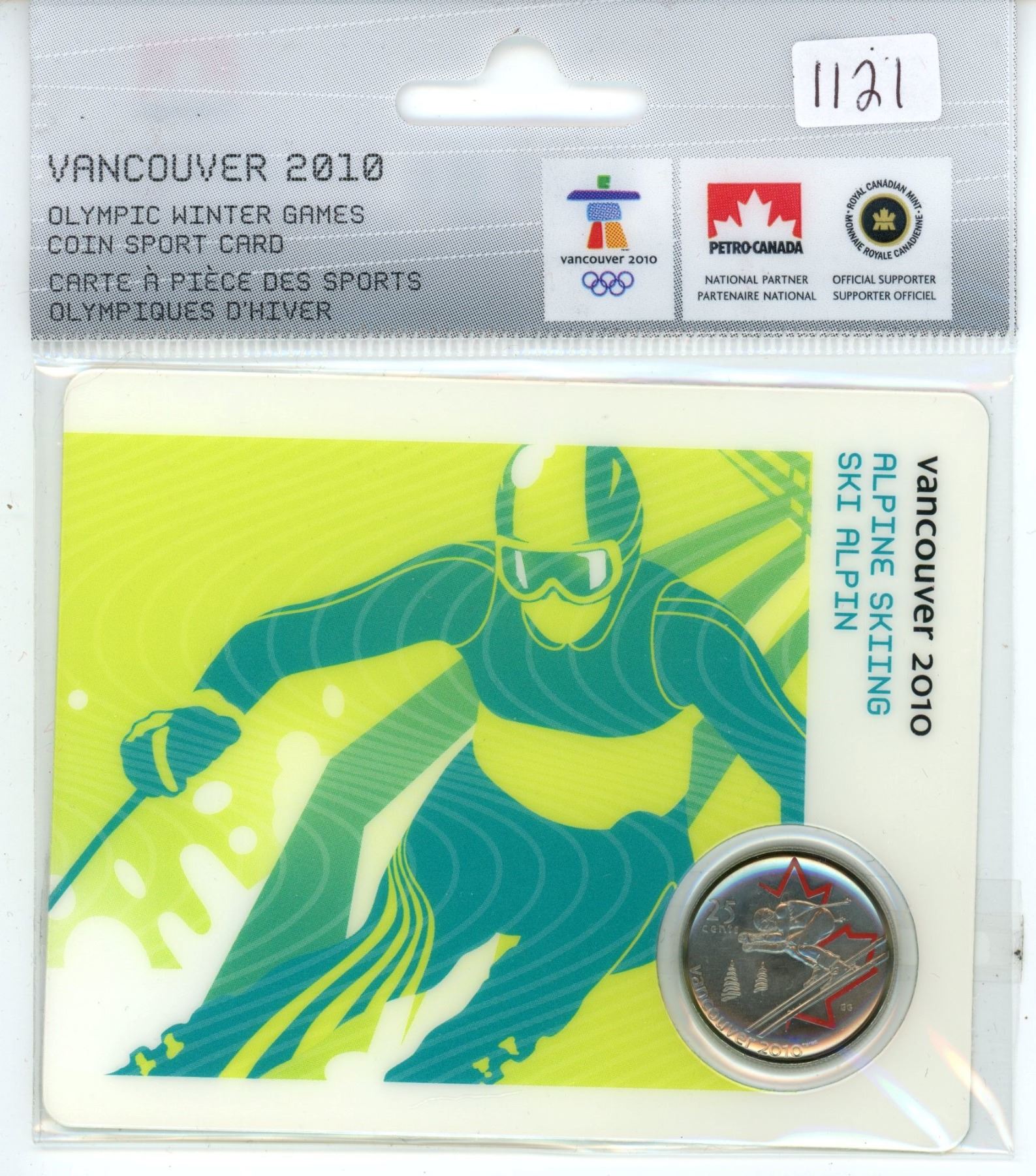 Vancover 2010 Olympic winter games coin sport card. Alpine Skiing 25 cents. Coin is dated 2008.