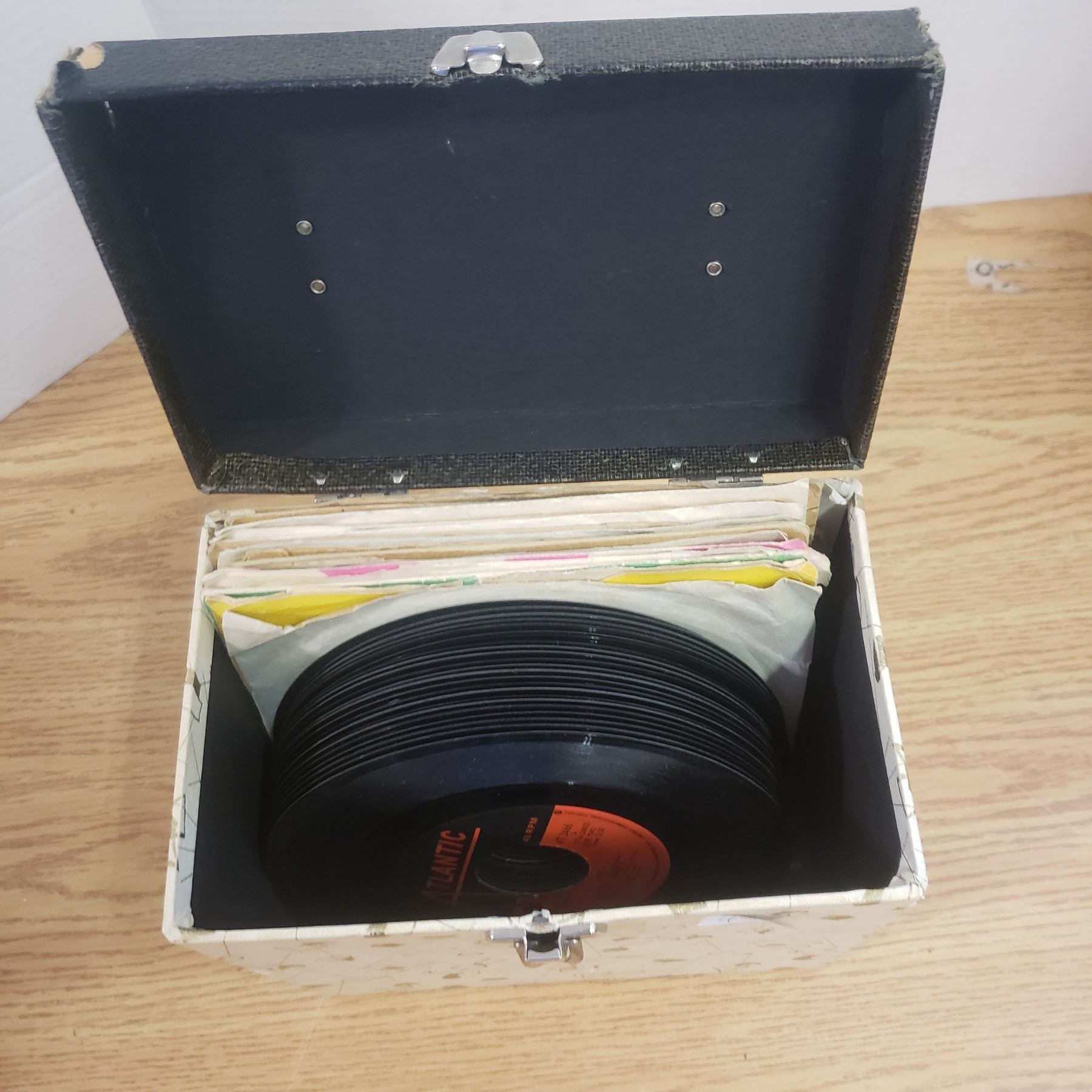Variety of 45 records with carrying case