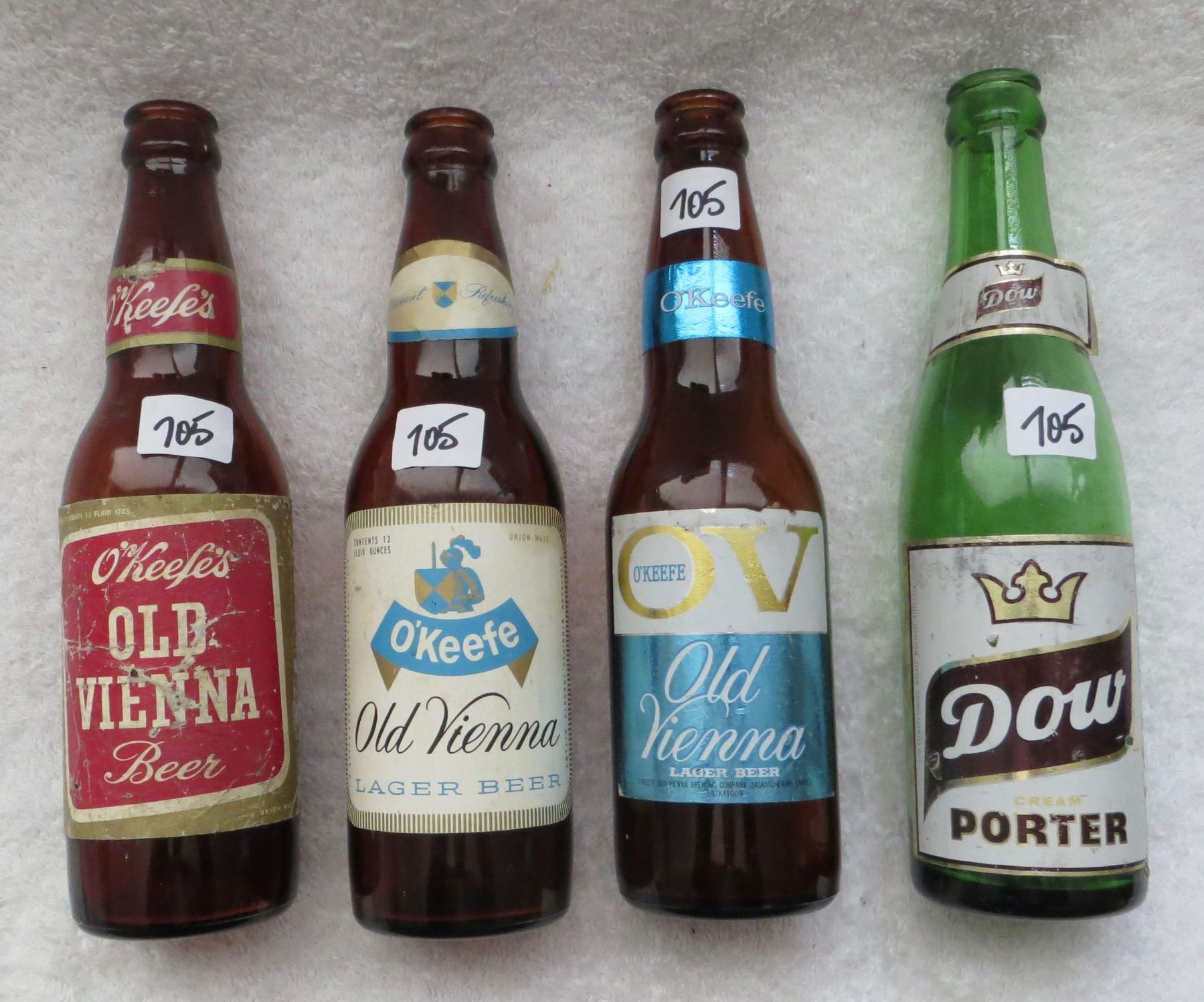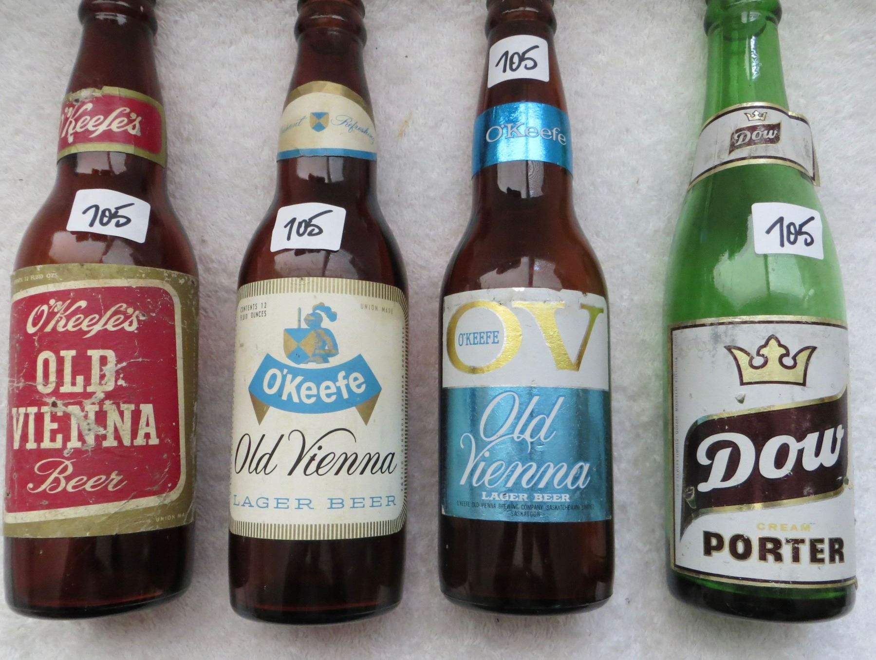 Variety of O'Keefe's - Old Vienna - Dow Porter beer bottles