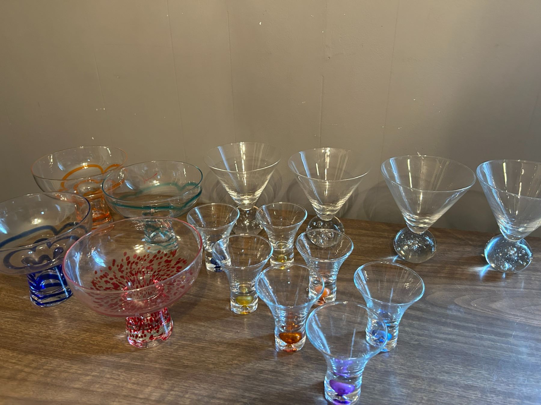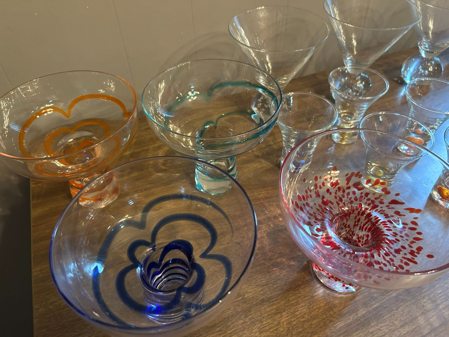 Variety of original shapes & colored Glasses and shot glasses bubble color.