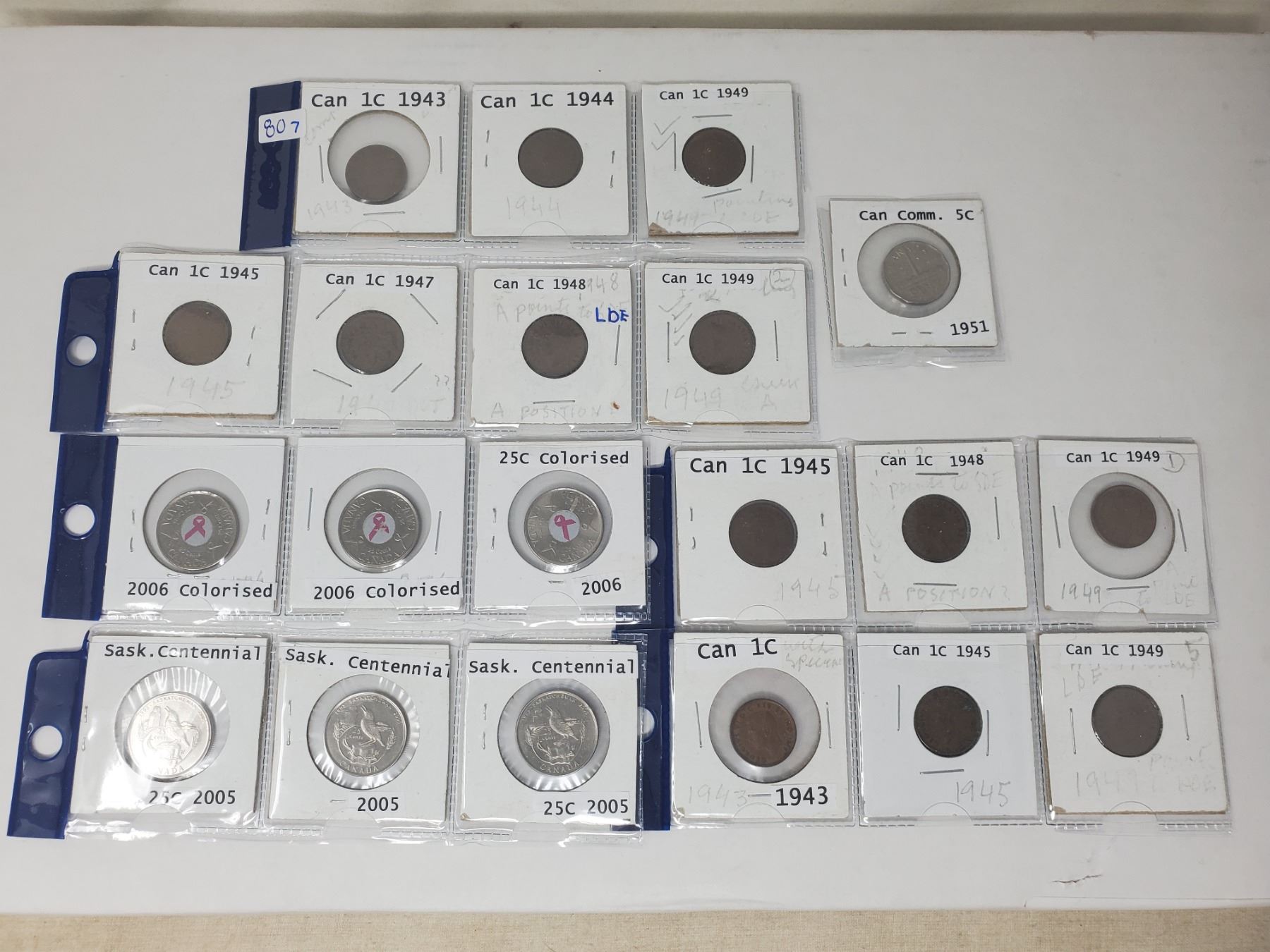 Various Canadian coins & dates (6 X 25 cents, 1 5 cent, 13 1 cent)