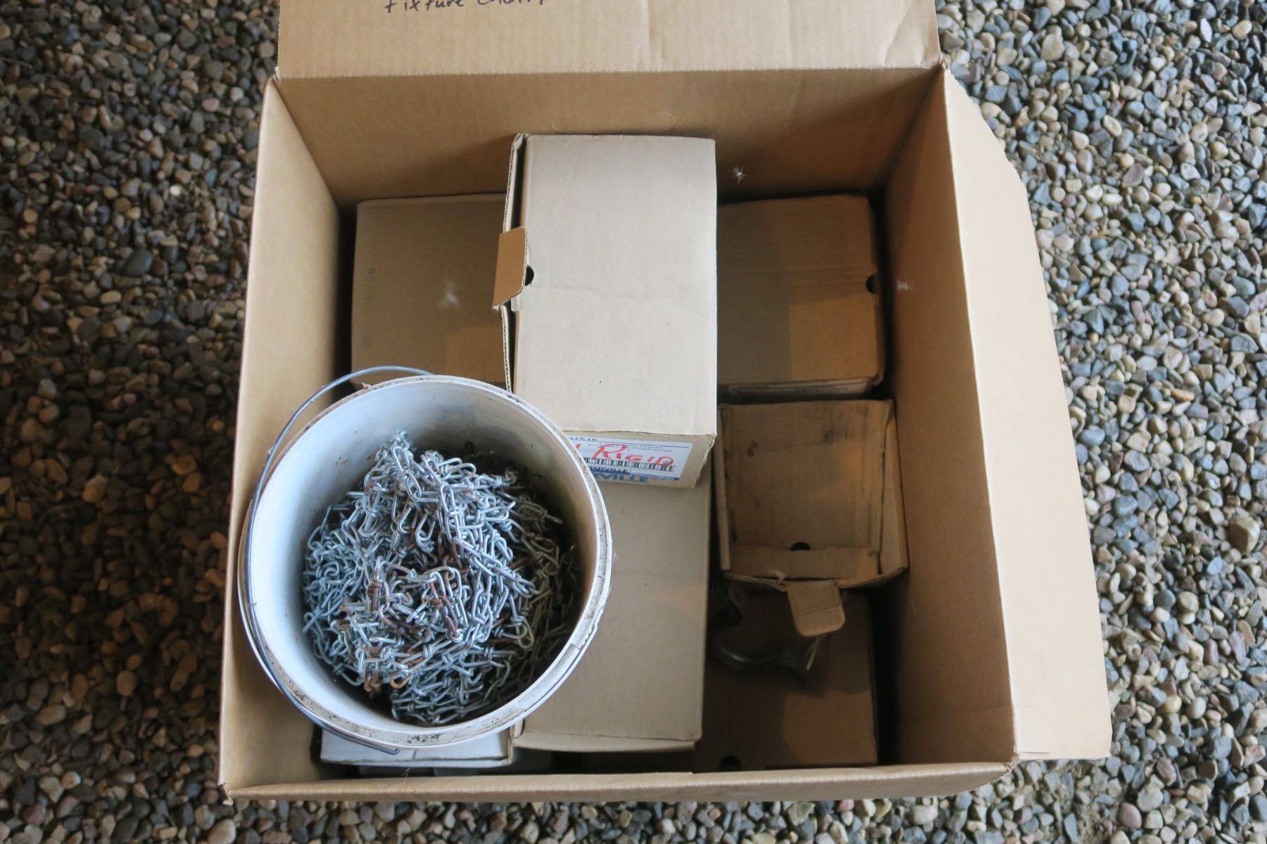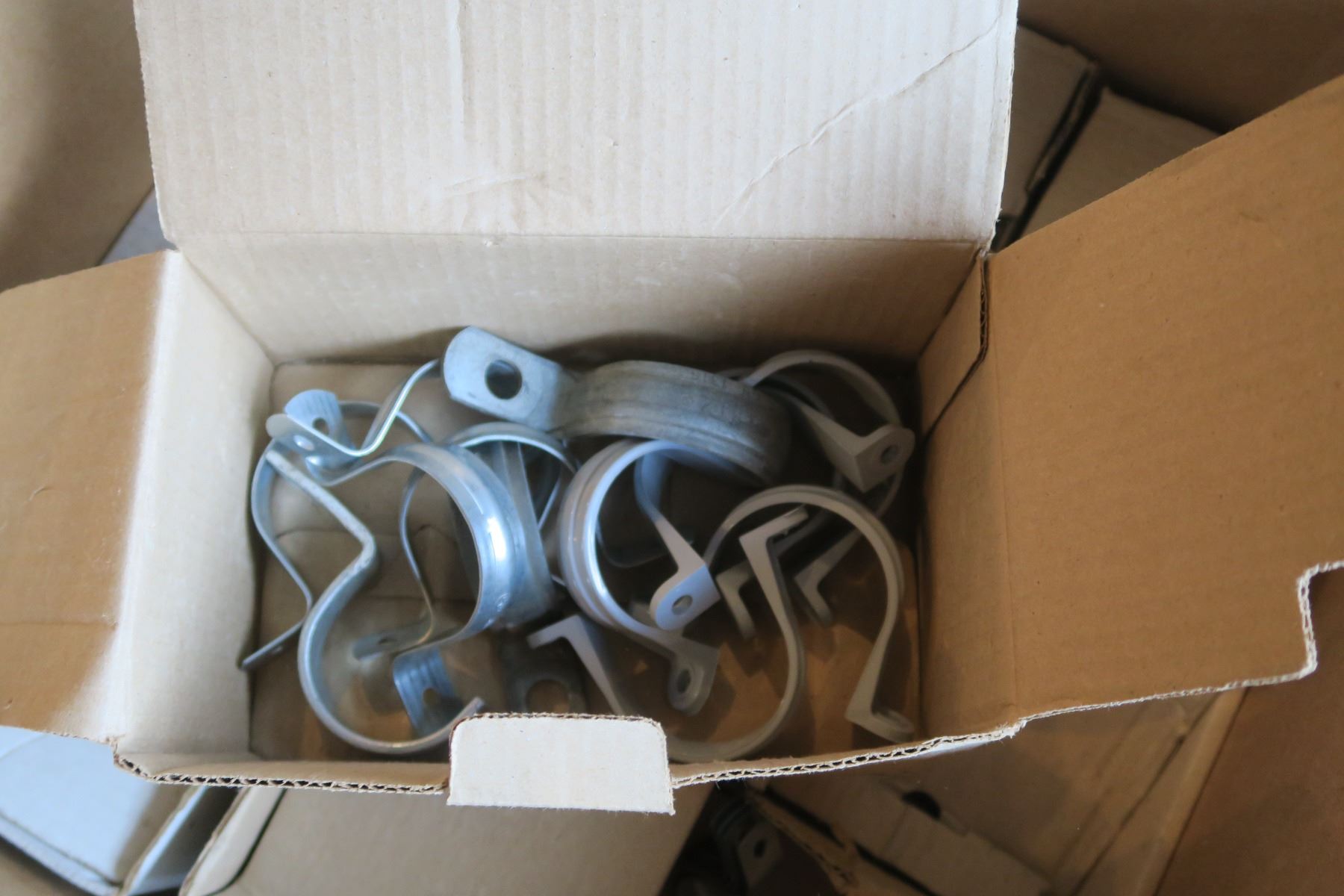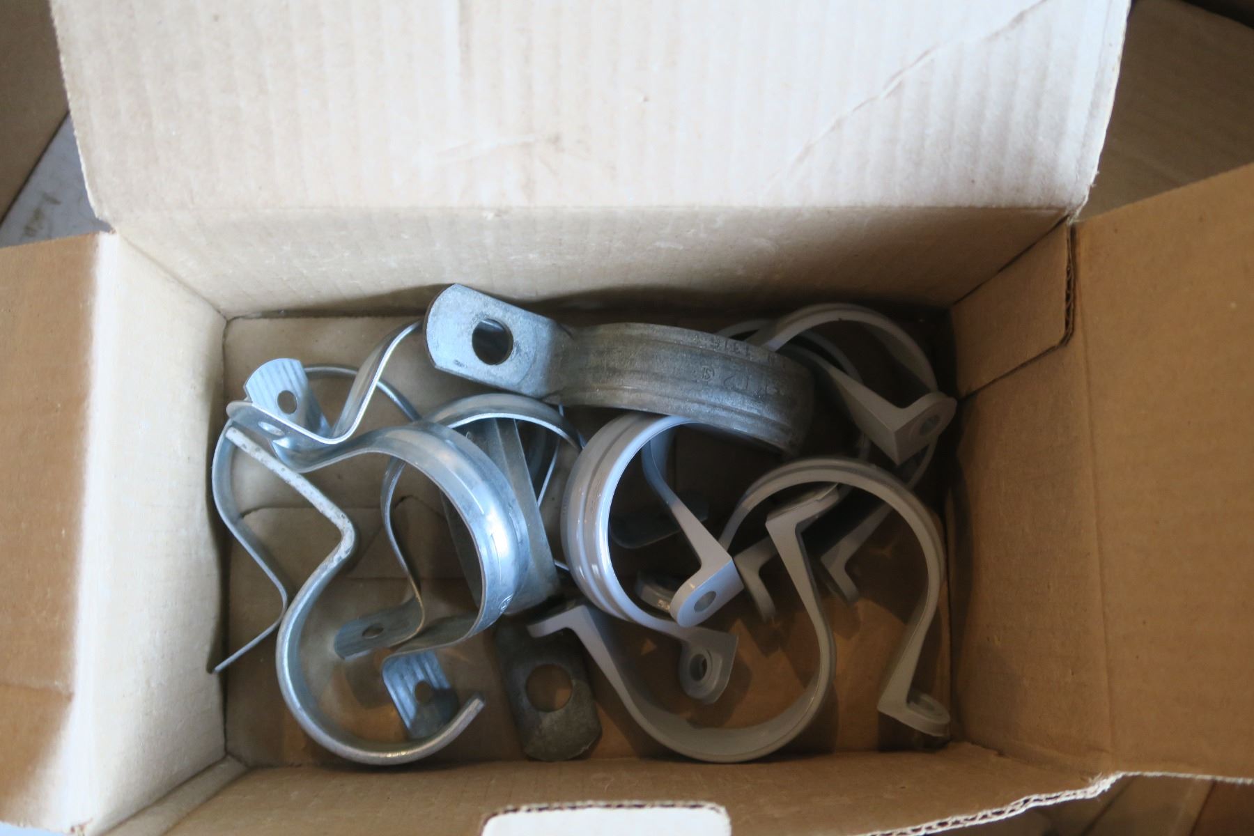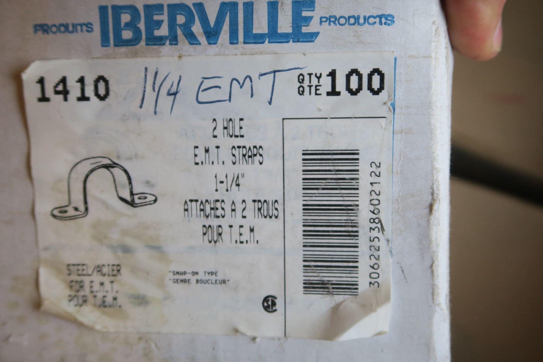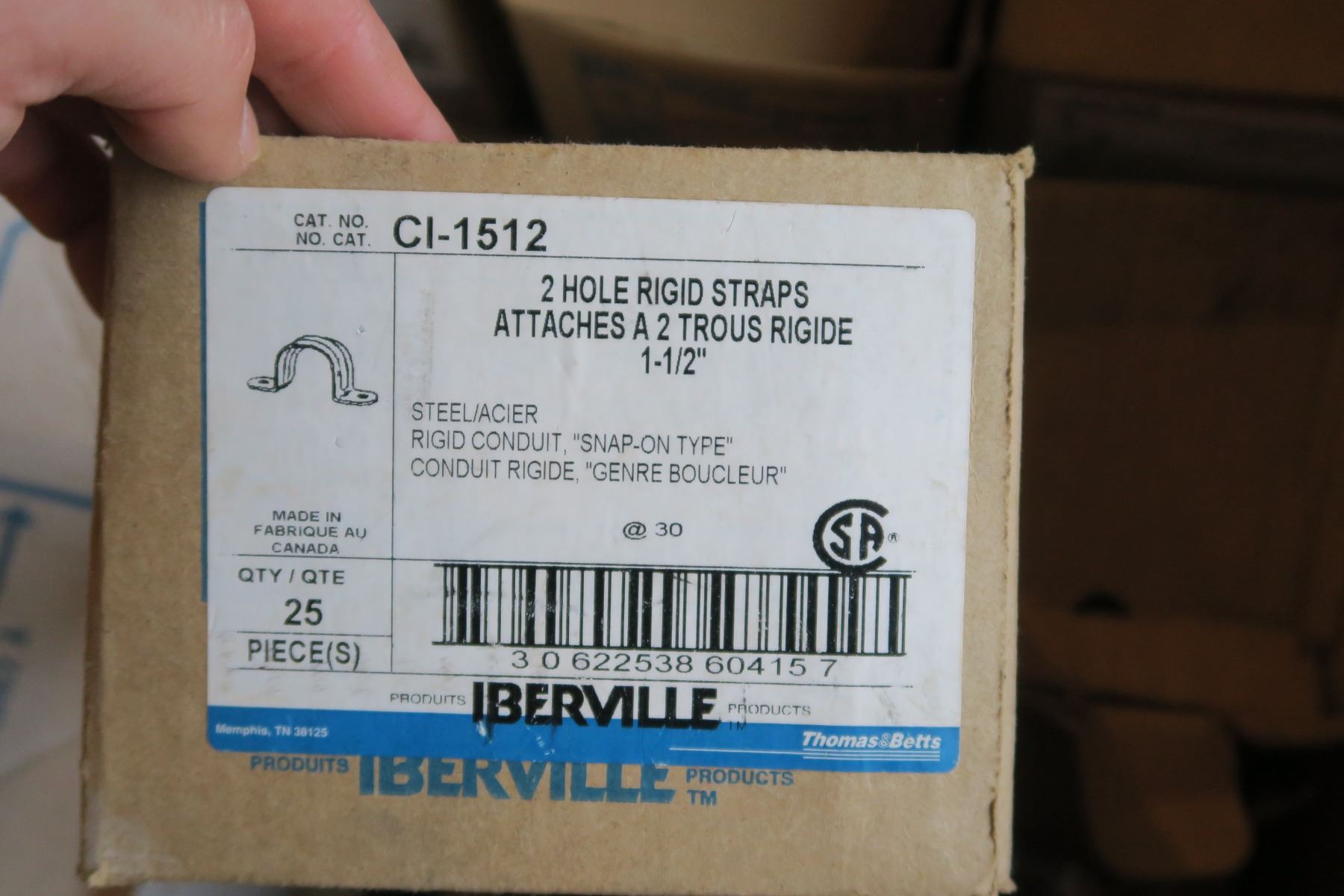 Various EMT Straps in Box, 1 Hole + 2 Hole, 1/2-2" Fixture Chain