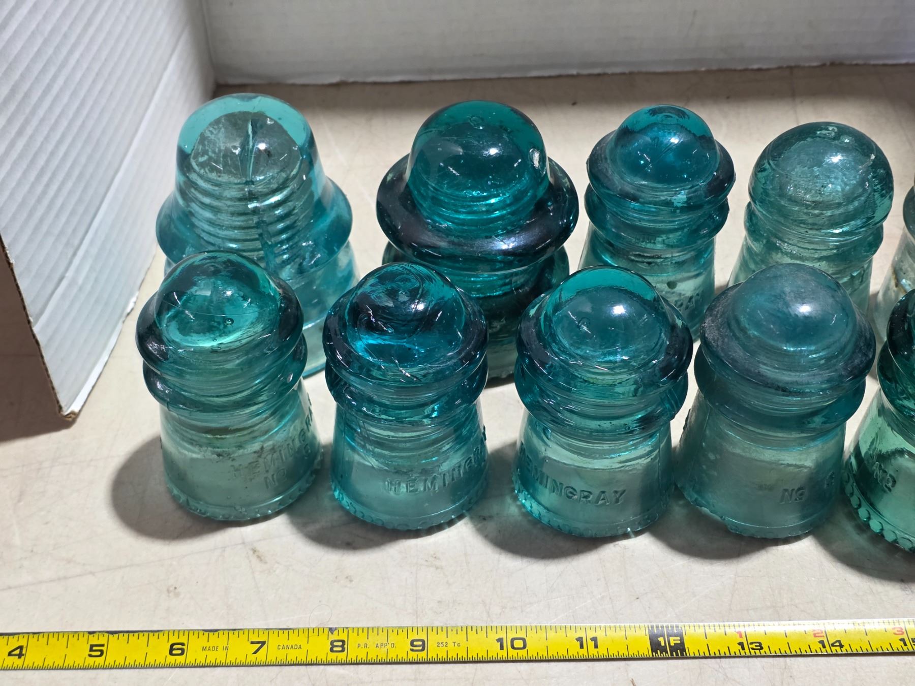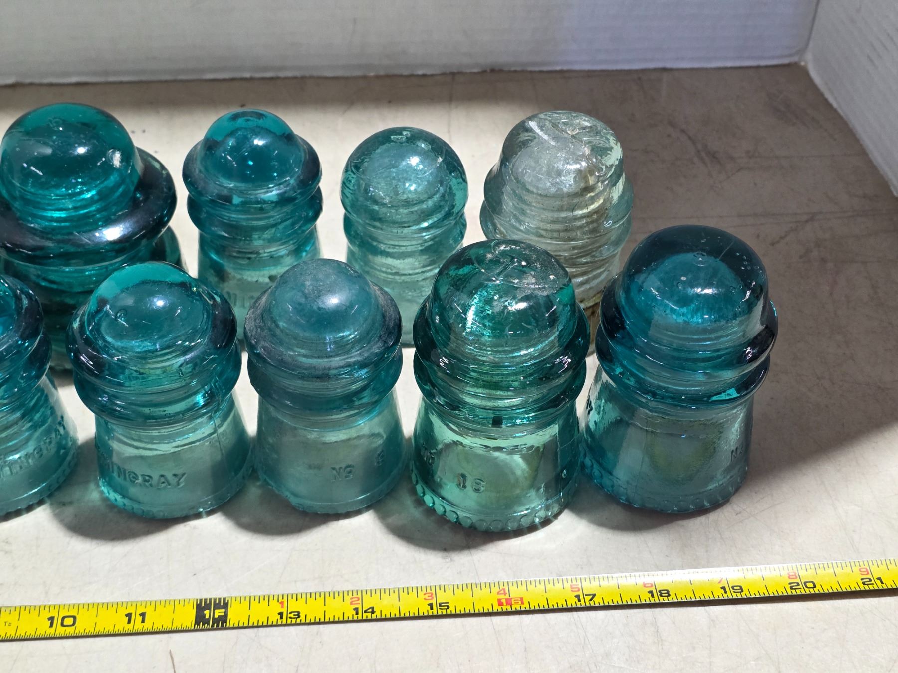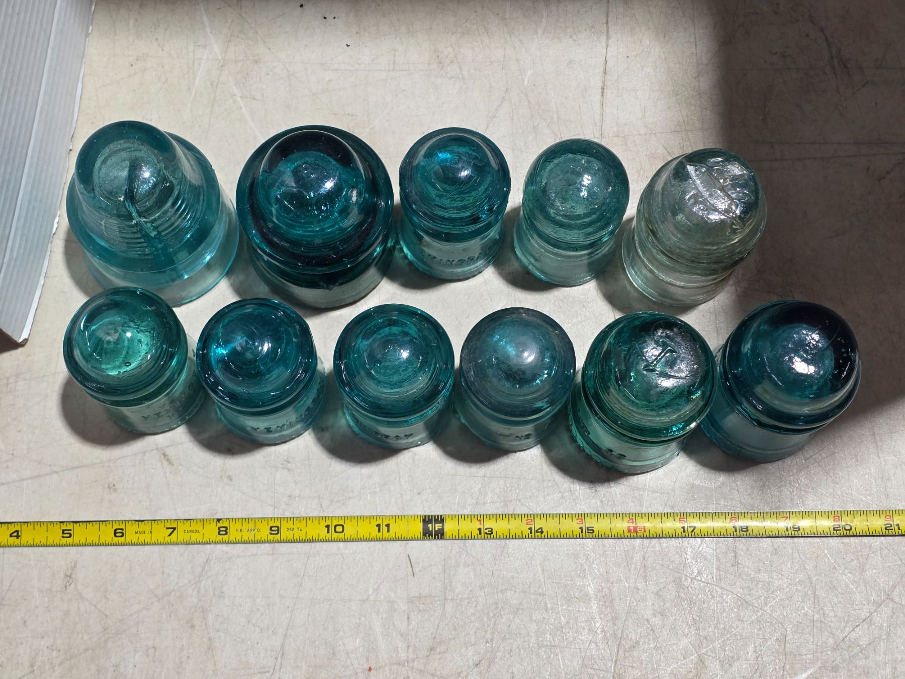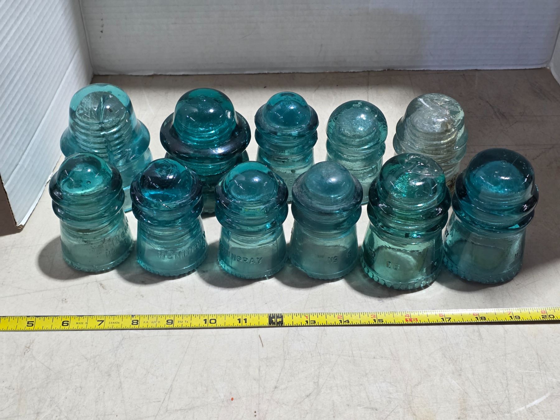 Various blue glass insulators