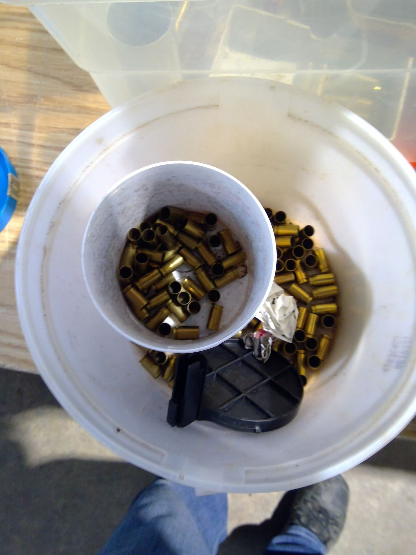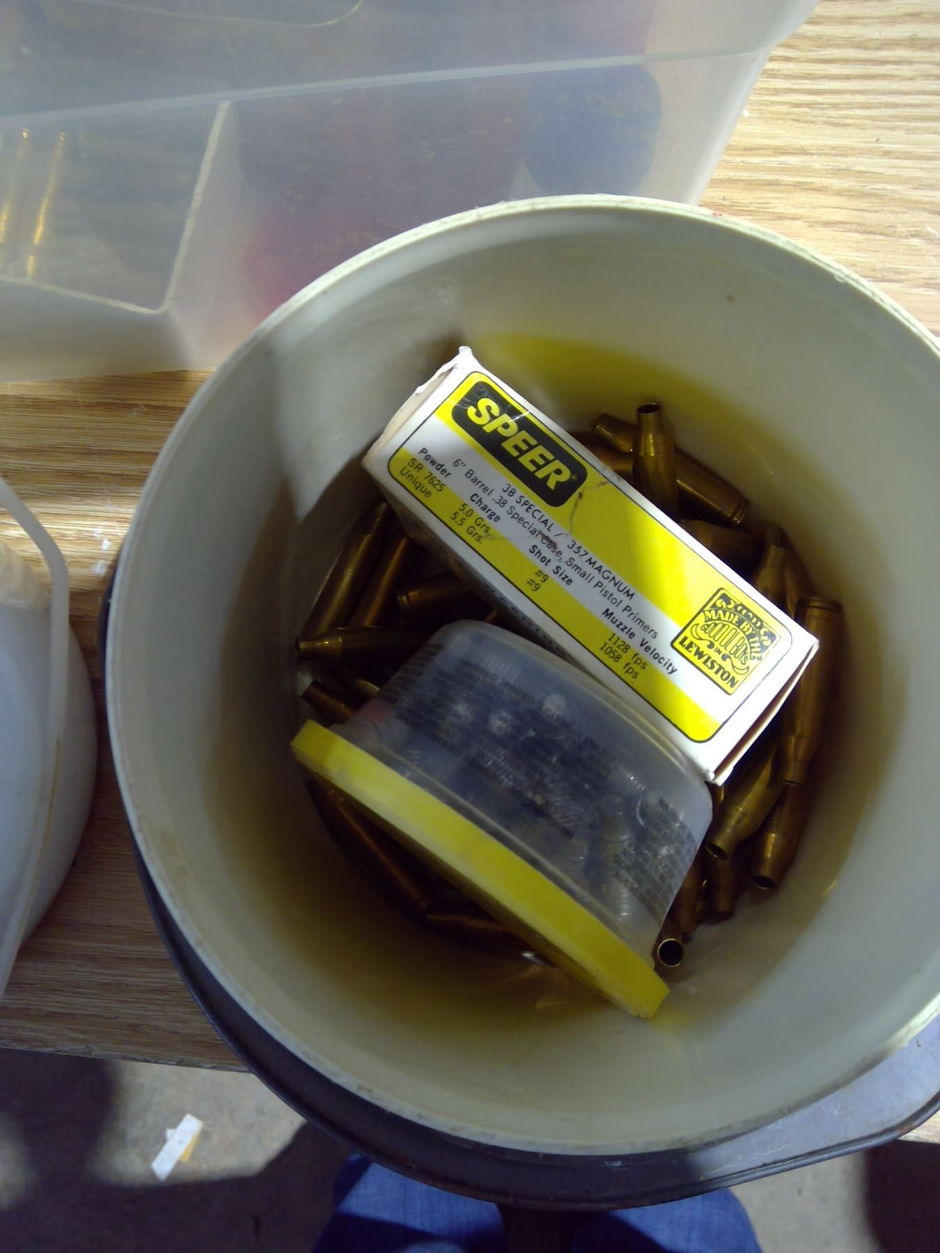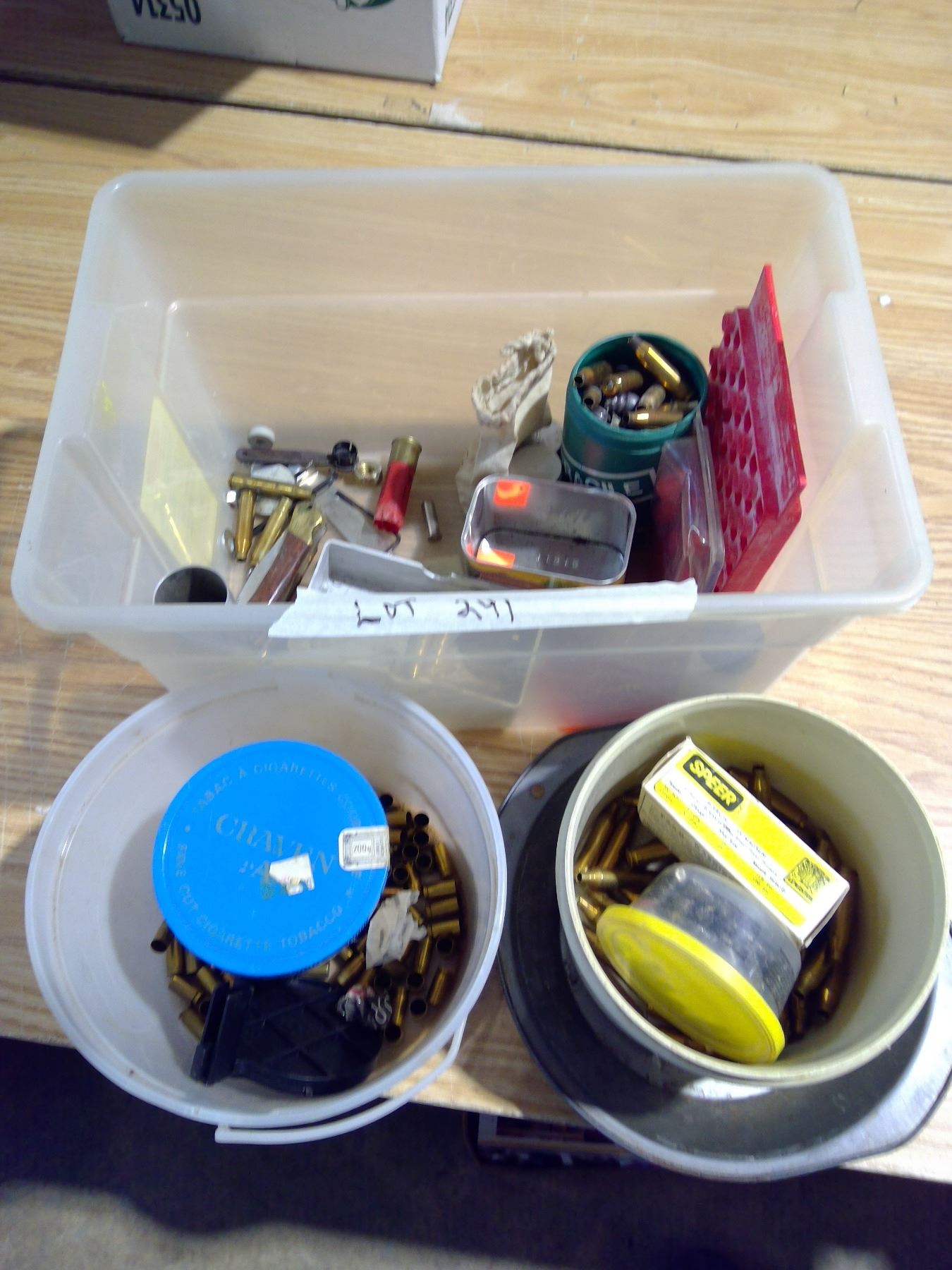 Various rifle/pistol brass, lead bullets and Misc items in plastic tub