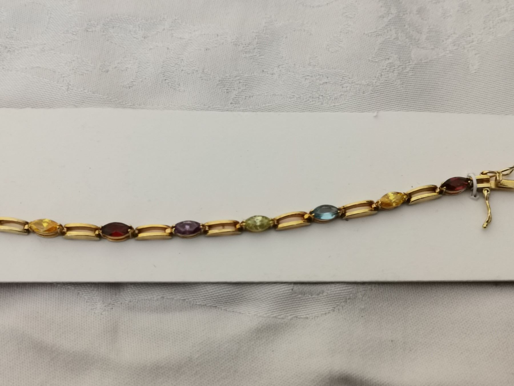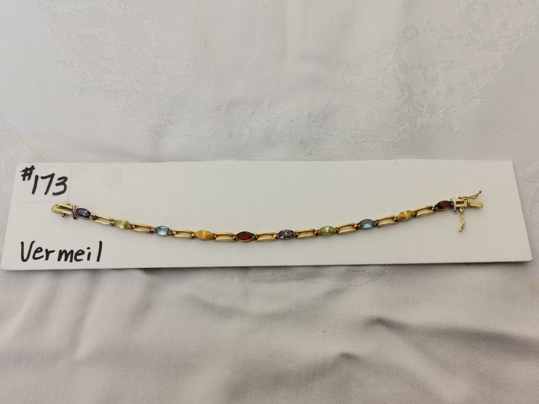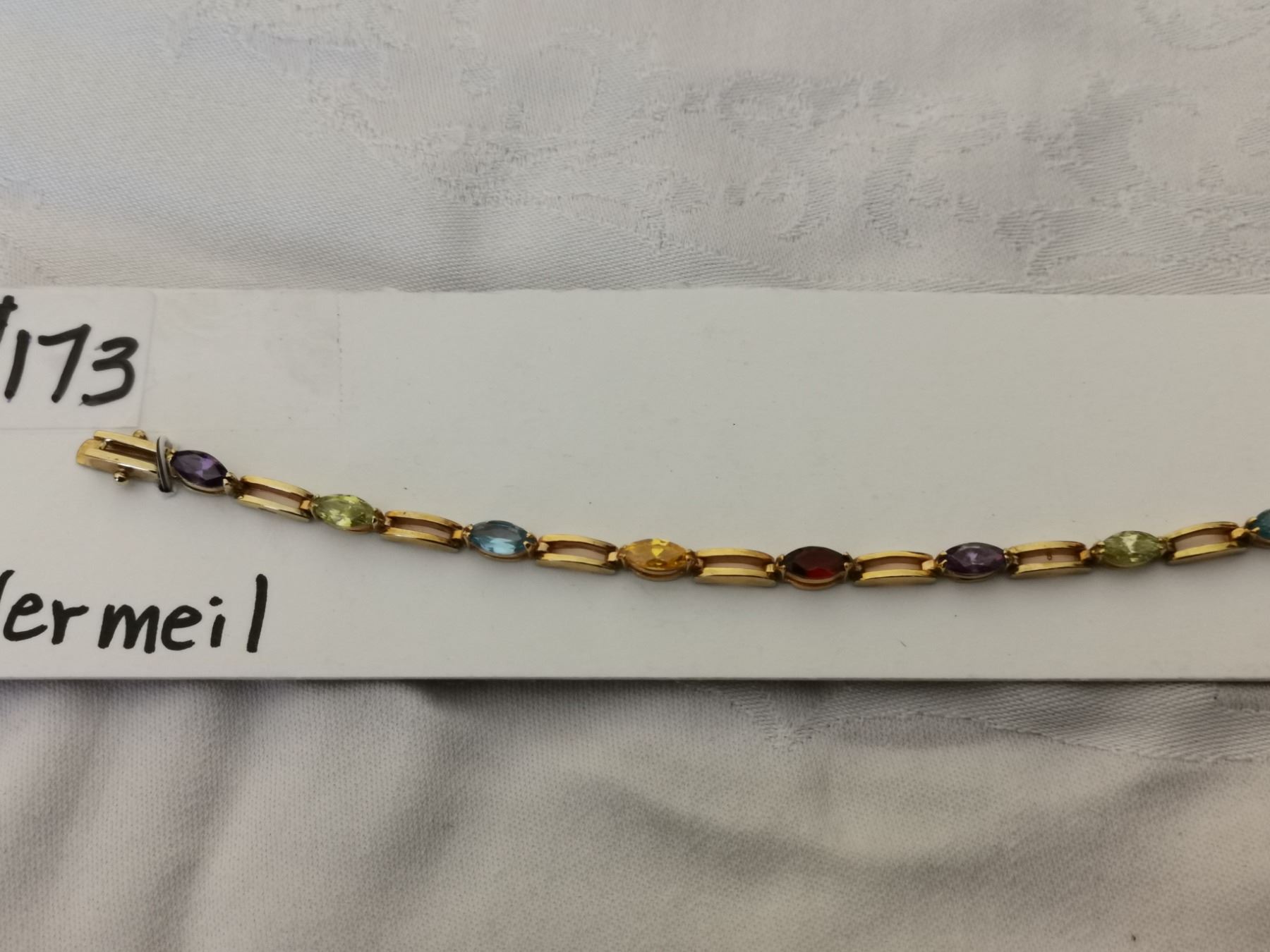 Vermeil bracelet (gold plate on sterling), semi-precious stones, marked .925, 7 ½”