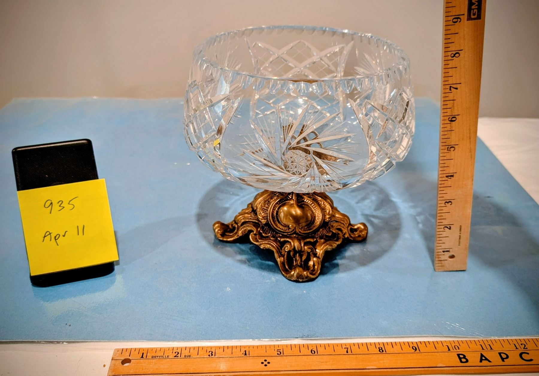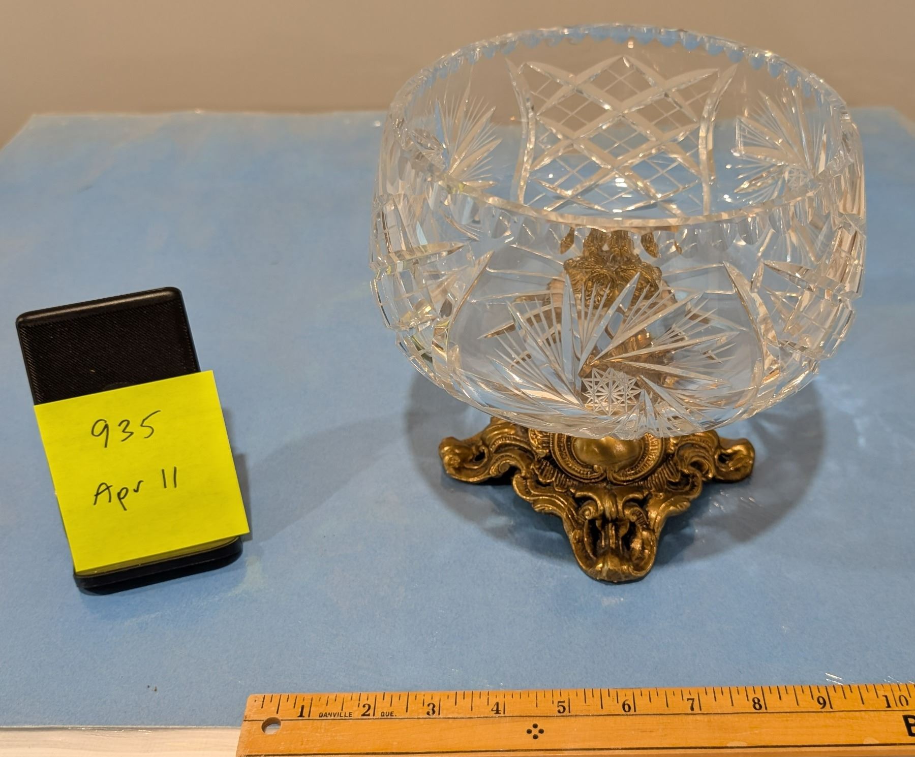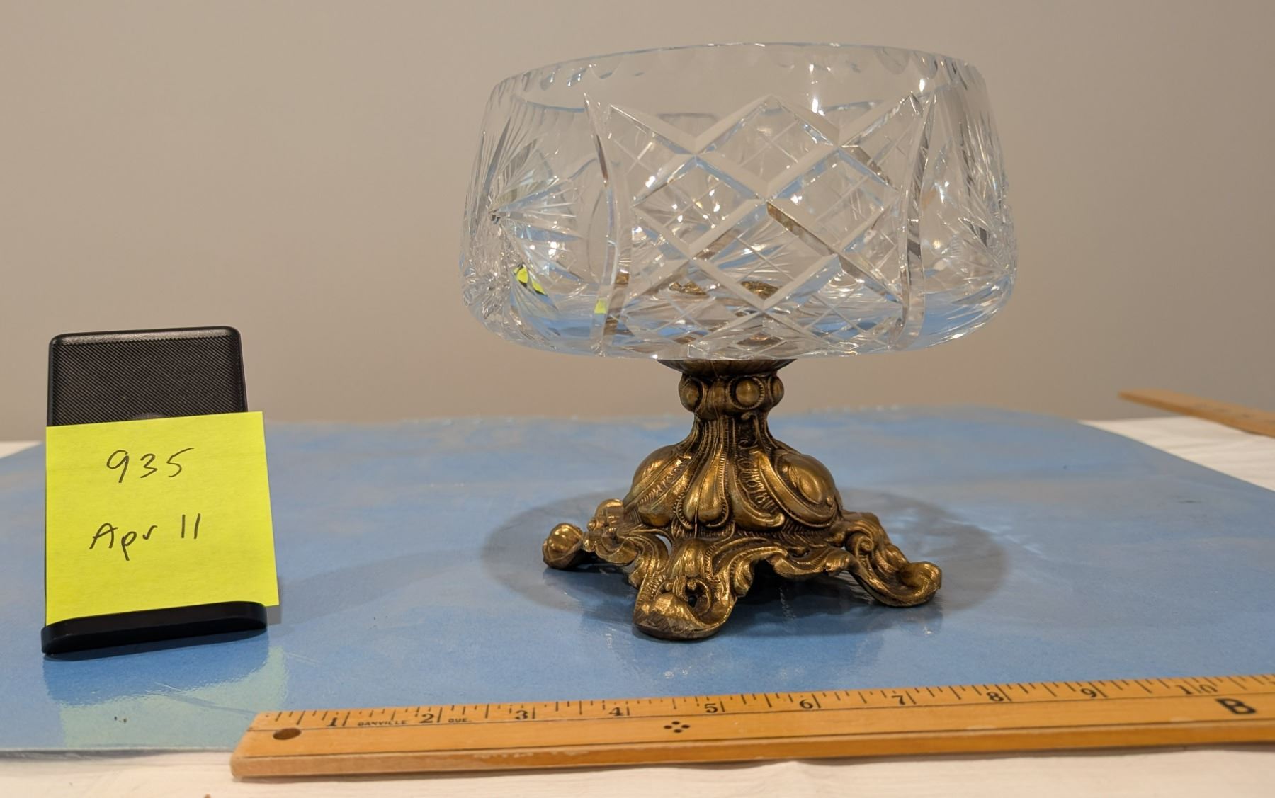 Very Heavy Elegant Crystal Bowl on Attached Pedestal