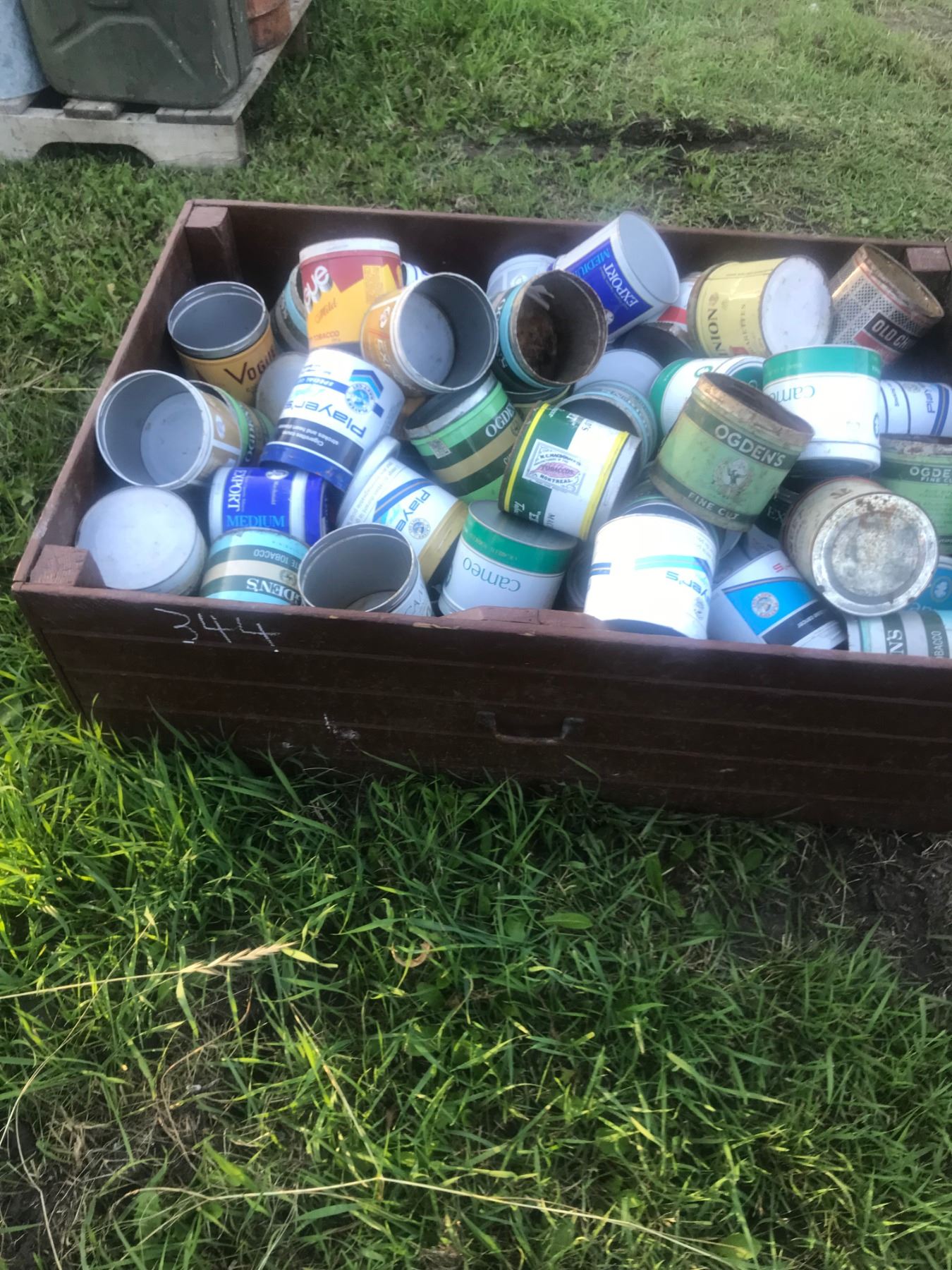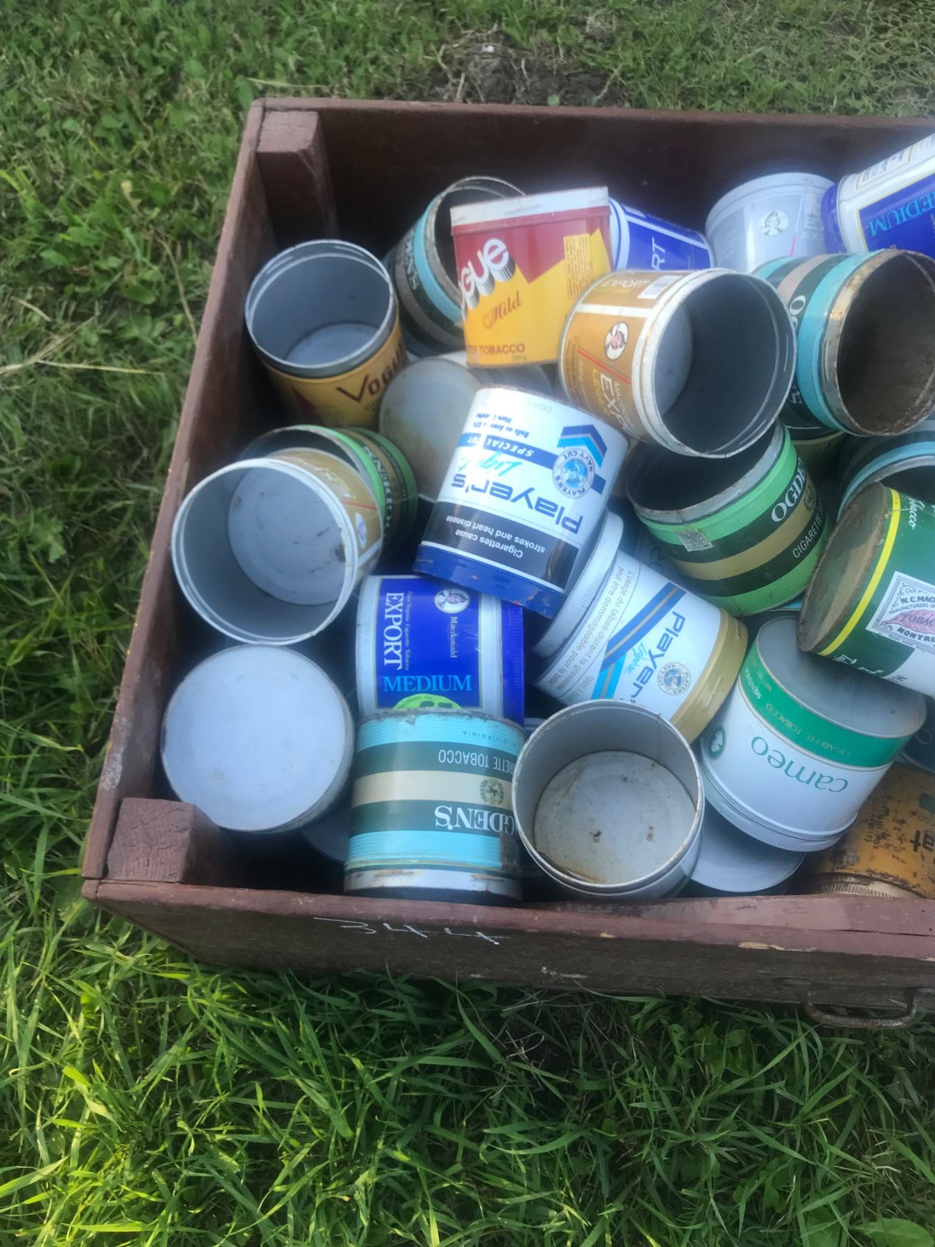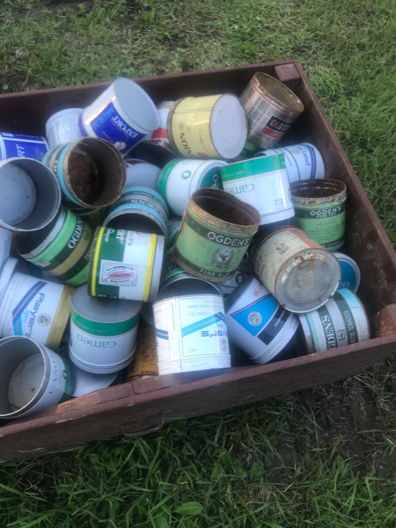 Very Large Lot of Tobacco Tins and Wooden Crate