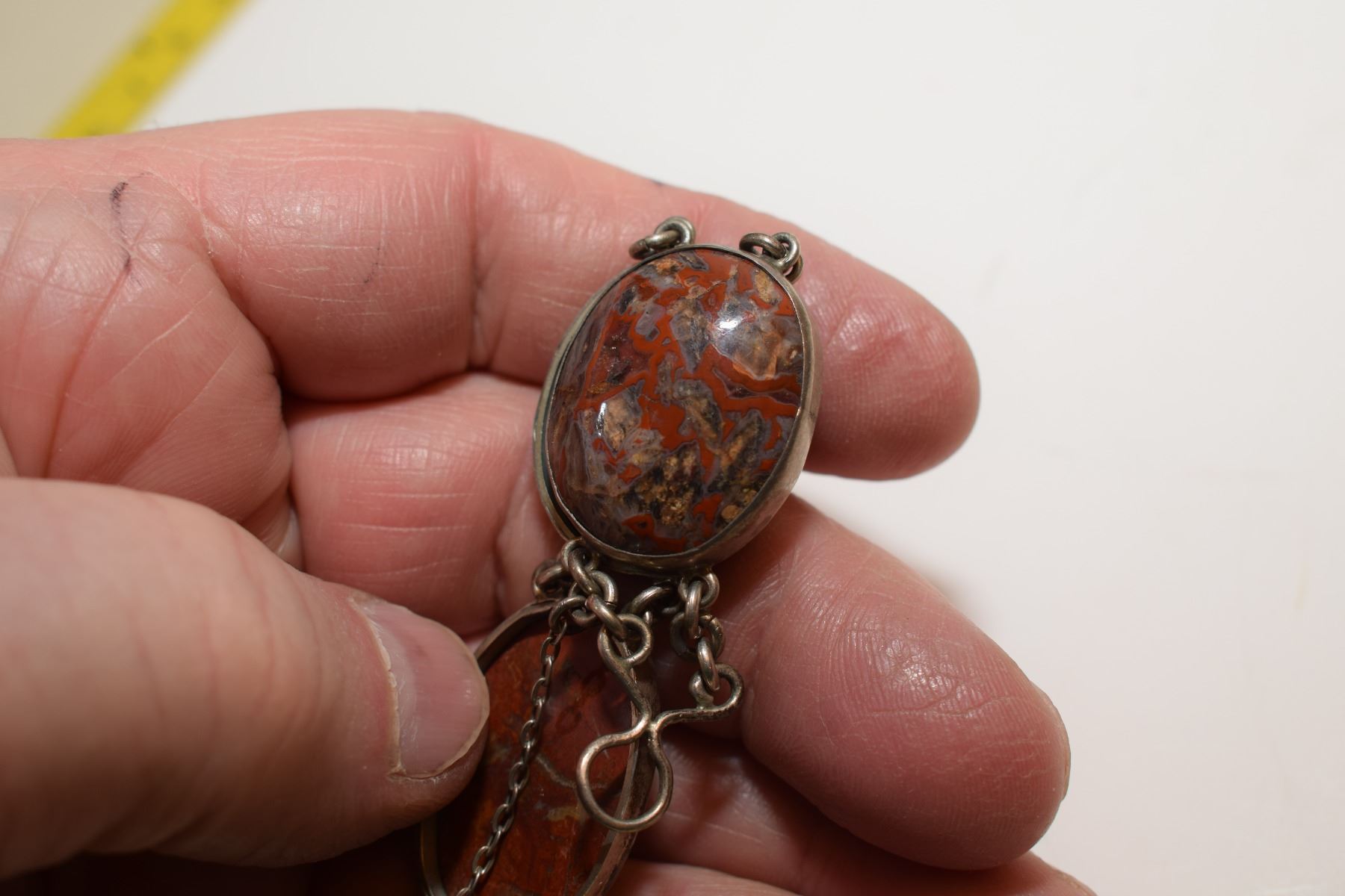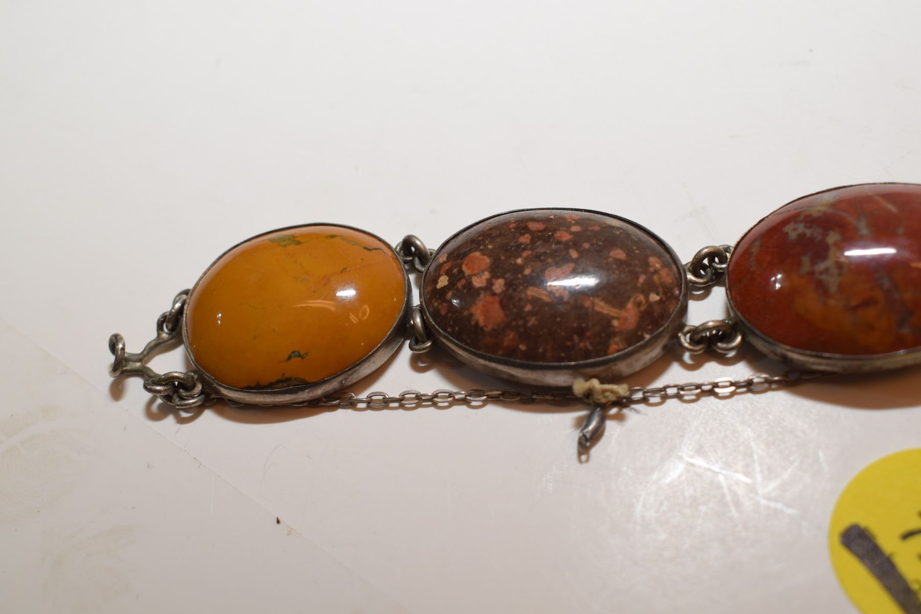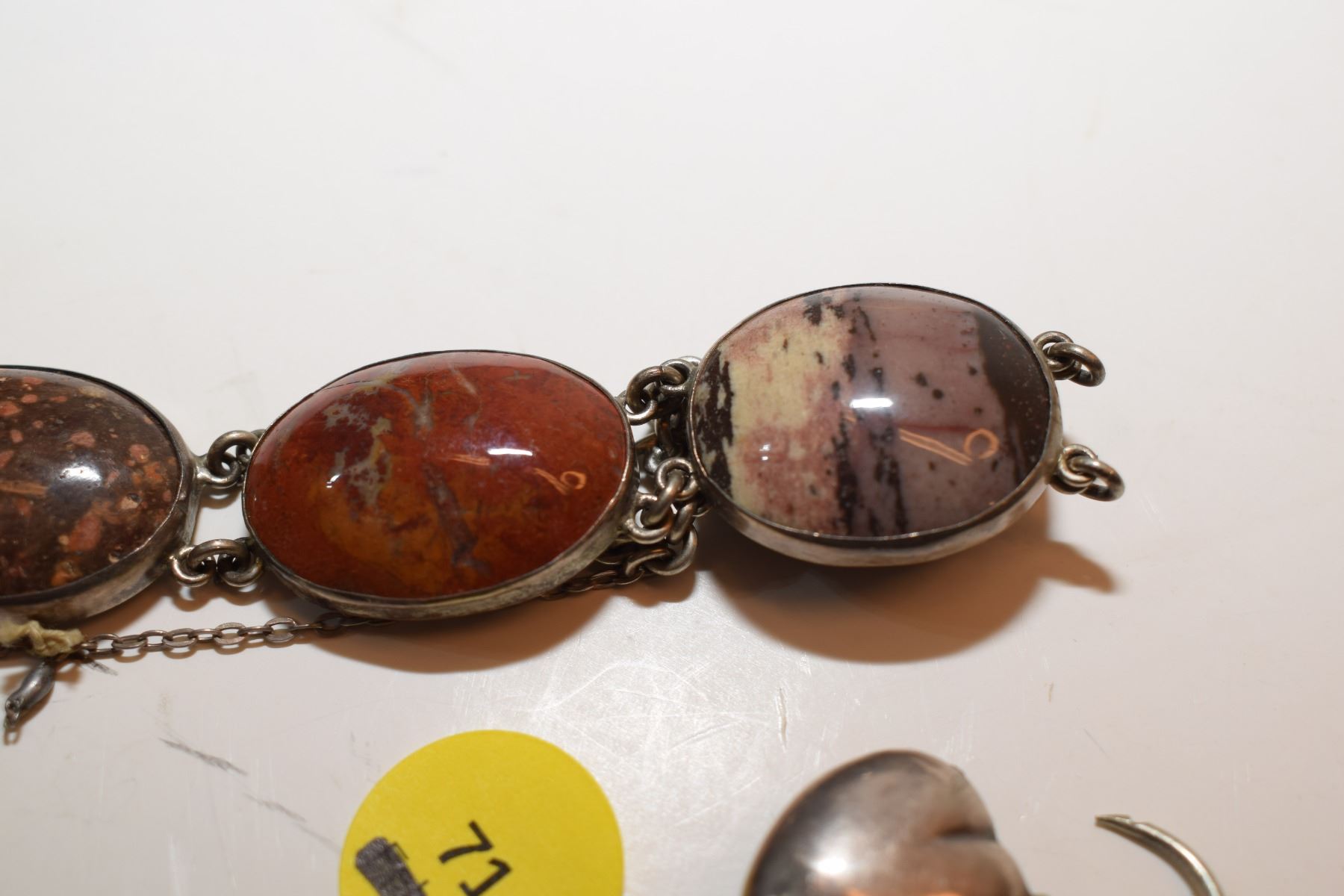 Very Old Agate Gemstones Bracelet w/ Heart Clasp (Likely Silver – Not Verified)
