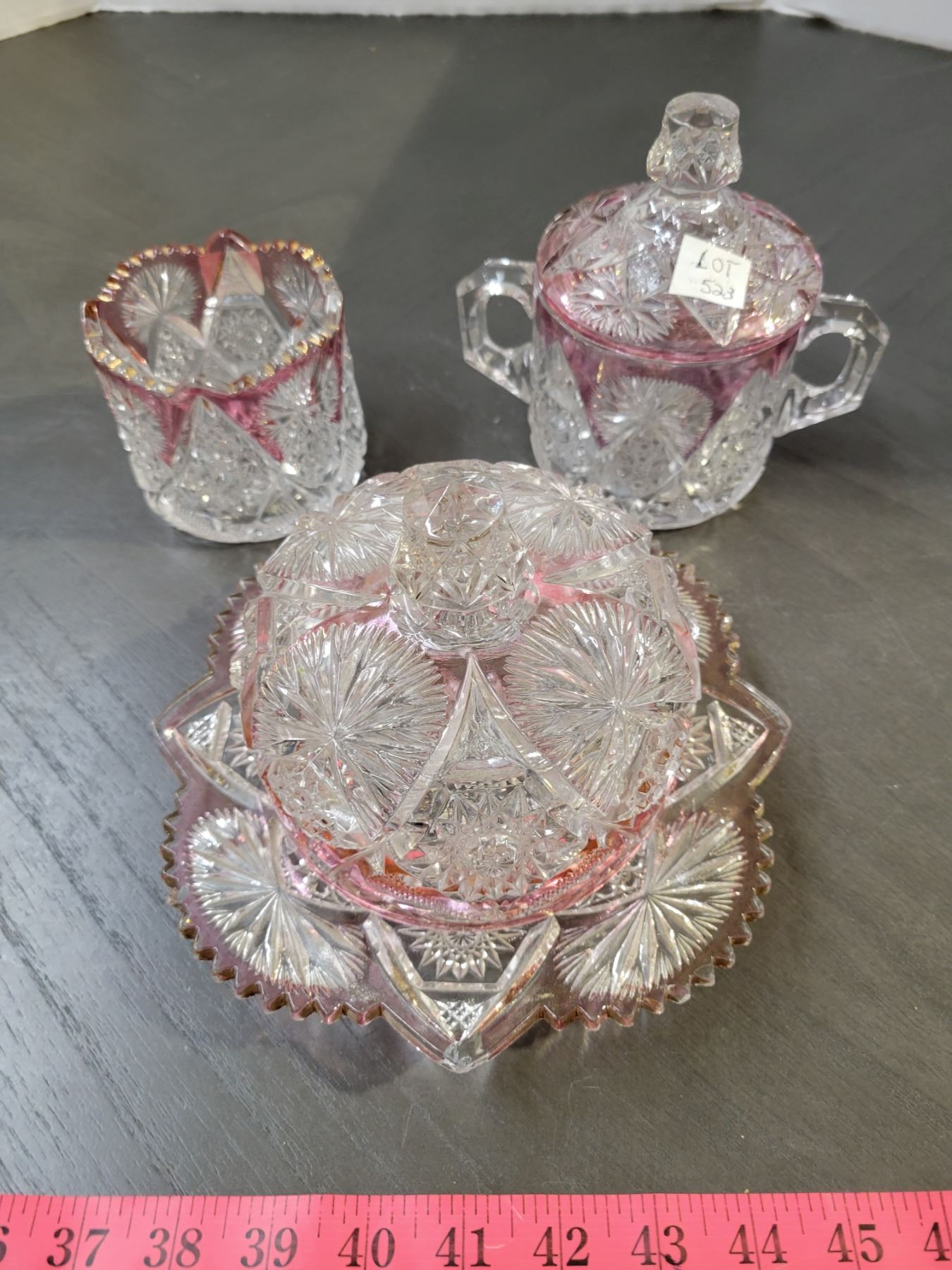 Very Old Cutglass Set - Covered Butter Dish, Sugar Bowl, Spooner