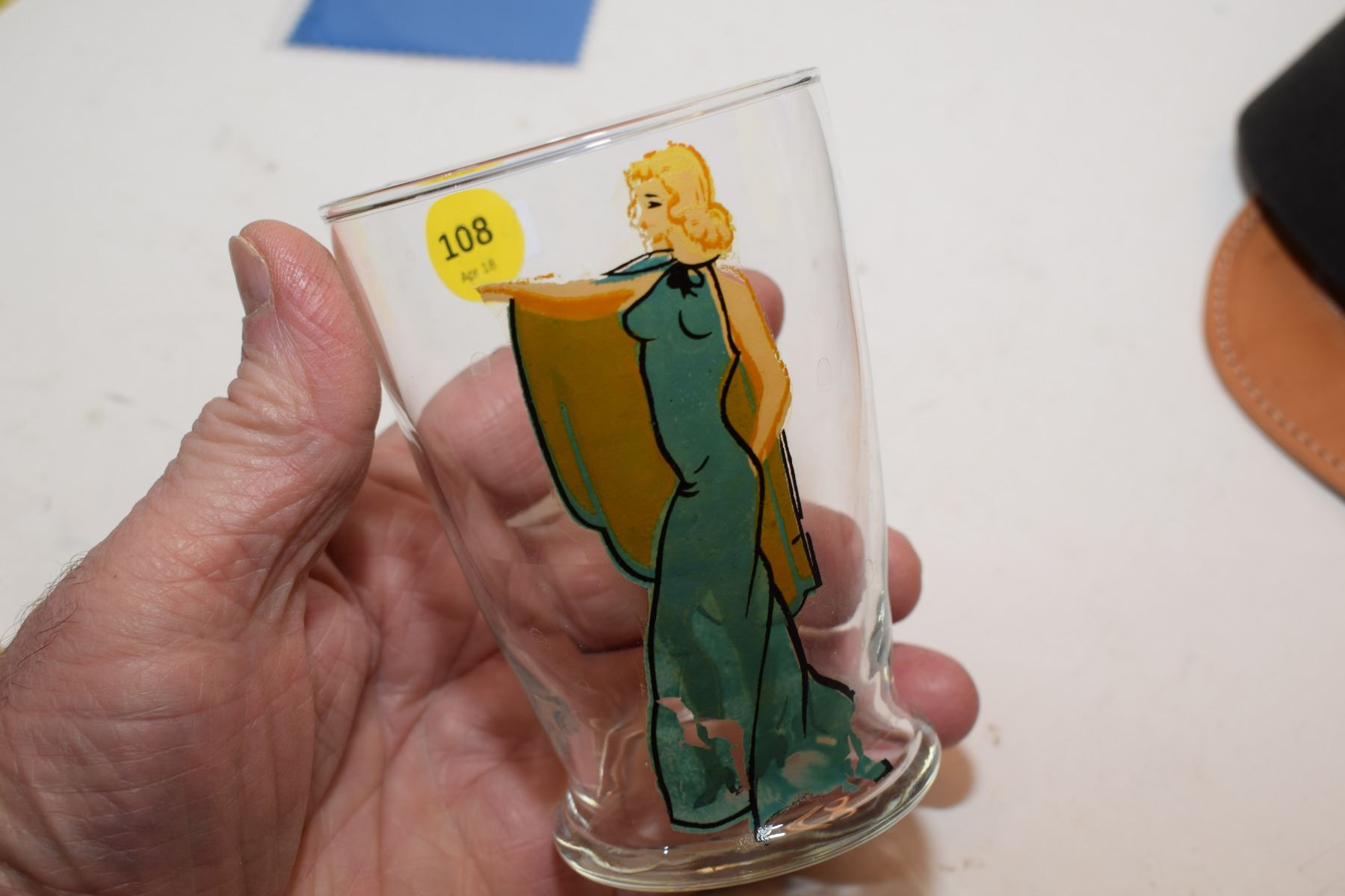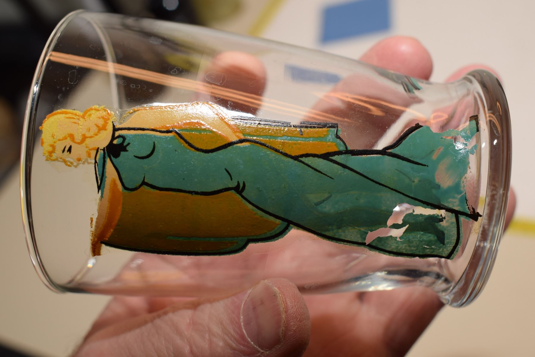Very Old Risque Painted Label Glass