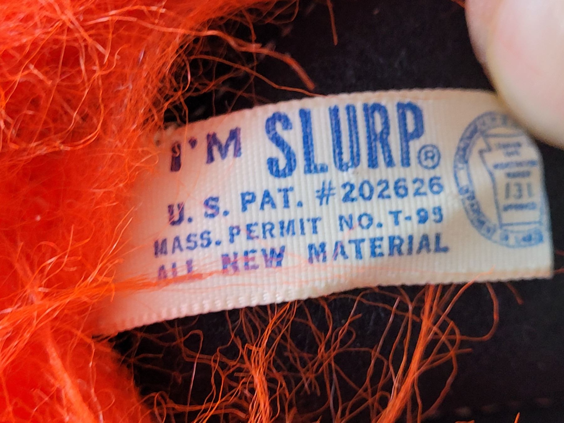 Very Rare, I'M SLURP from 1960. A Spectacular Products orange furry with eye lashes.