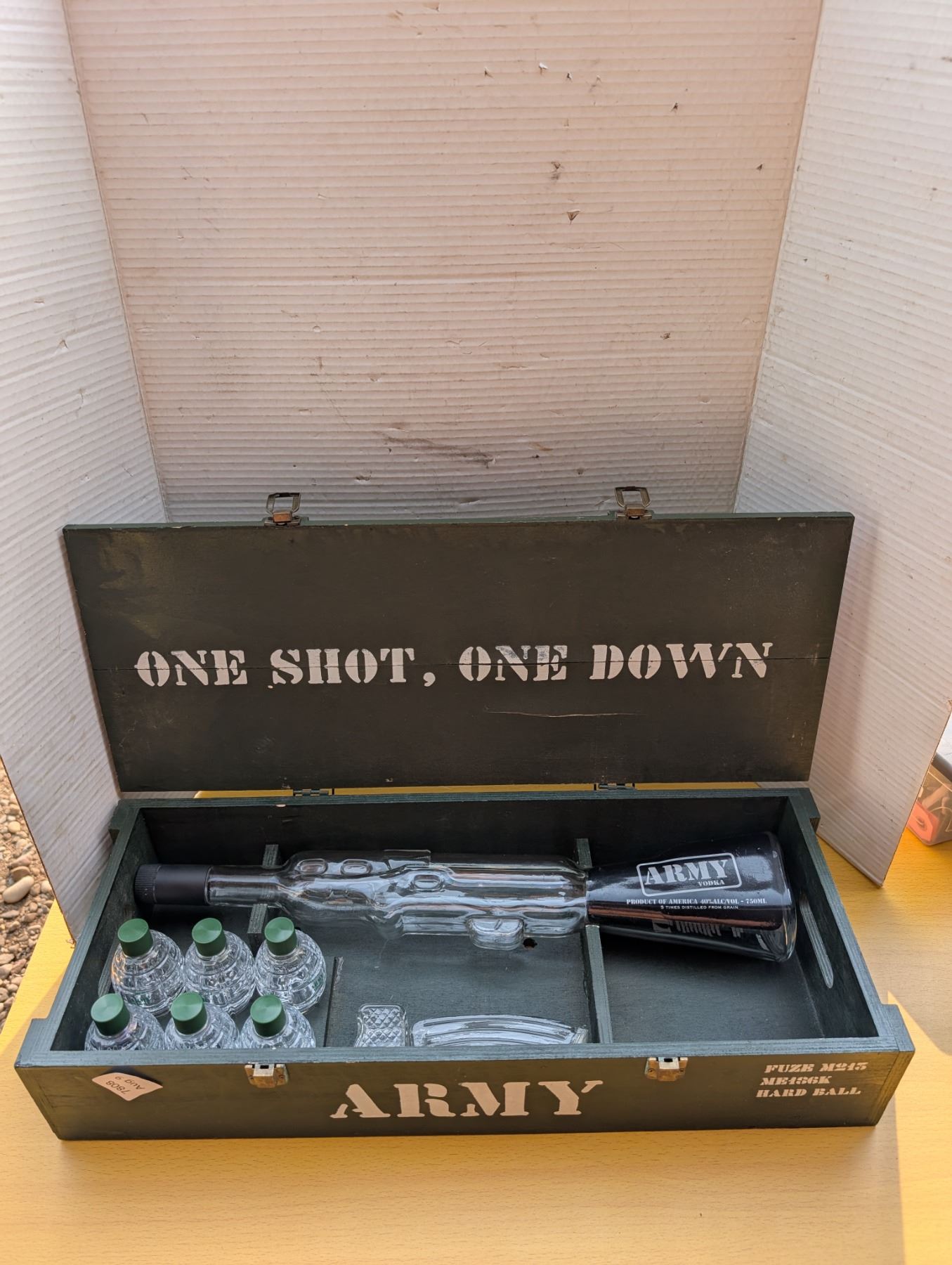 Very Vintage Liquor set (Vodka Bottle Shaped in AK and Grenades and Military Box Design )