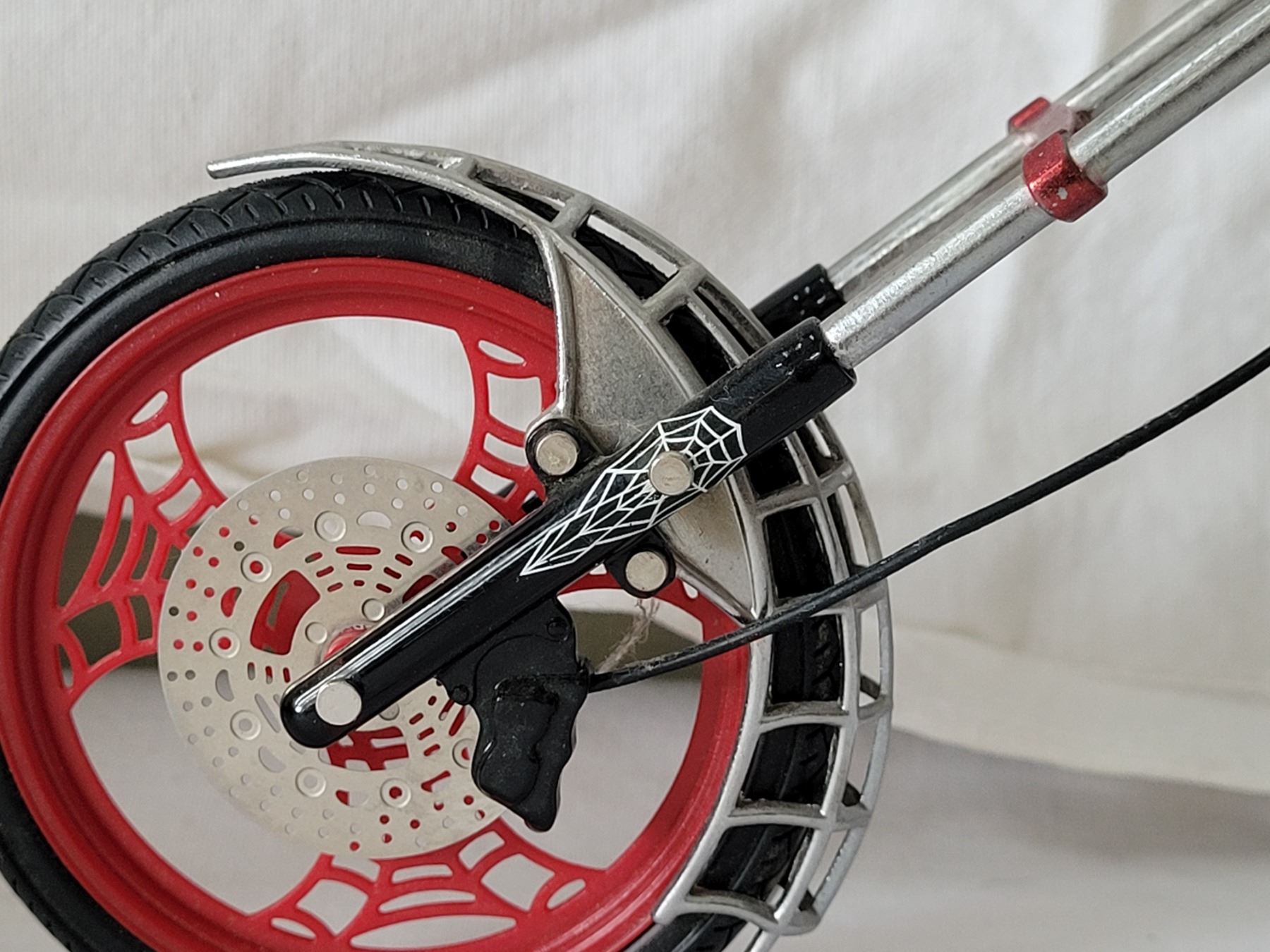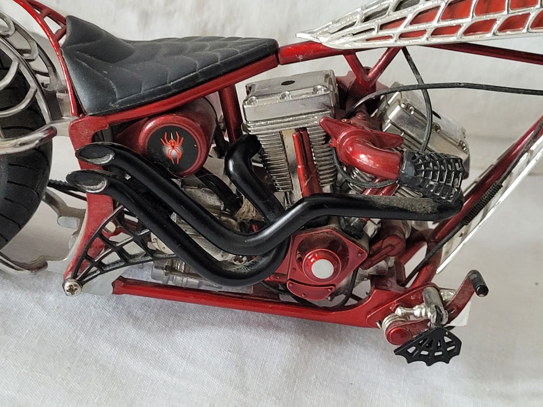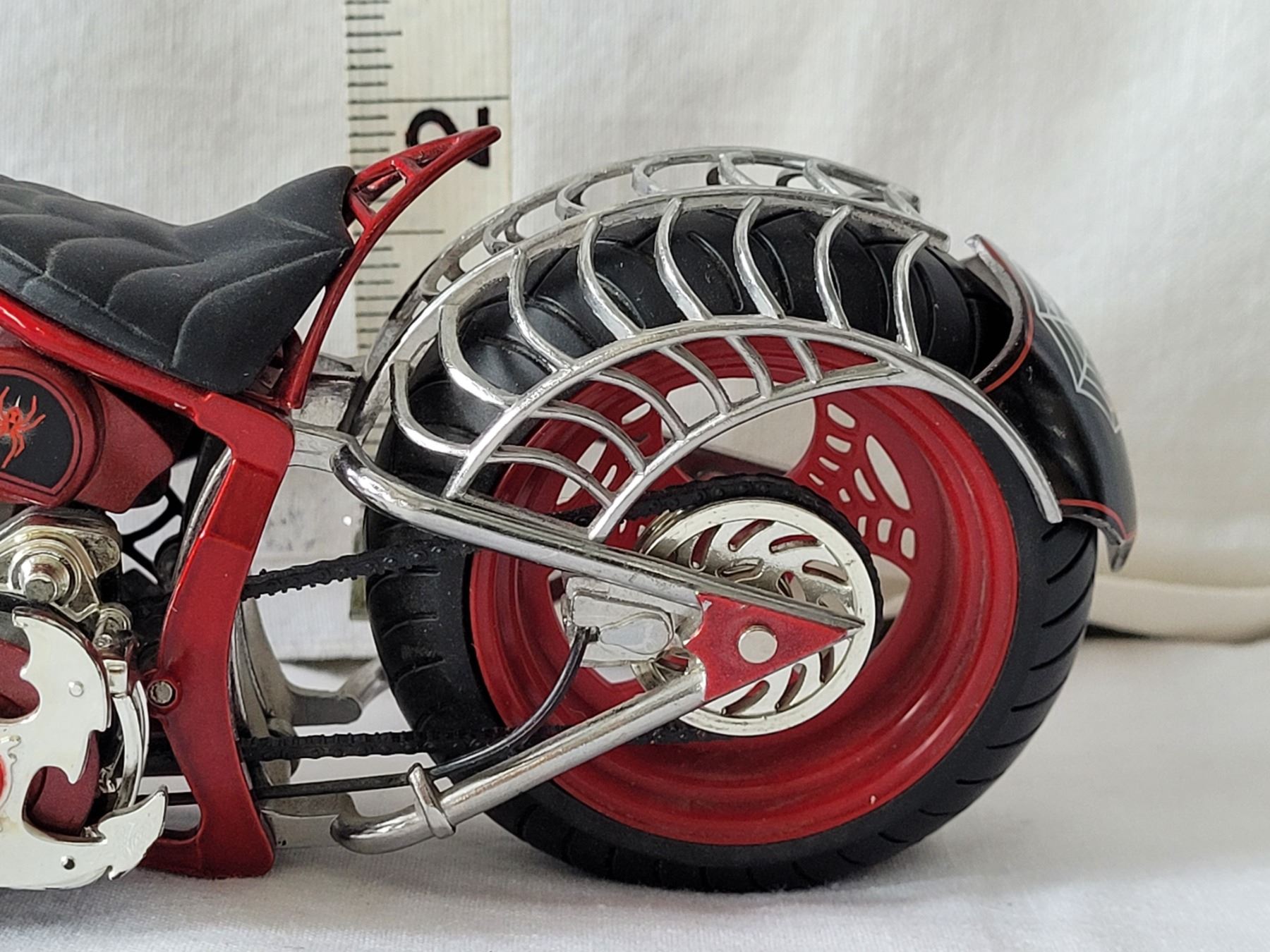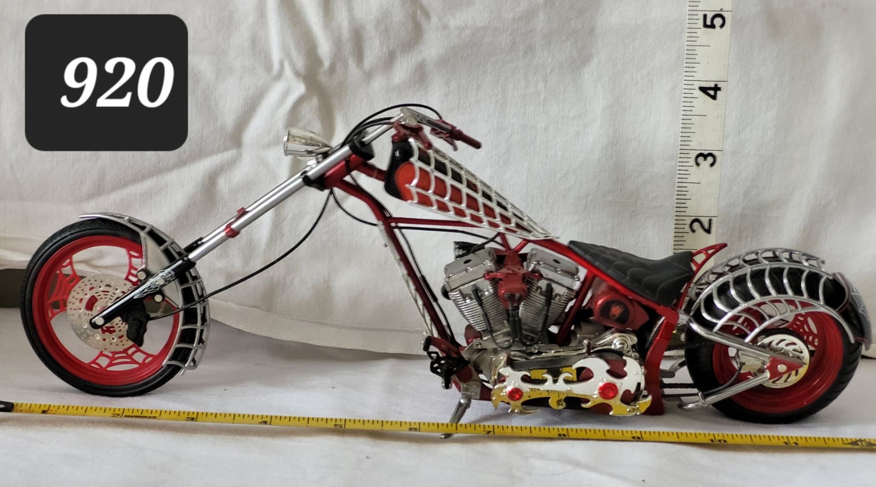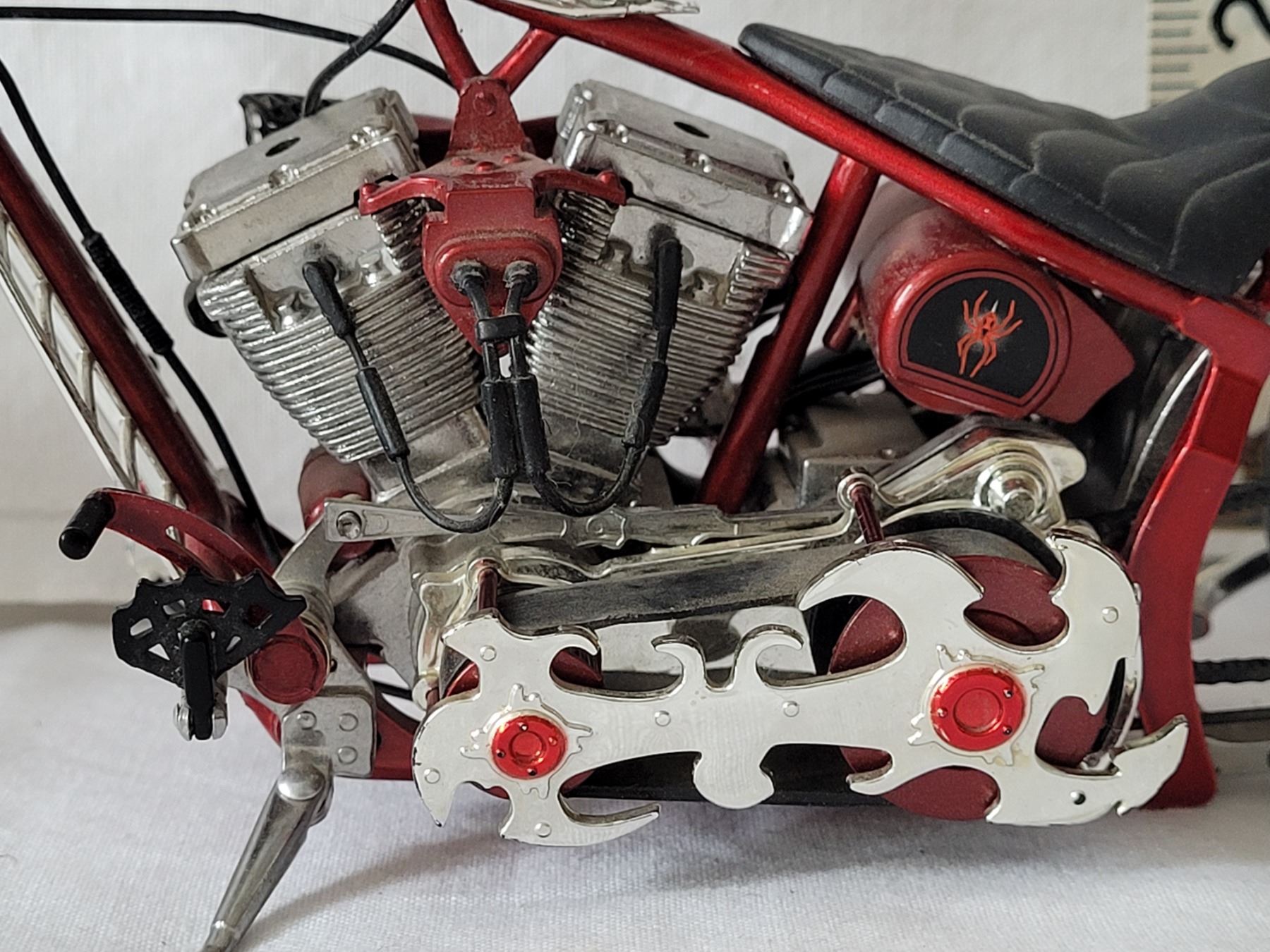 Very nice 1:10 scale orange county chopper bike. “Black Widow” Many moving parts.