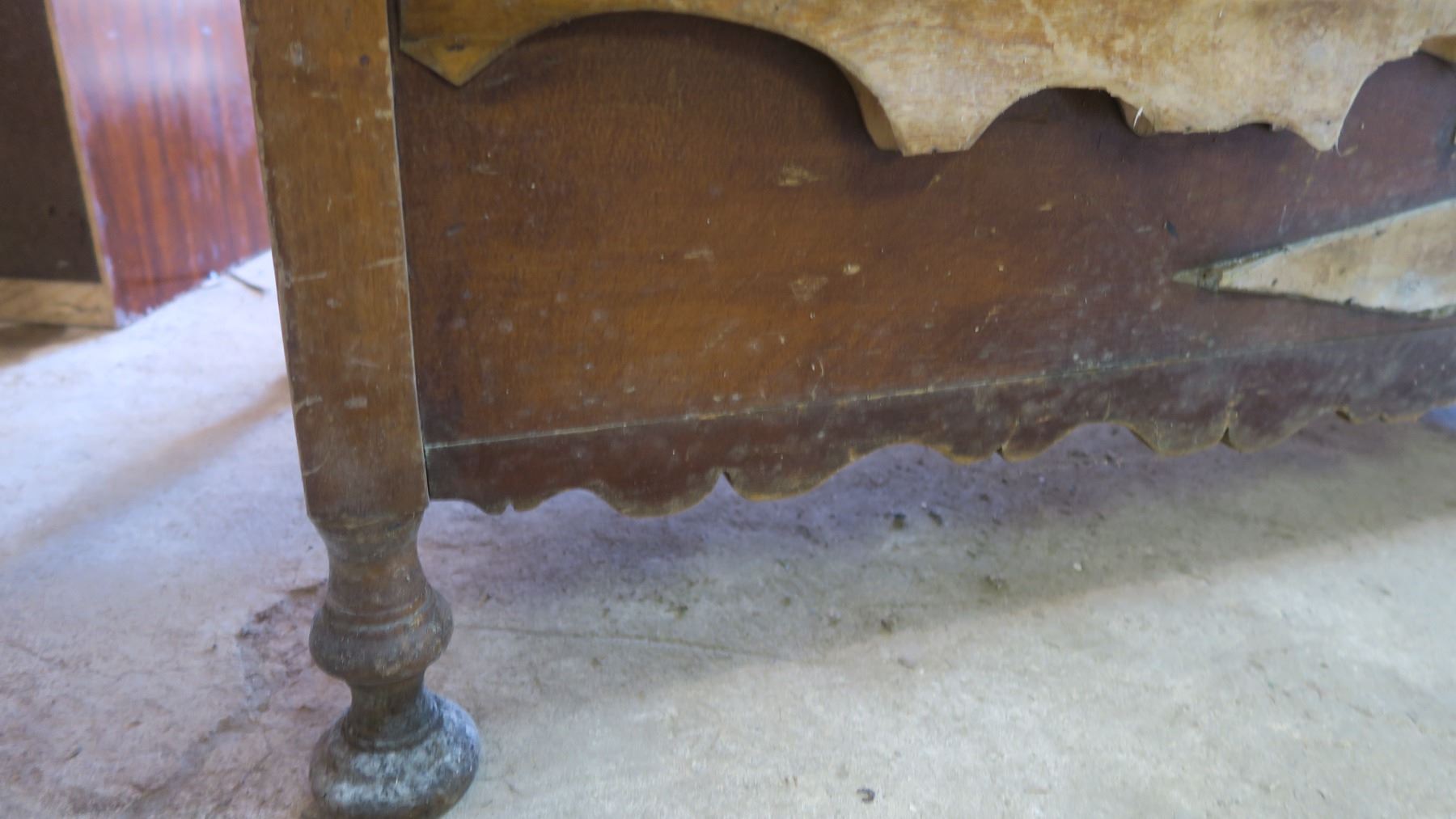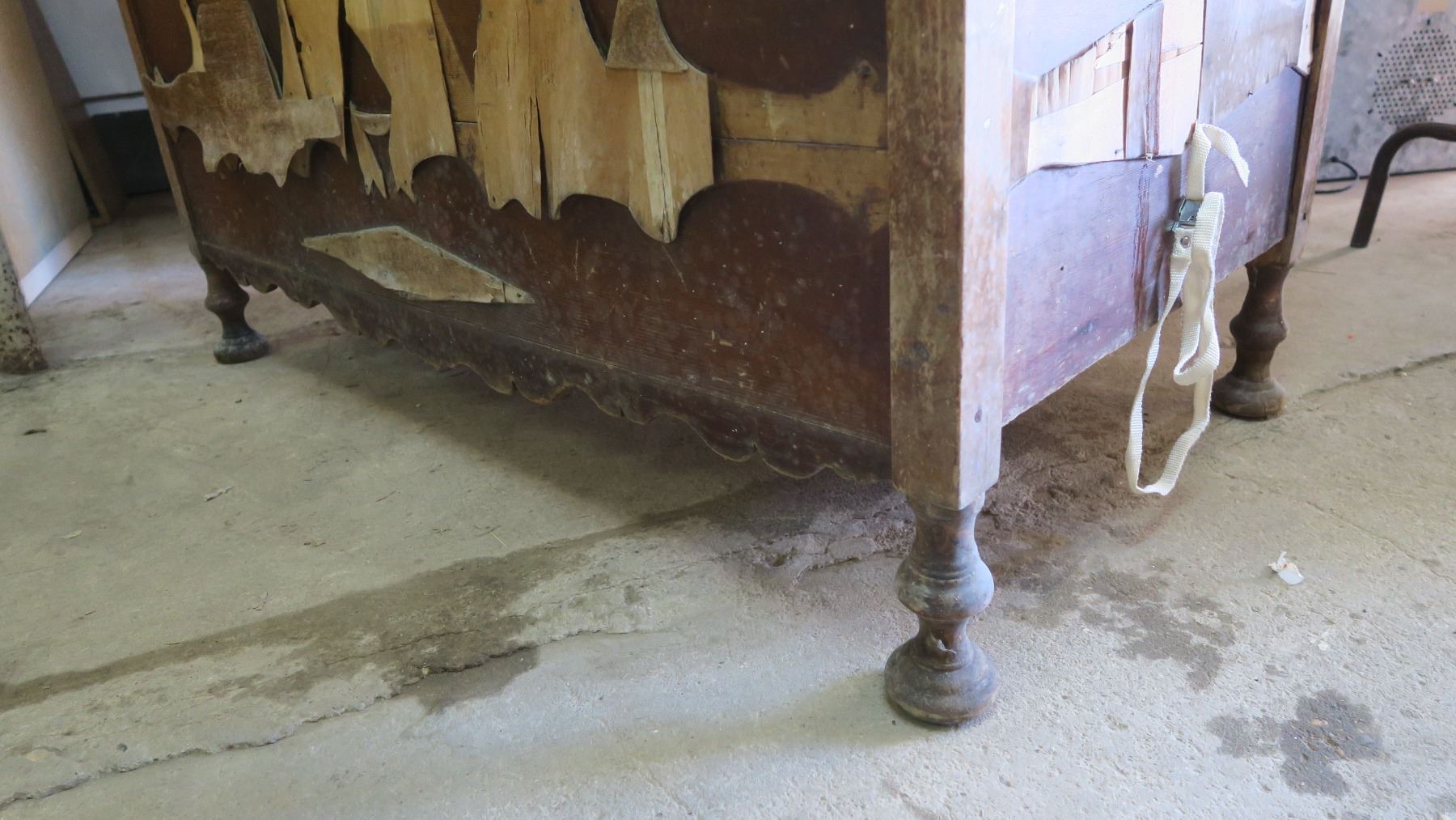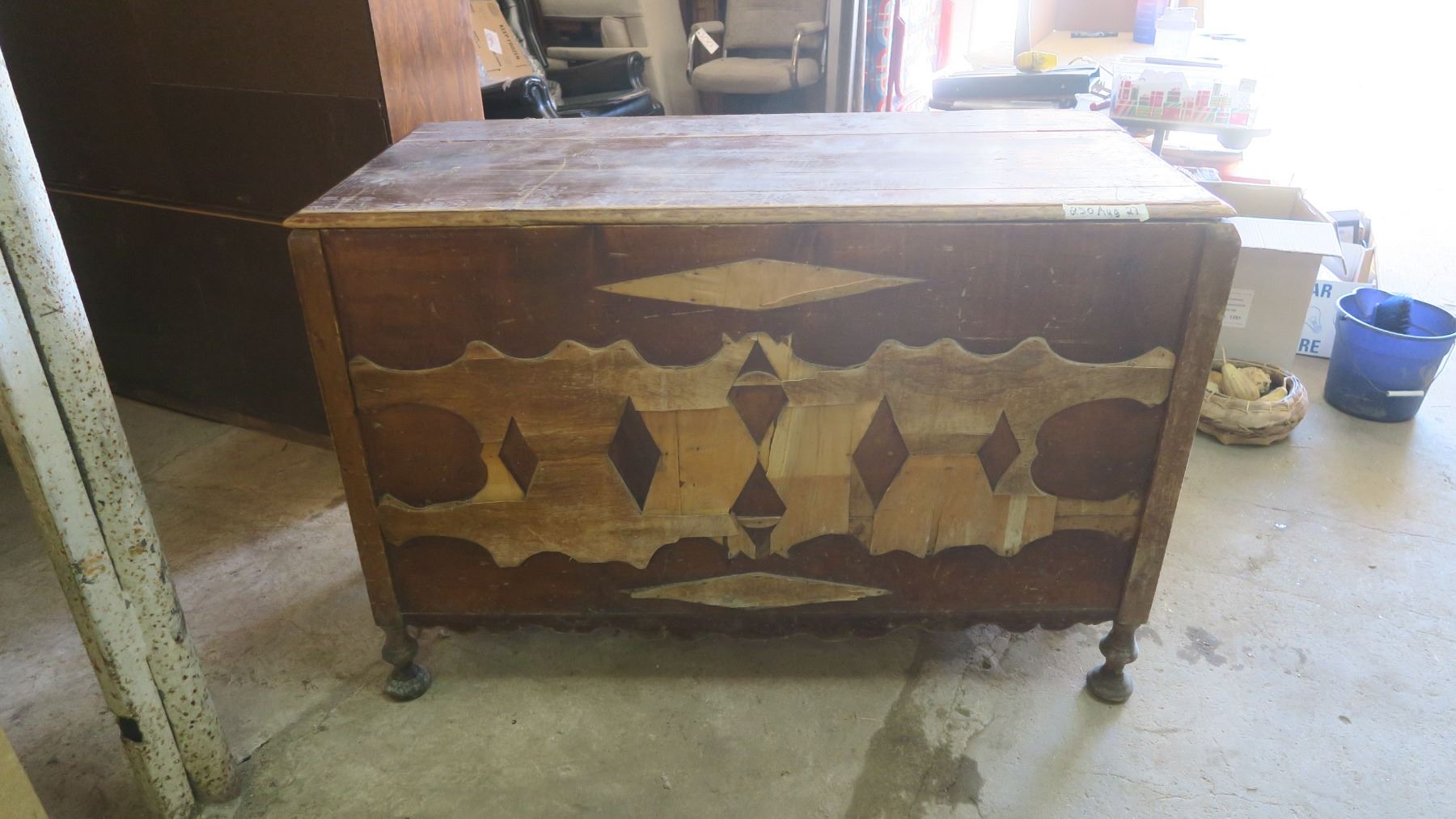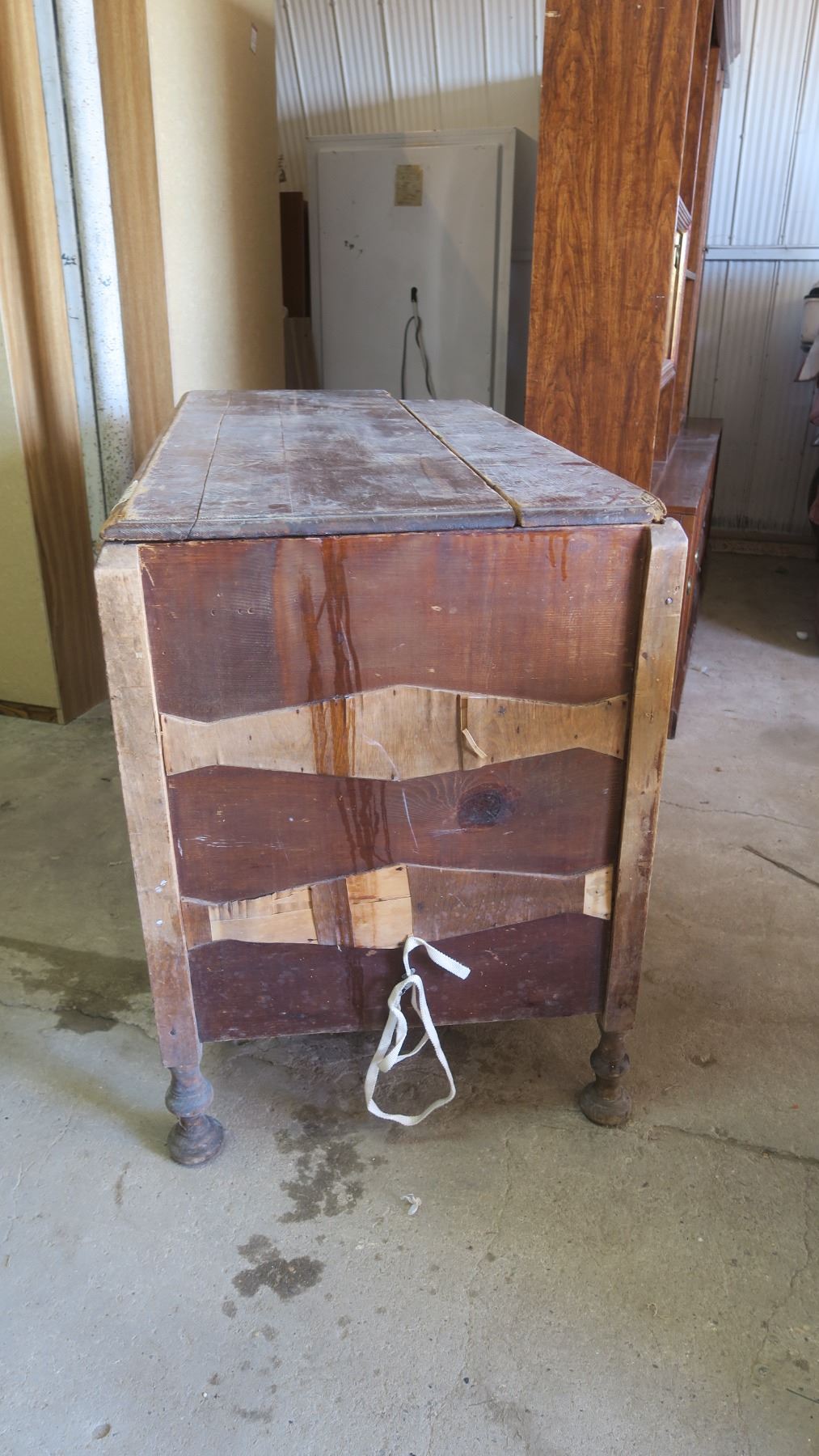 Very old wood cabinet/chest full of piture frames
