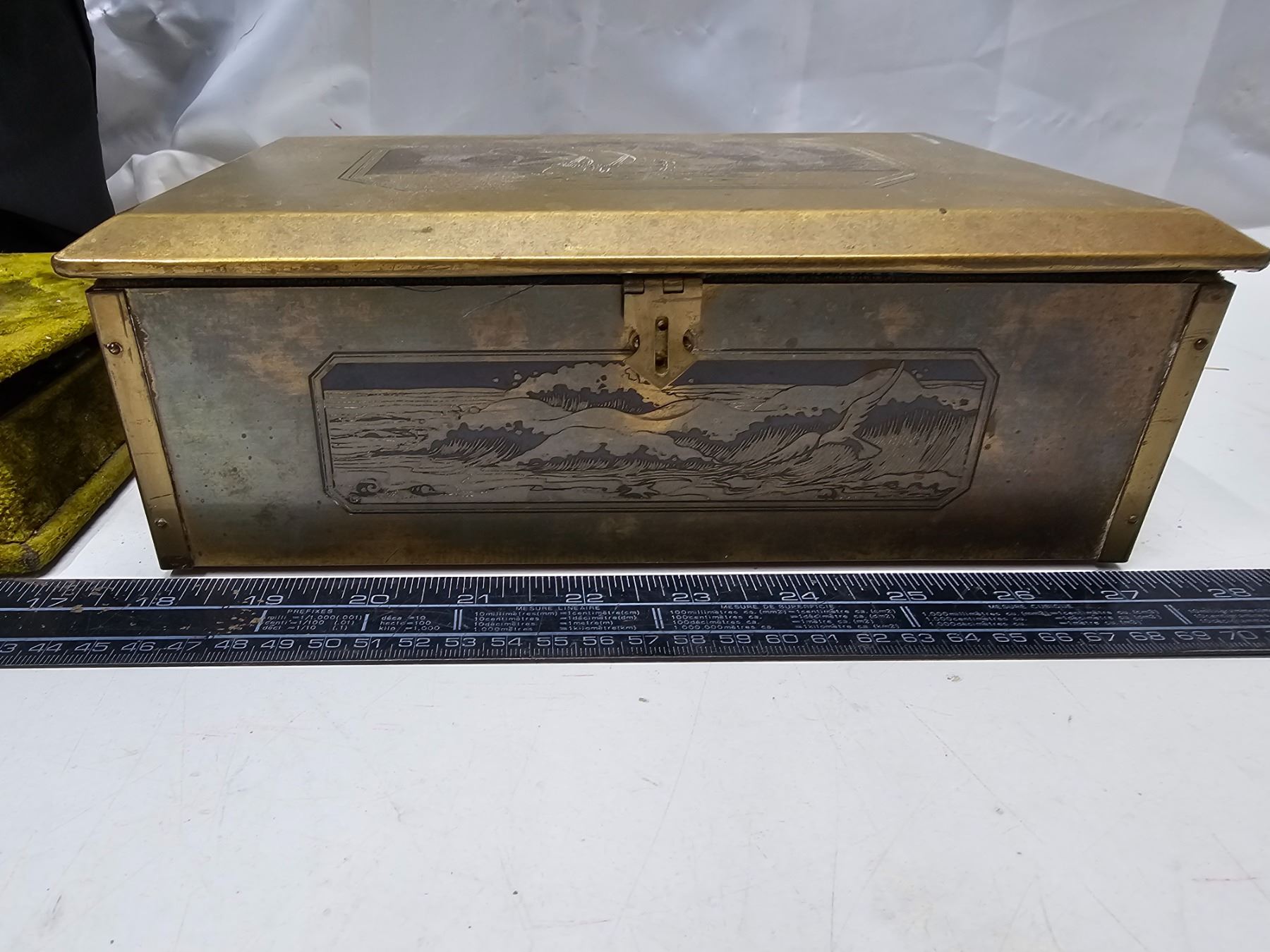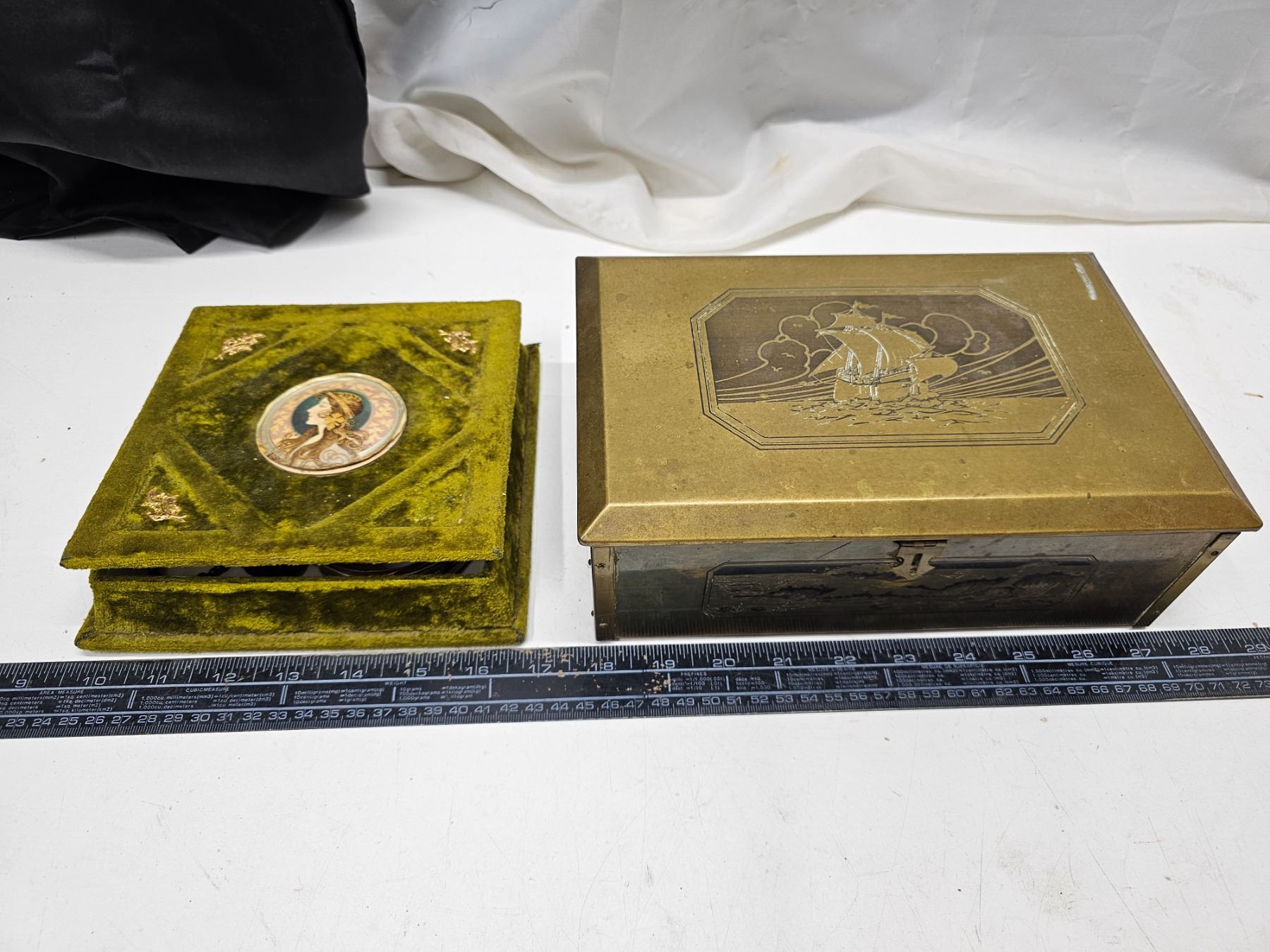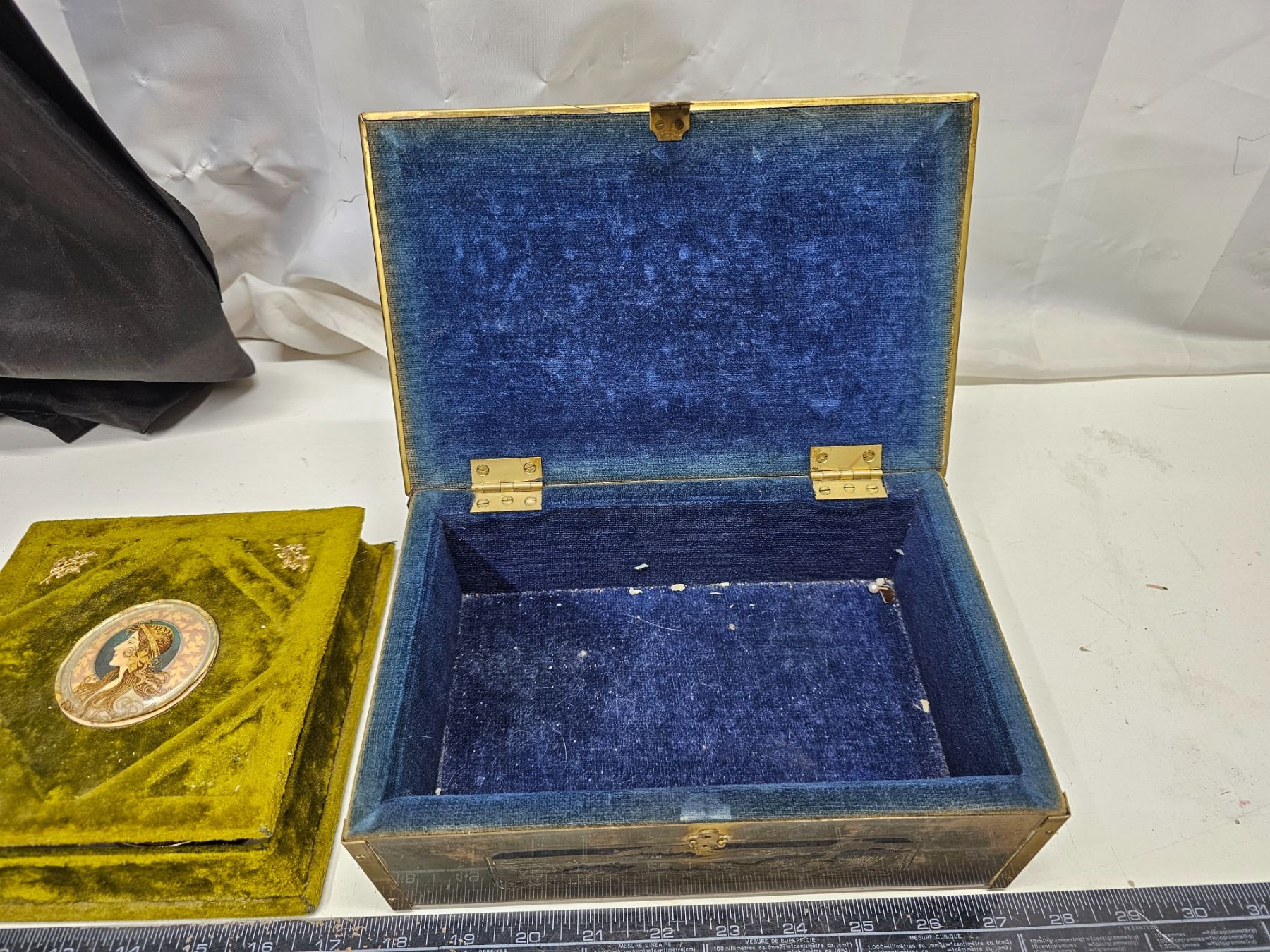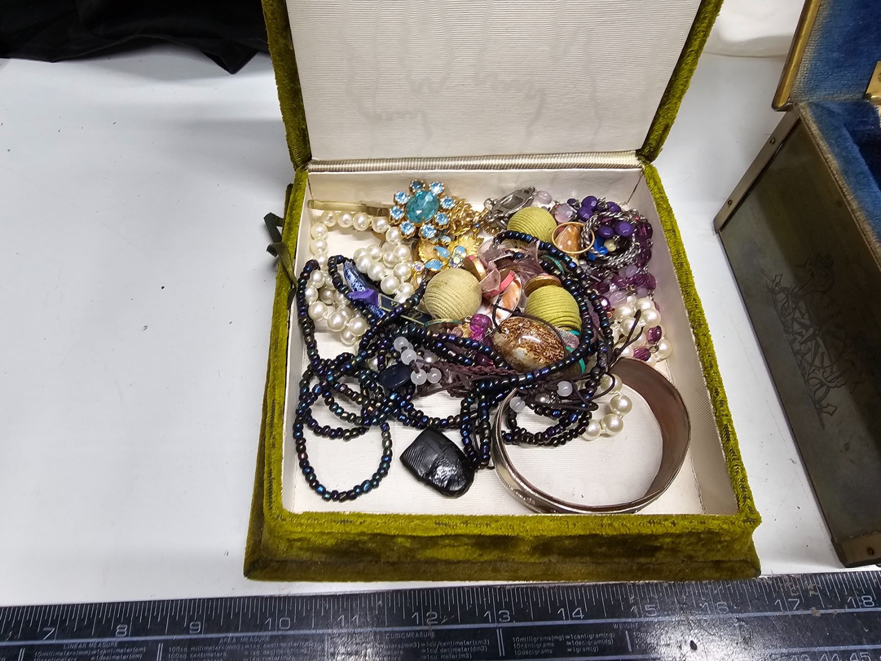 Victorian Jewelry Box Of Costume Jewelry/Brass Jewelry Box