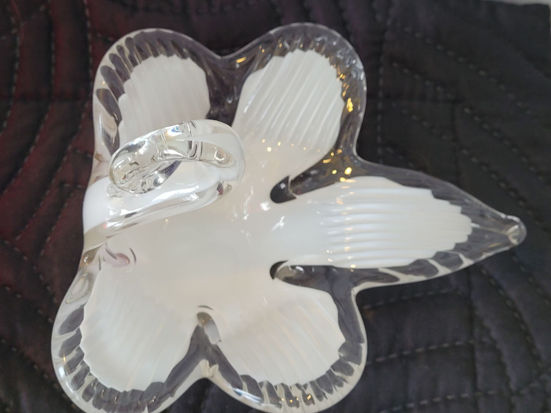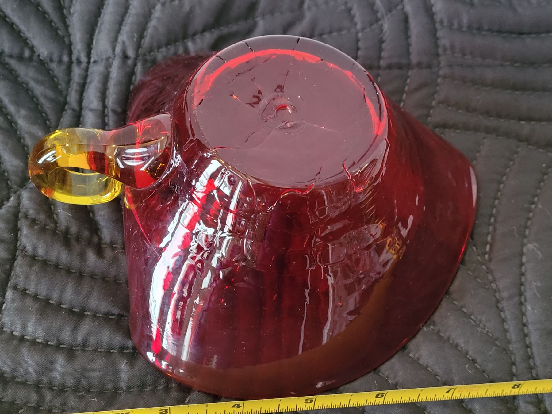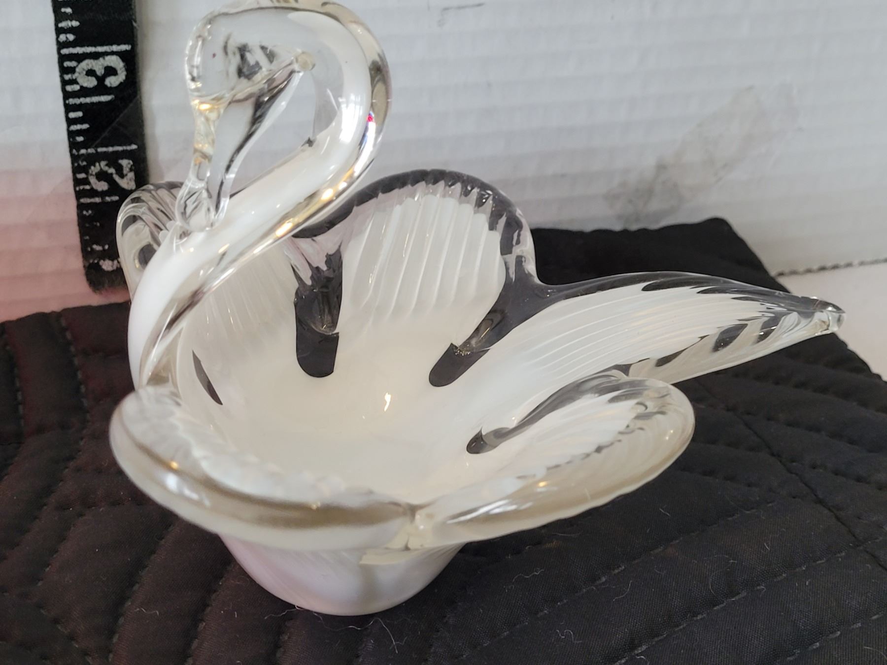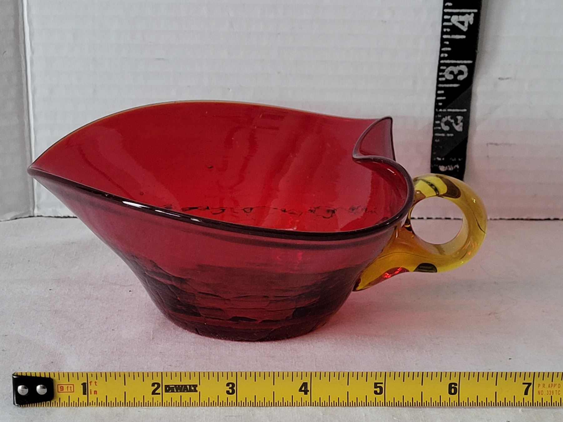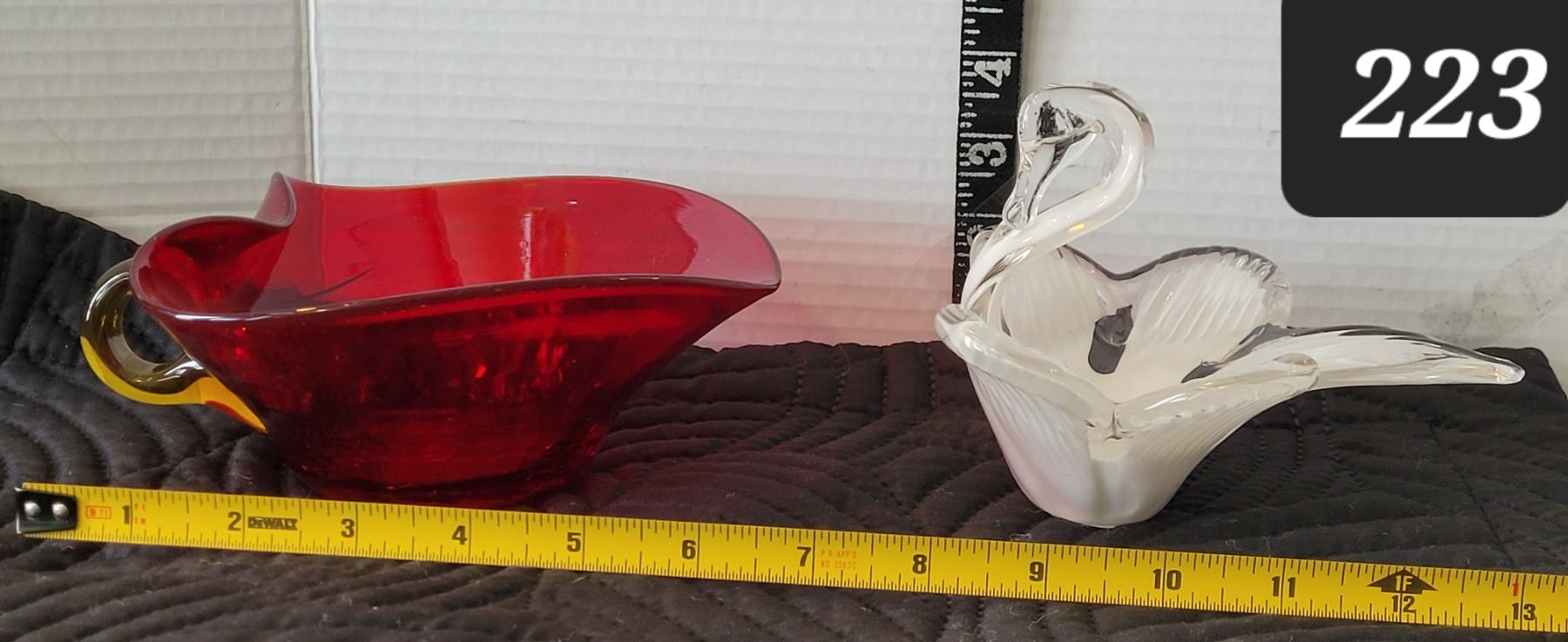 Viking art glass amberina crackle glass 1944 heart shaped candy bowl & Europa swan dish.