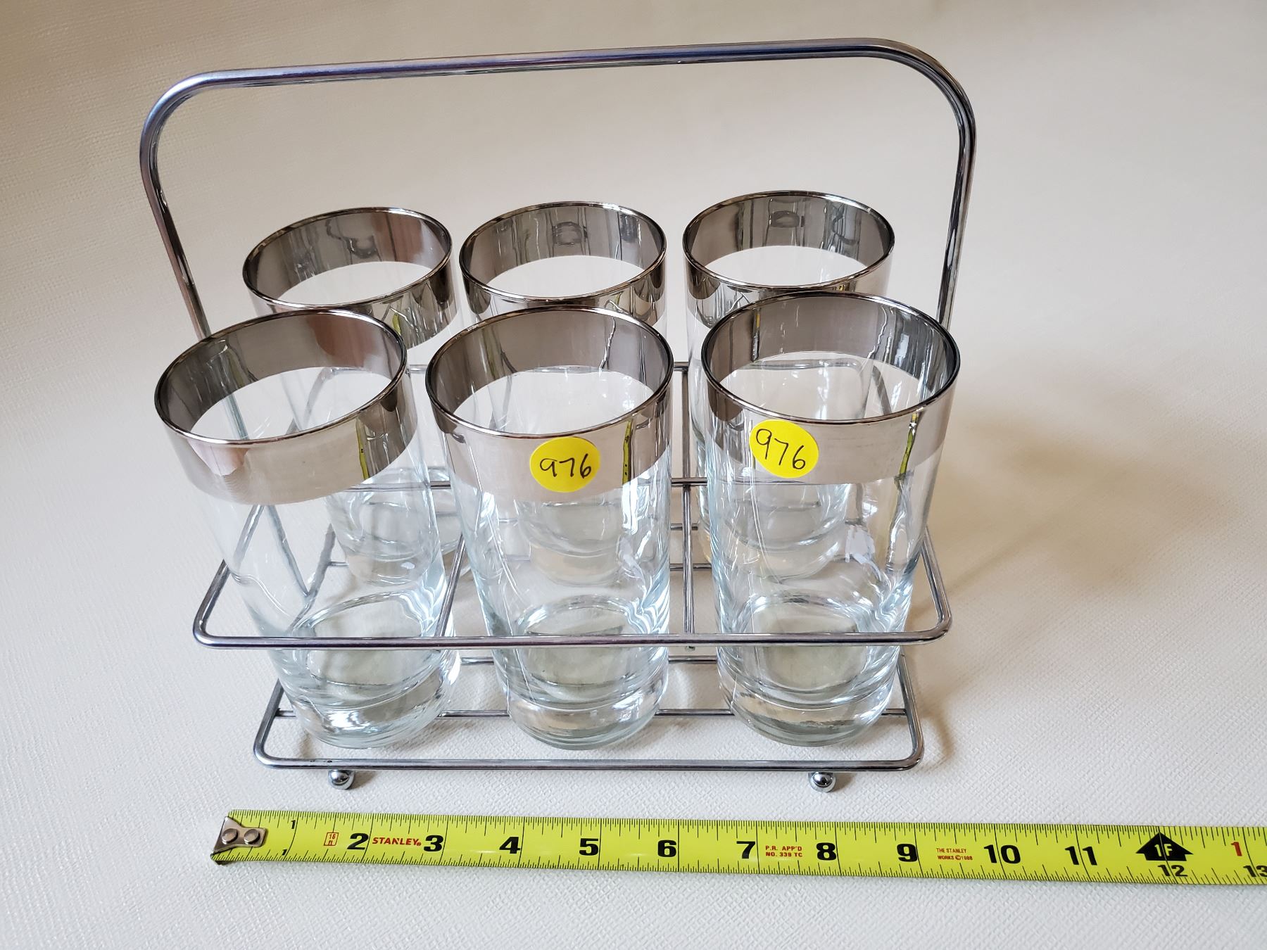 Vintage 10oz Highball Cocktail Glasses Caddy Set