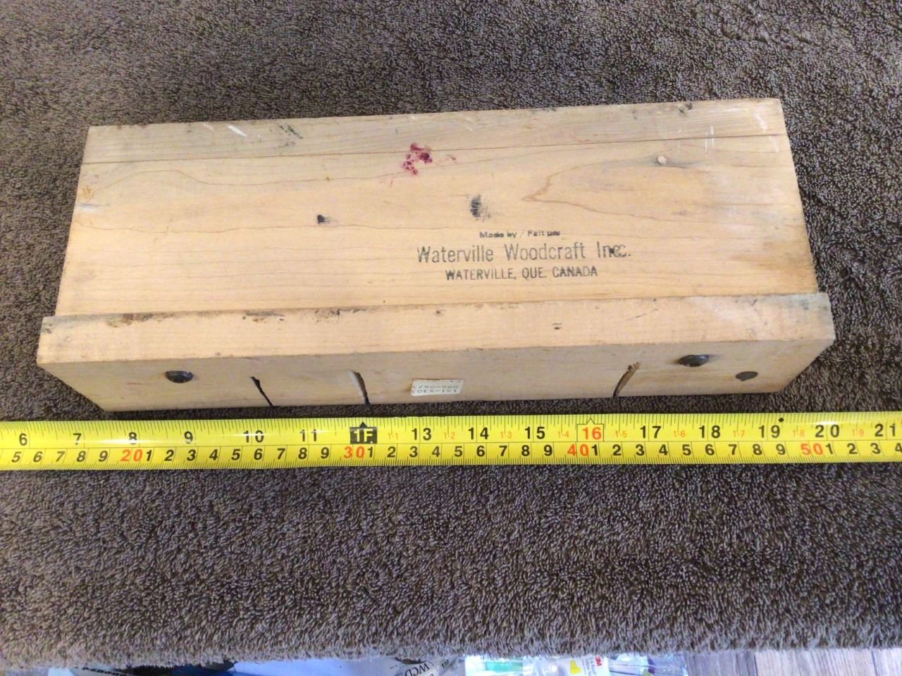Vintage 12" wood mitre box, made by Waterville Woodcraft, Waterville, Que.