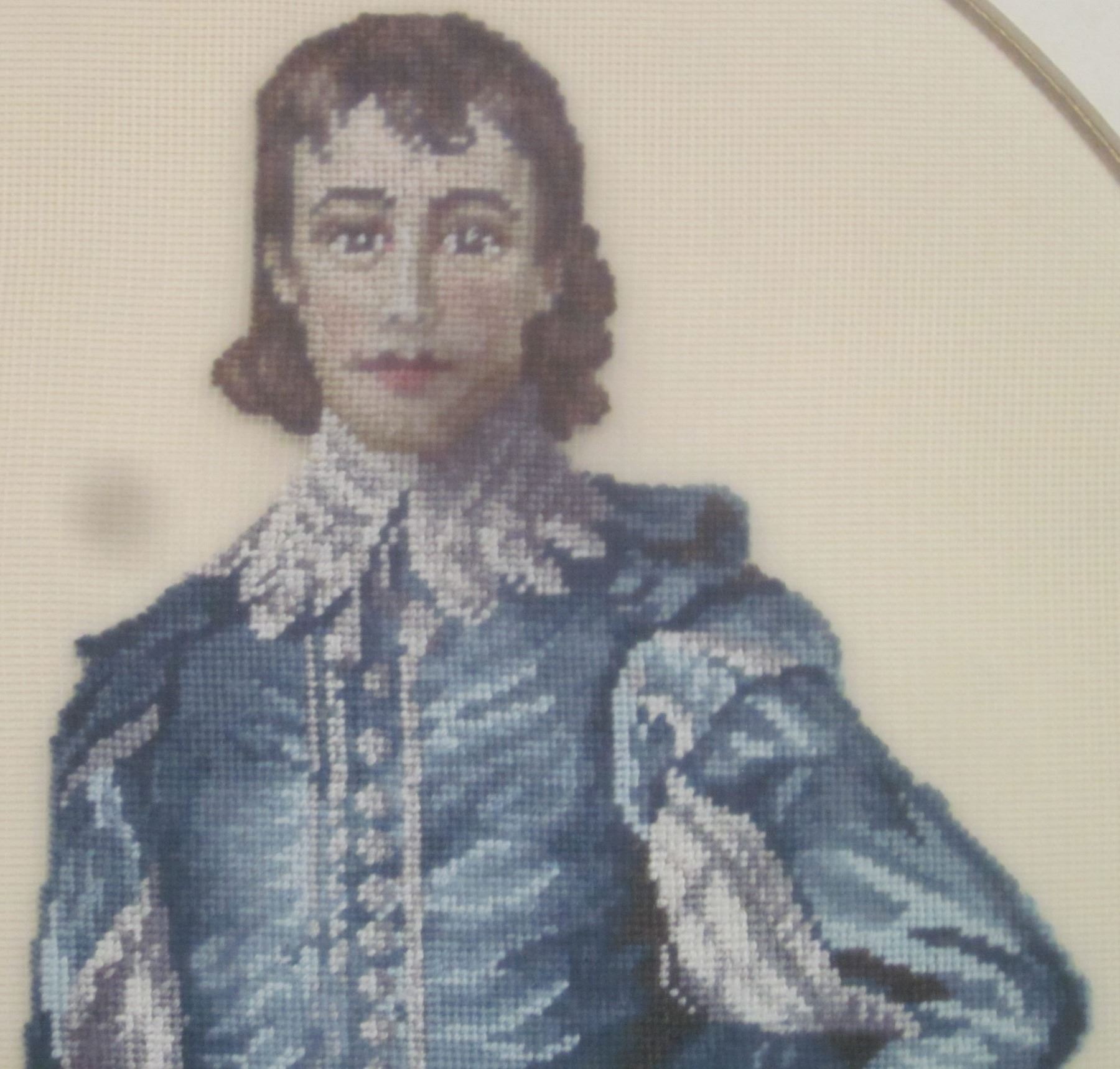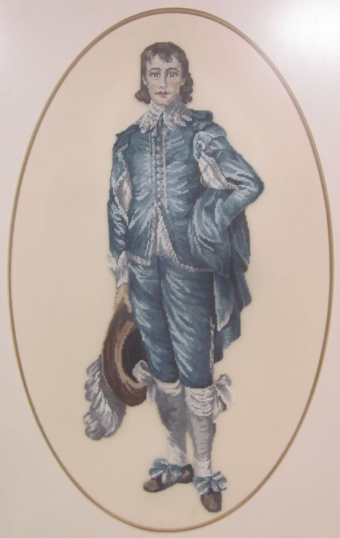 Vintage 18" x 26" Blue Boy Needle Point - Framed