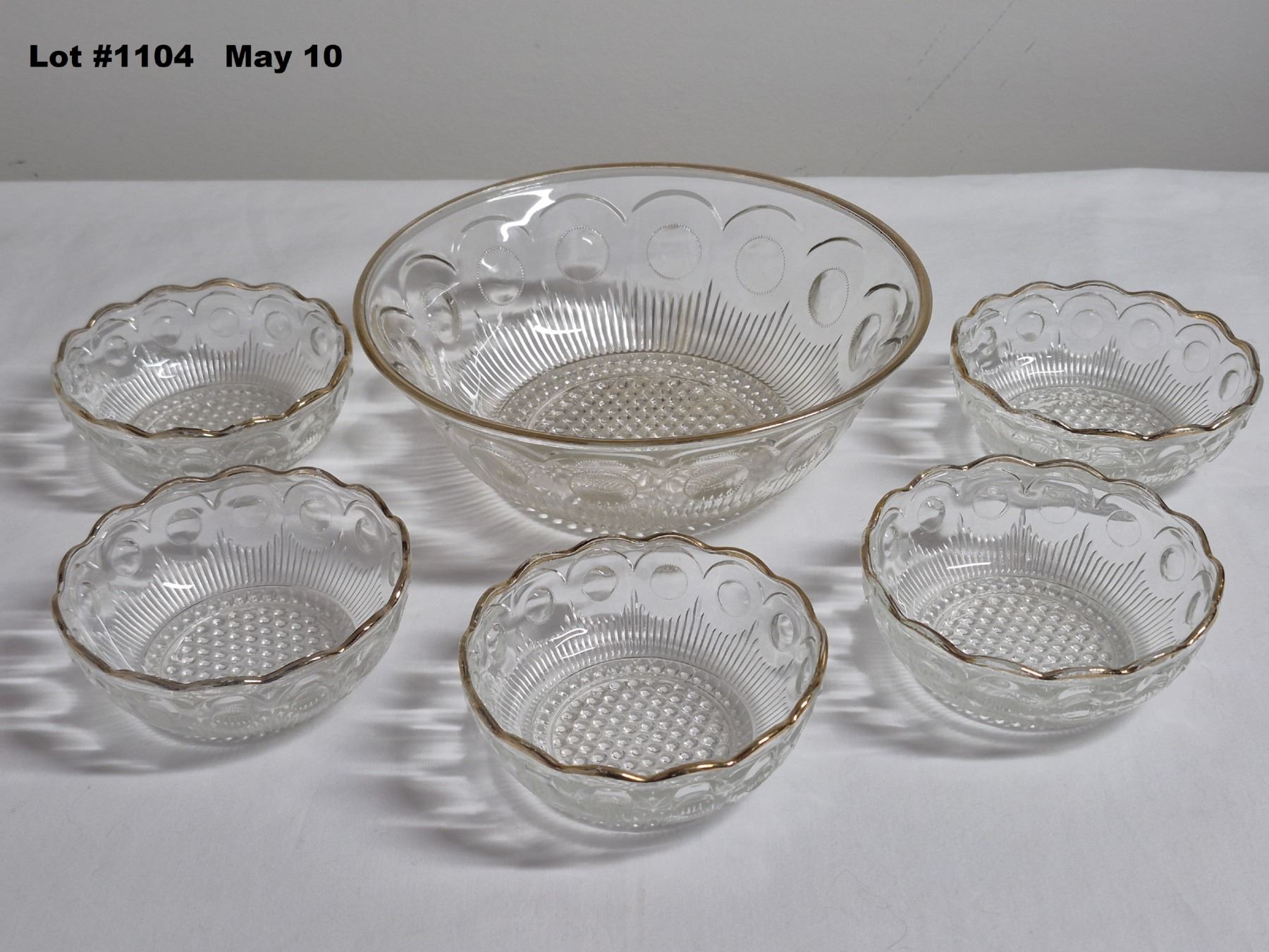 Vintage (1949-1969) Bartlett and Collins St. Genevieve Manhattan Pattern glass bowl set. Comes with (1) serving bowl 8" and (5) small bowls 4"