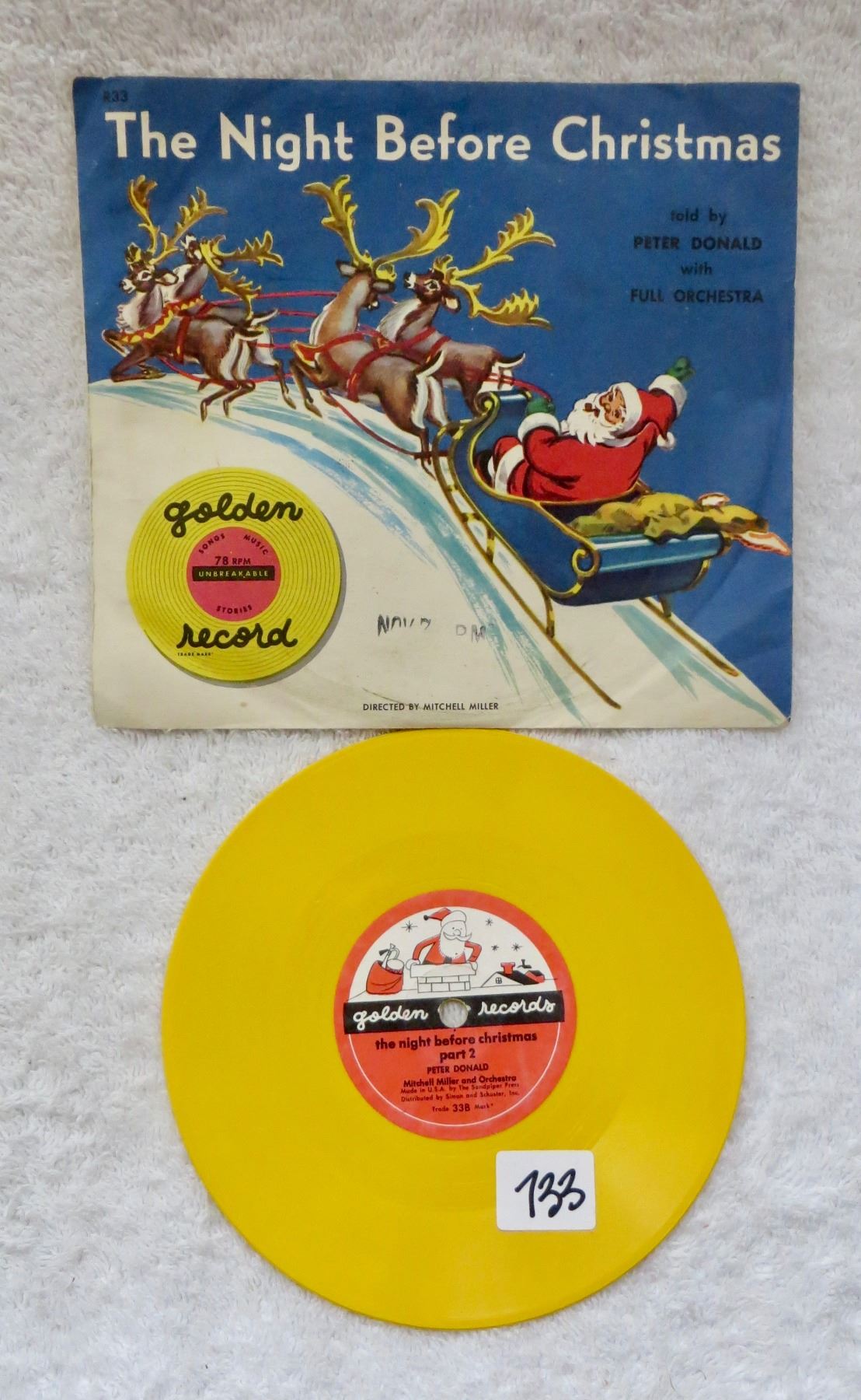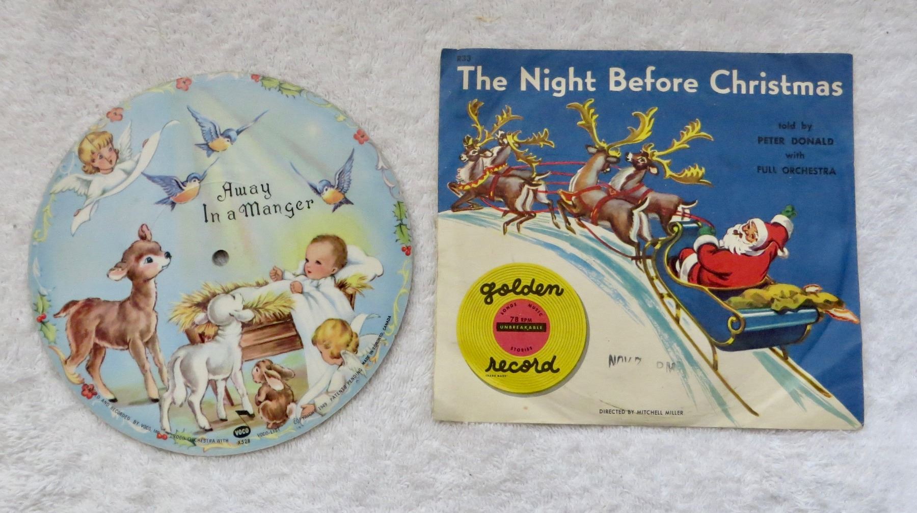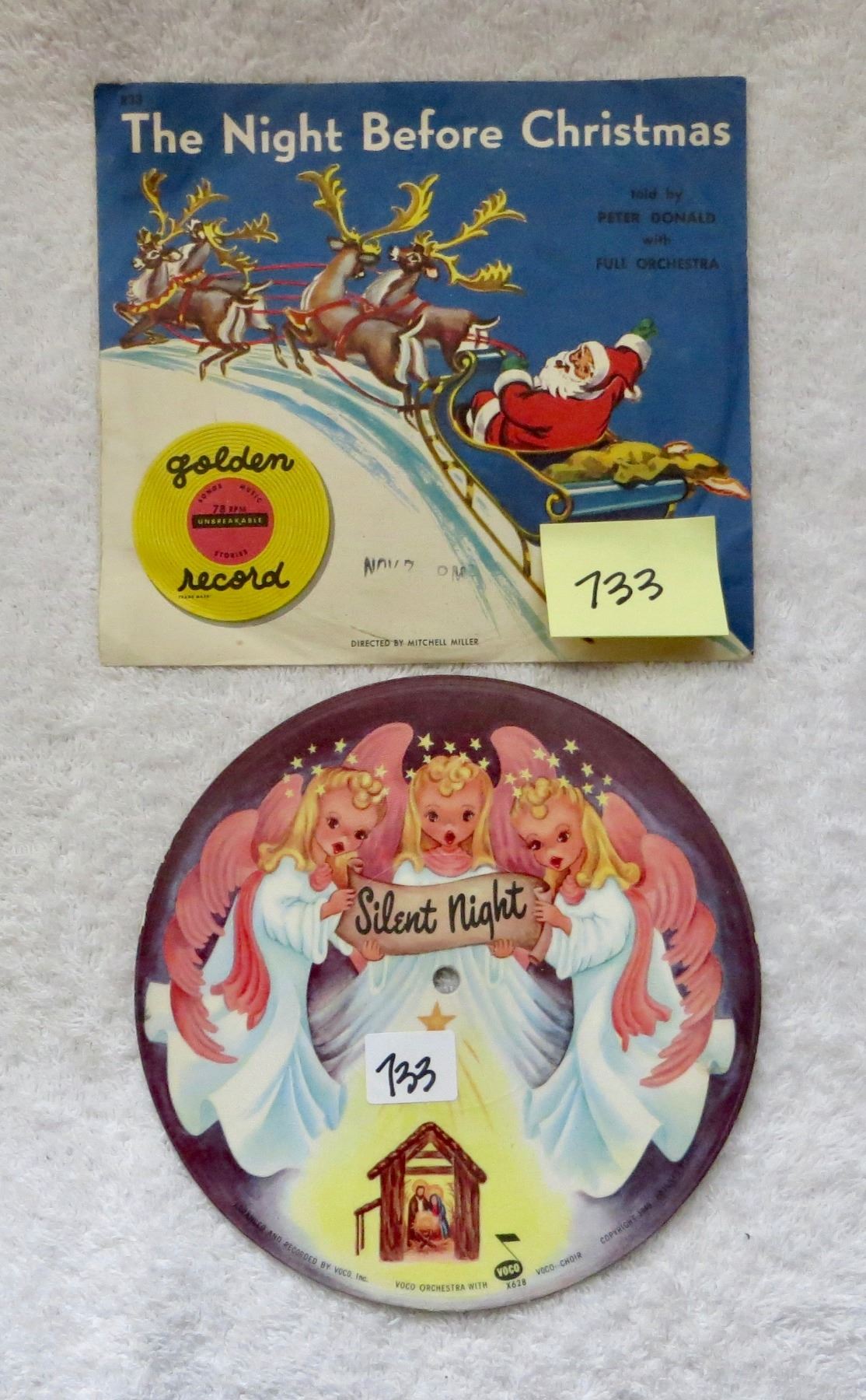 Vintage 1949 Silent Night 45RPM record and The Night Before Christmas - Golden Record