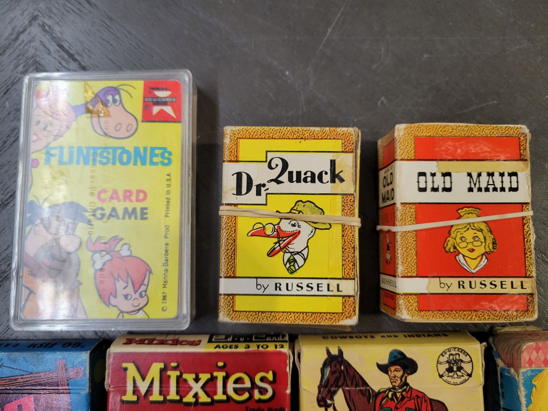 Vintage 1950's Card Games - Go Fish, Old Maid, Mixies, Dr. Quack, Flintstones, Cowboys/Indians