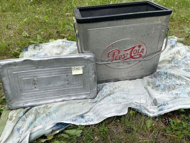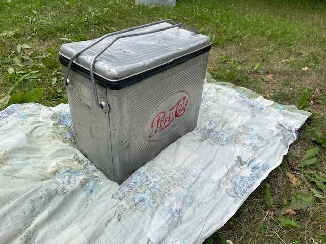 Vintage 1950's Pepsi Cola aluminum cooler complete with lid.