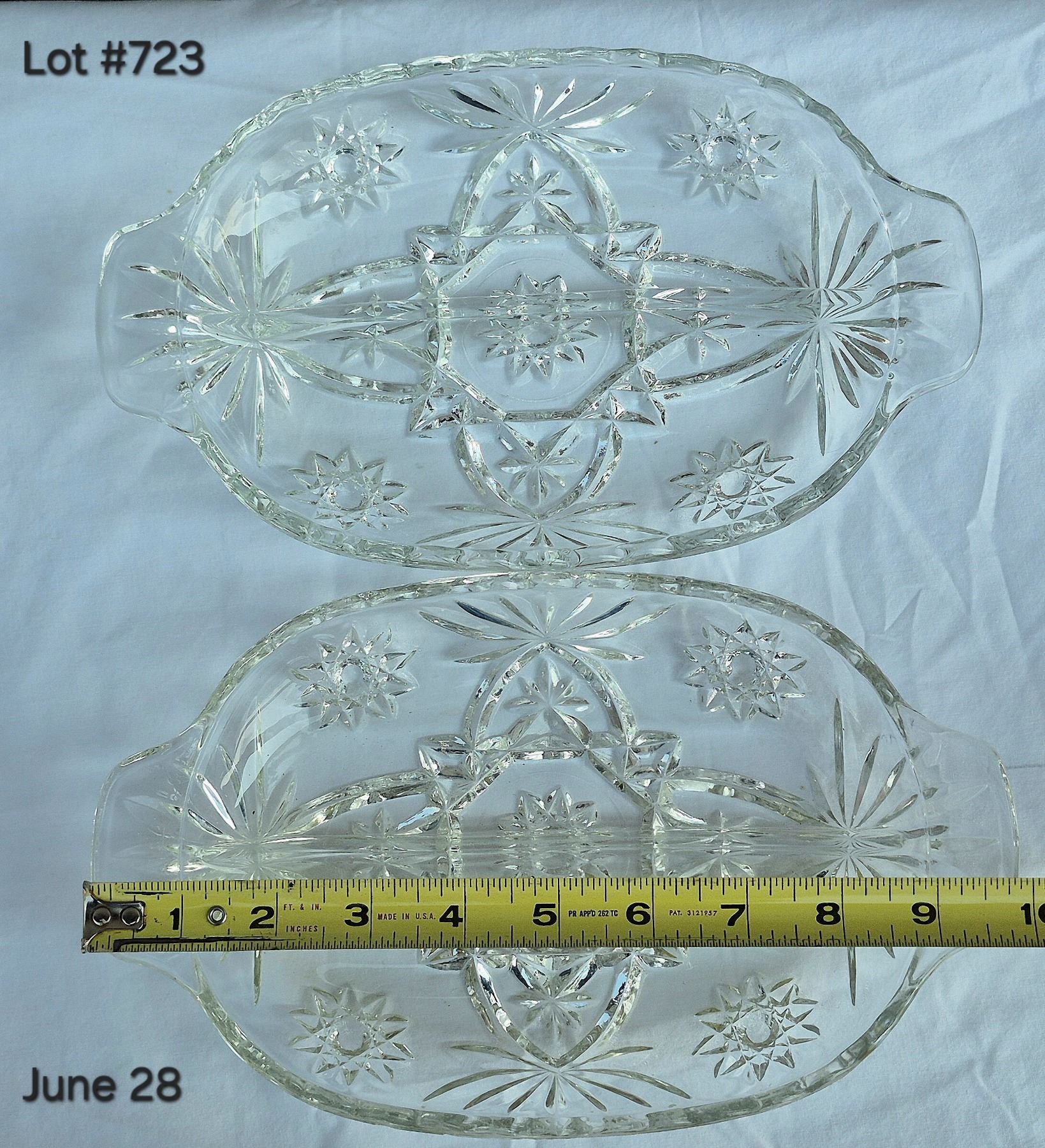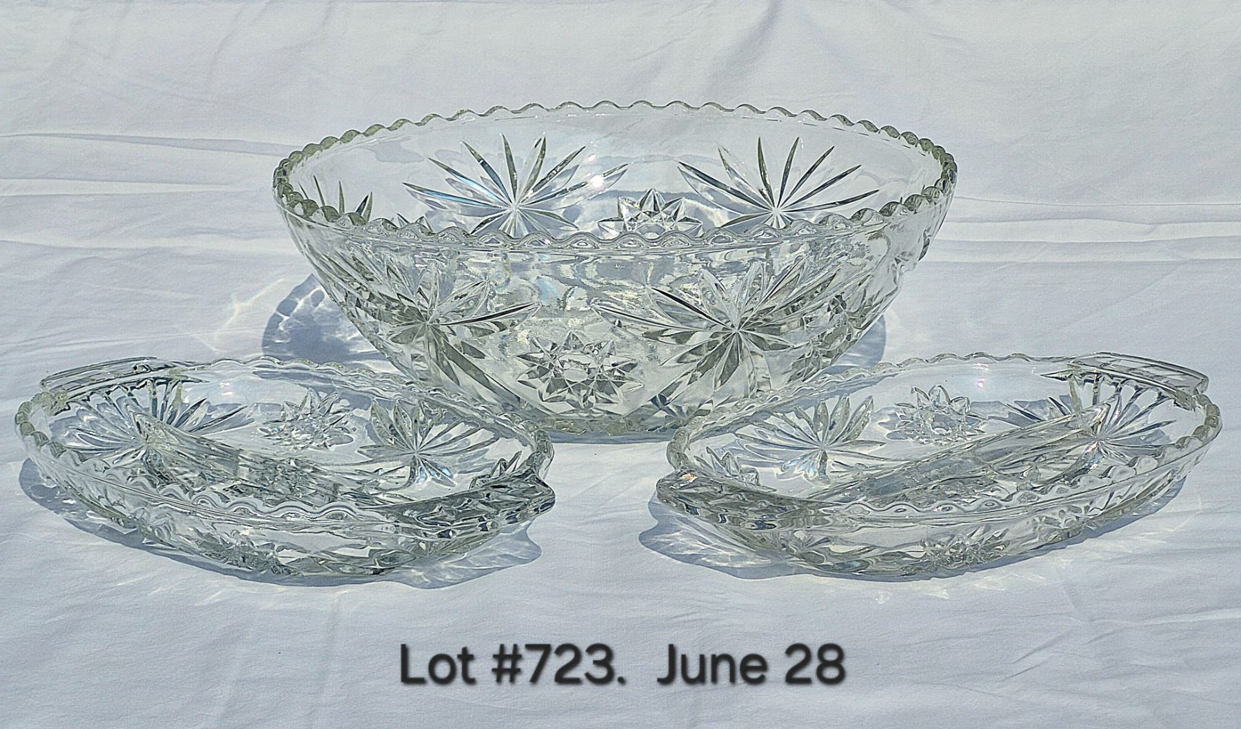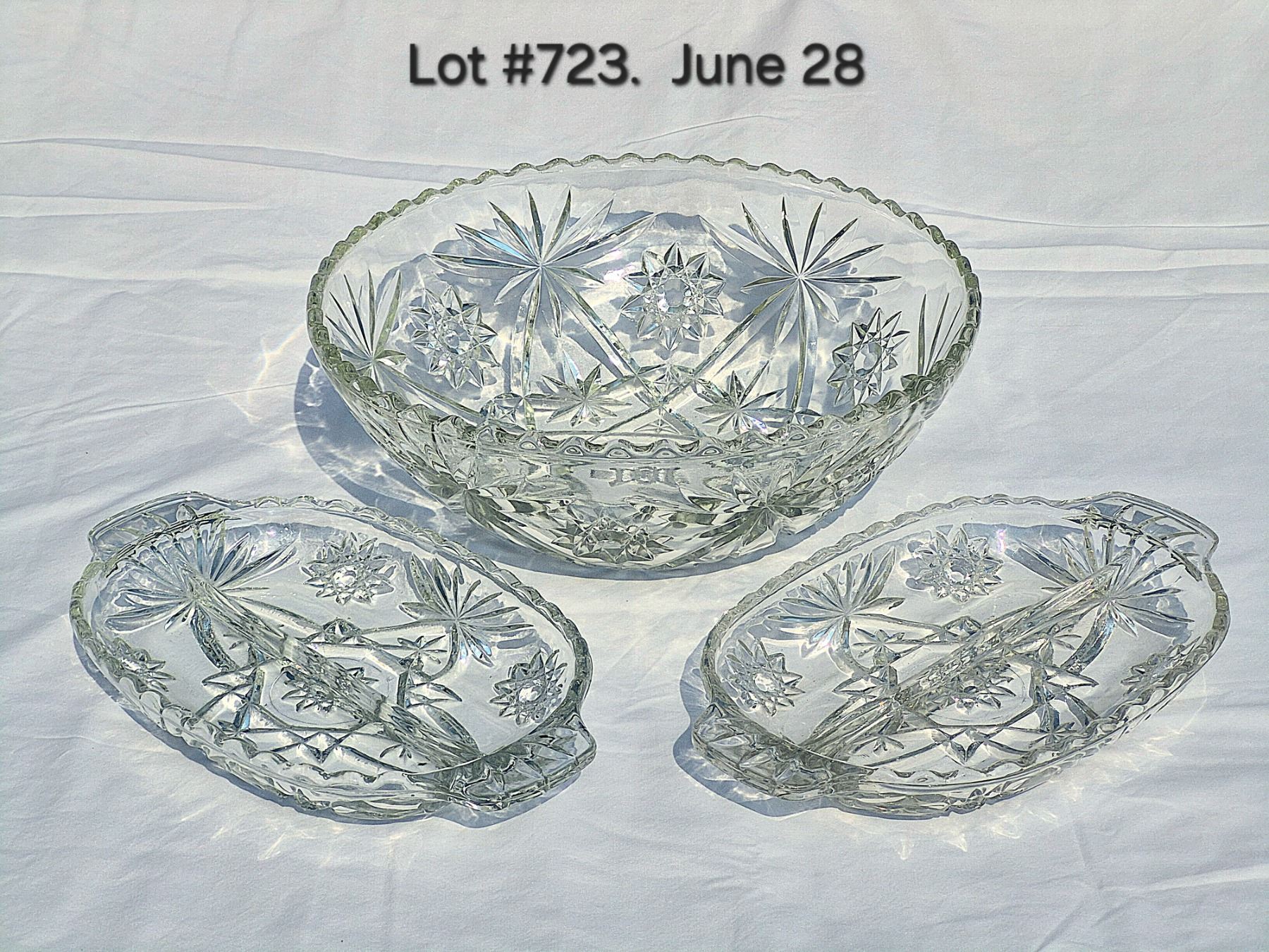Vintage 1950's "Star of David" Anchor Hocking large glass bowl 10 1/2" and (2) divided serving dishes.