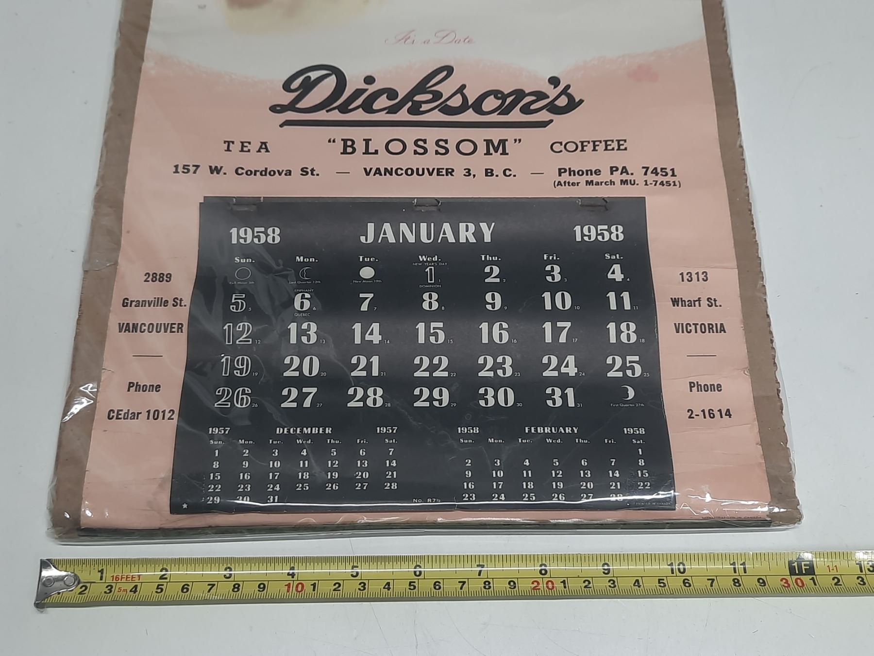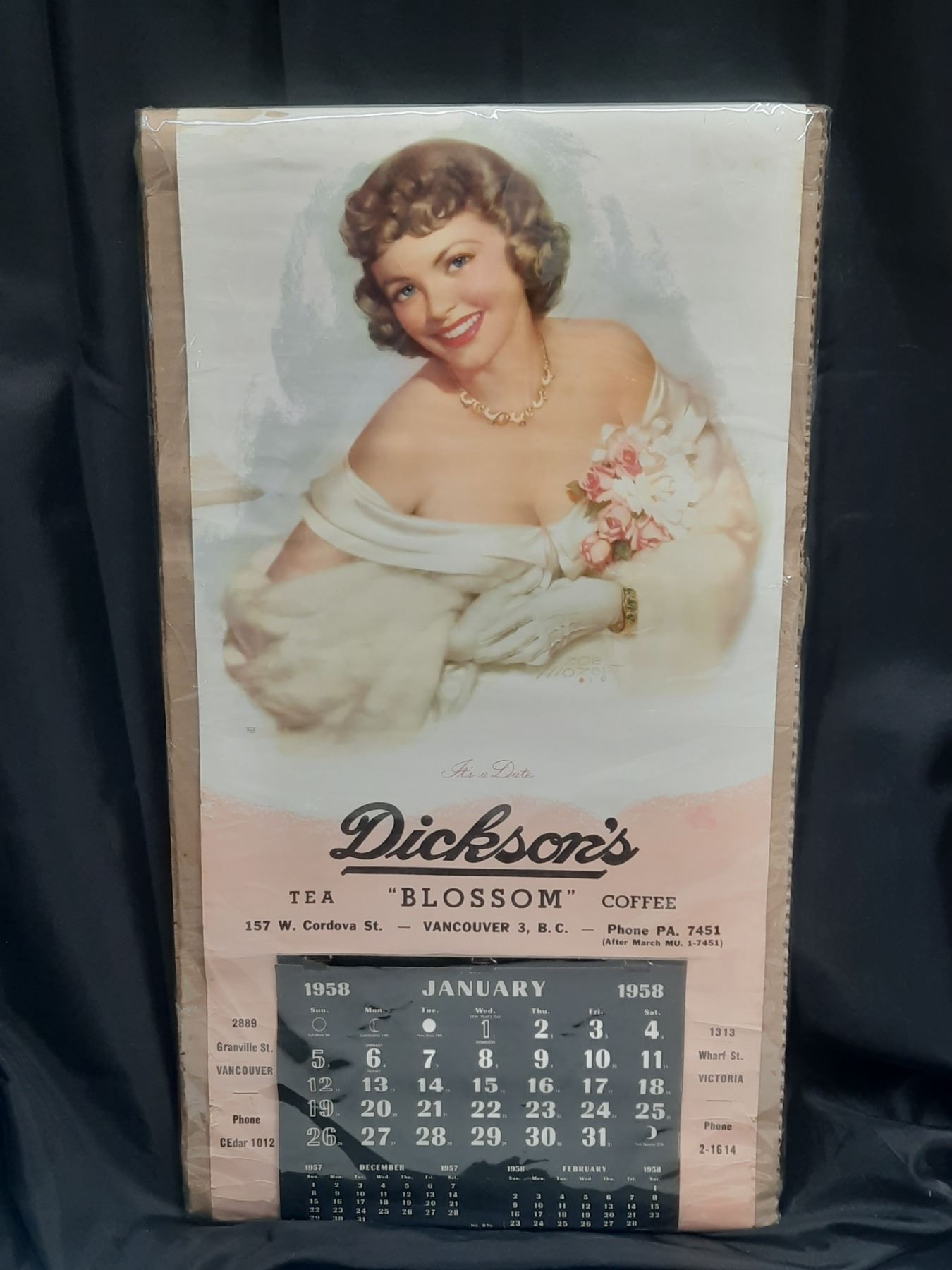 Vintage 1958 calendar featuring artwork by pin-up artist Zoë Mozert. (Height - 22")
