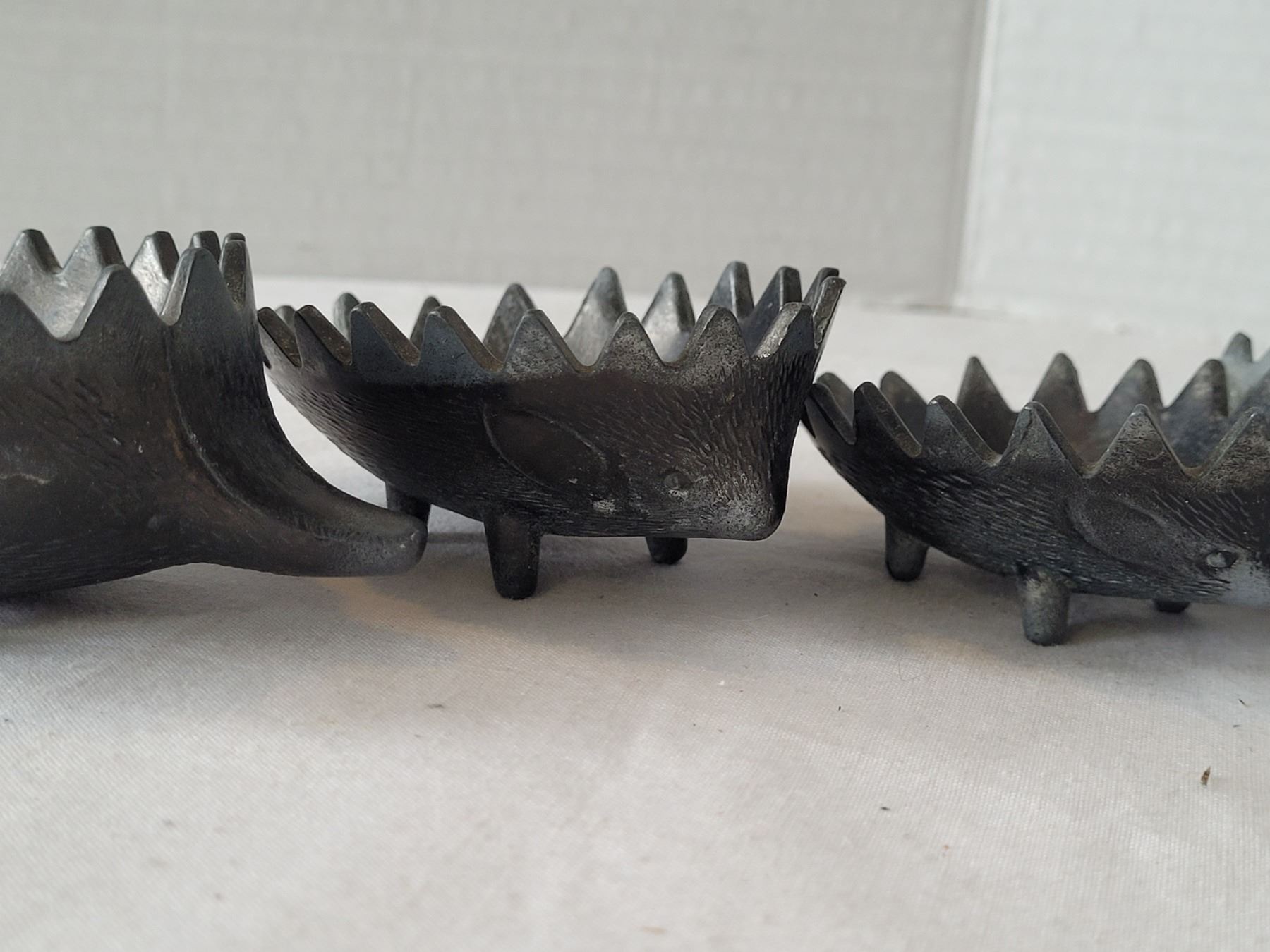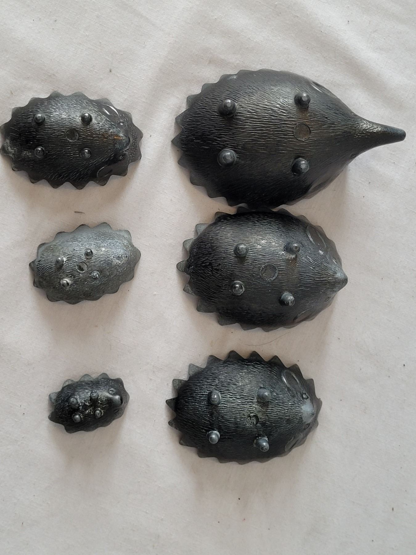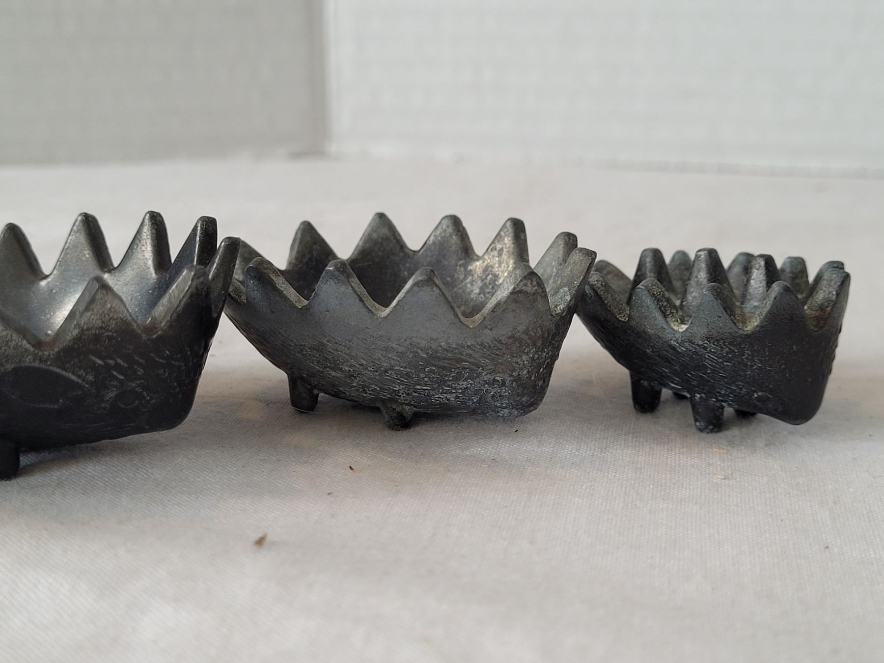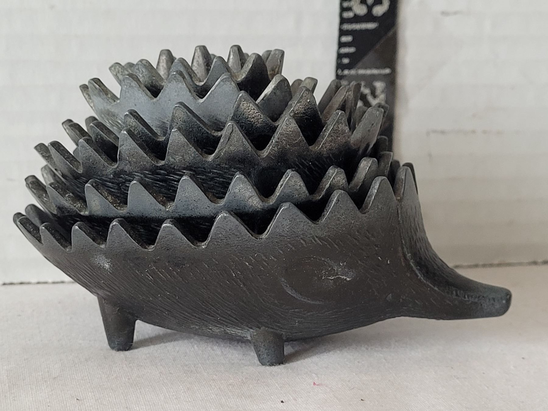 Vintage 1960-'70's Walter Bosse style, metal nesting hedgehog ashtray set of 6. USSR