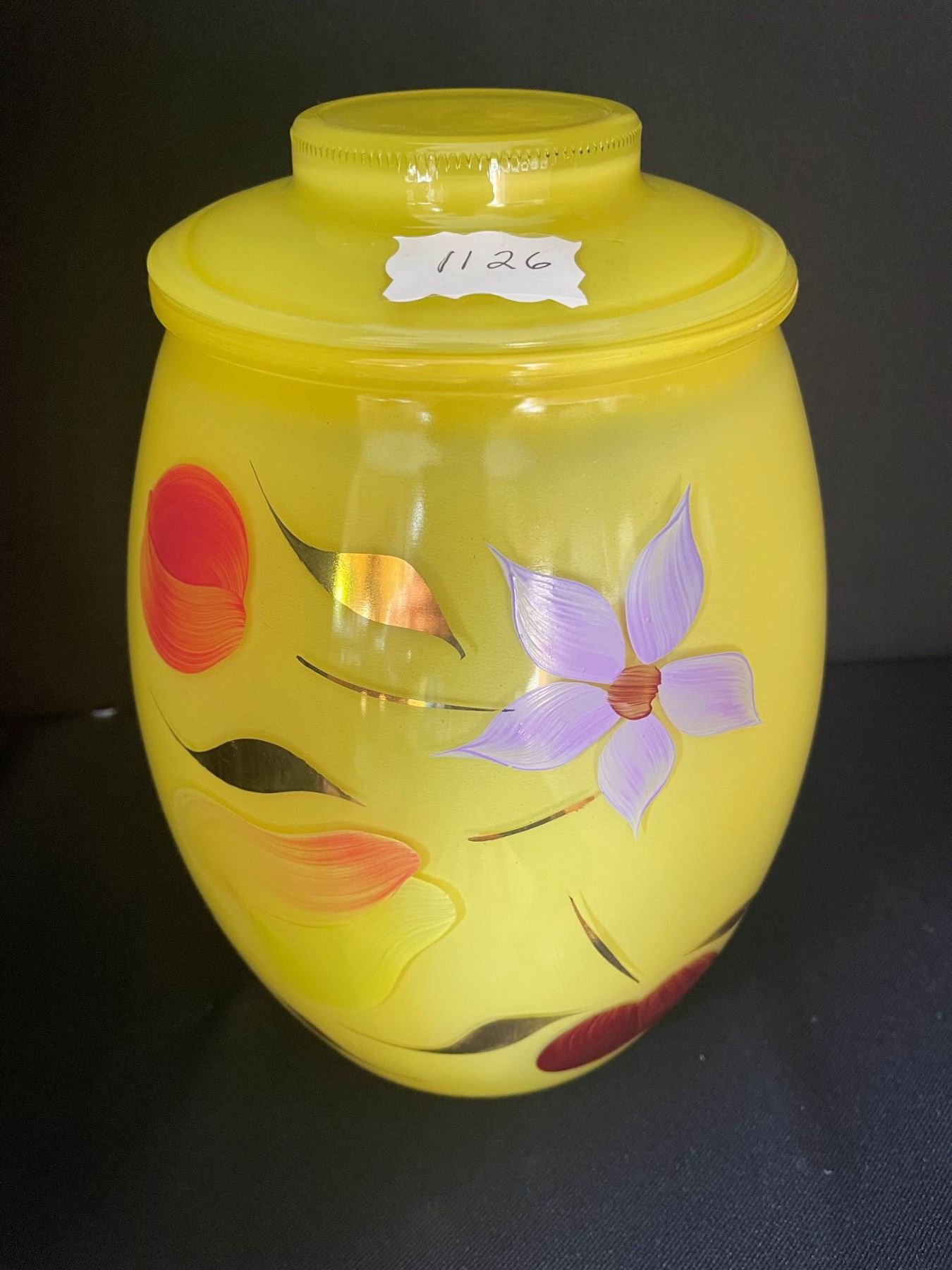 Vintage 1960's " Bartlett Collins" Cookie Jar. Hand painted. 9 1/2" high including lid - 5 1/4" across opening.