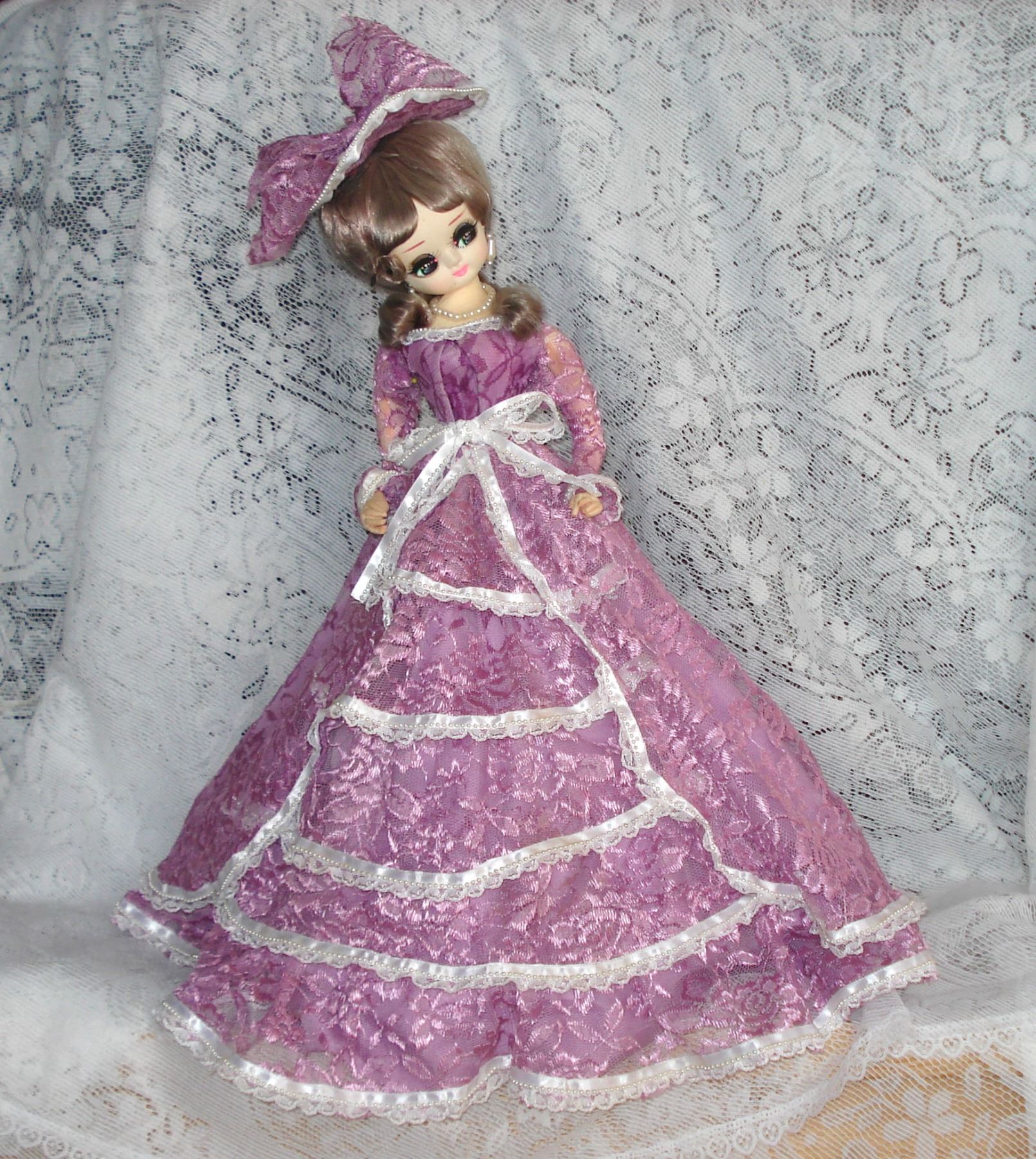 Vintage 1970's Doll Approx 22 inches in Lilac Lace Gown